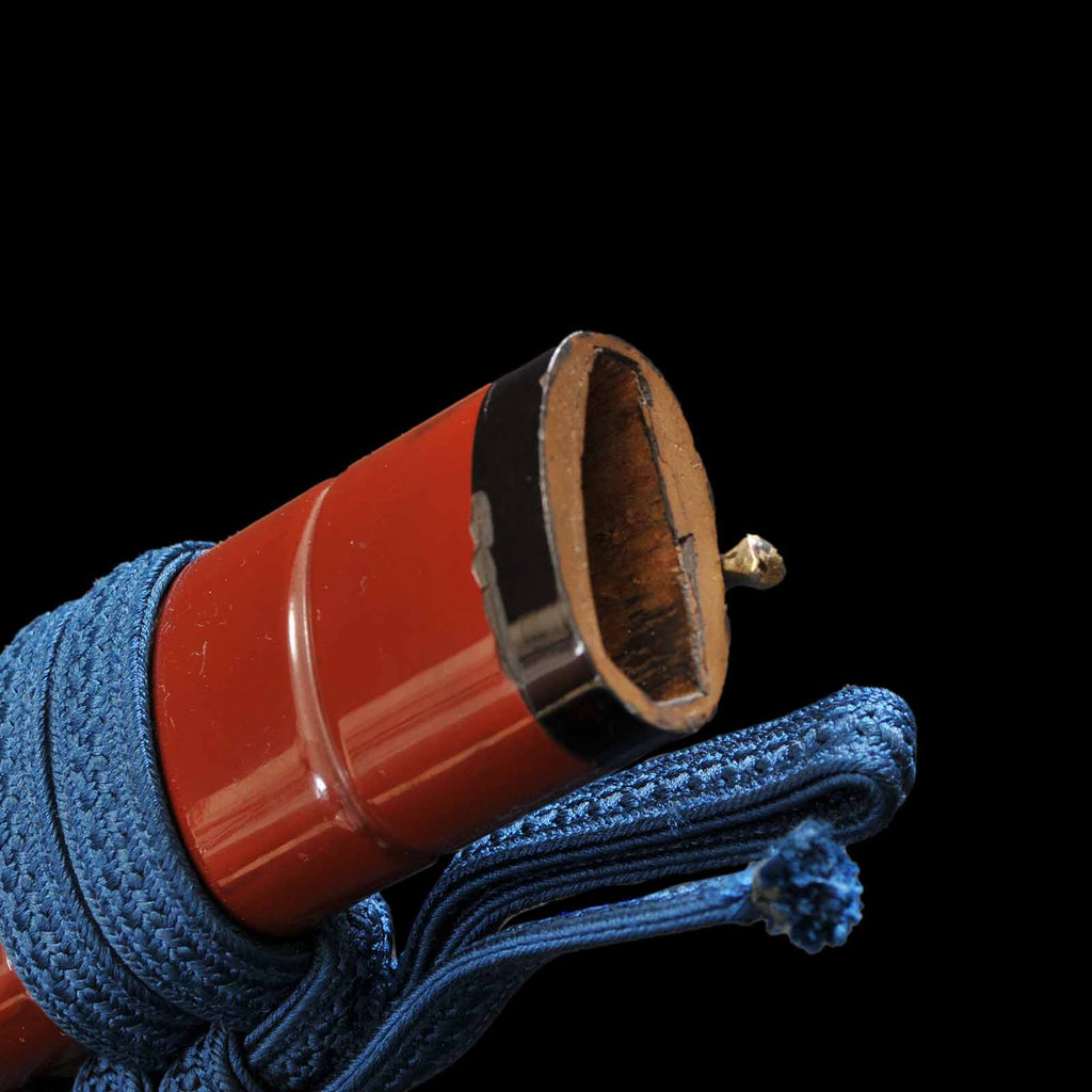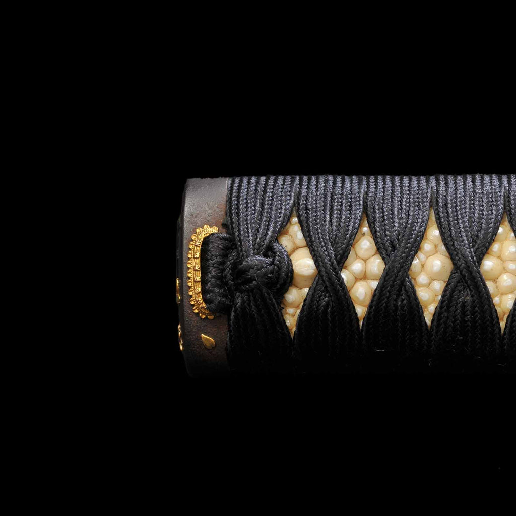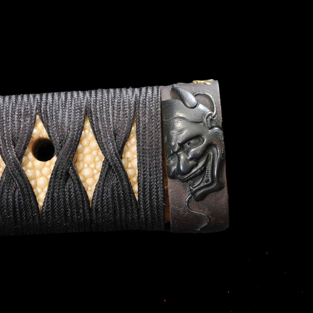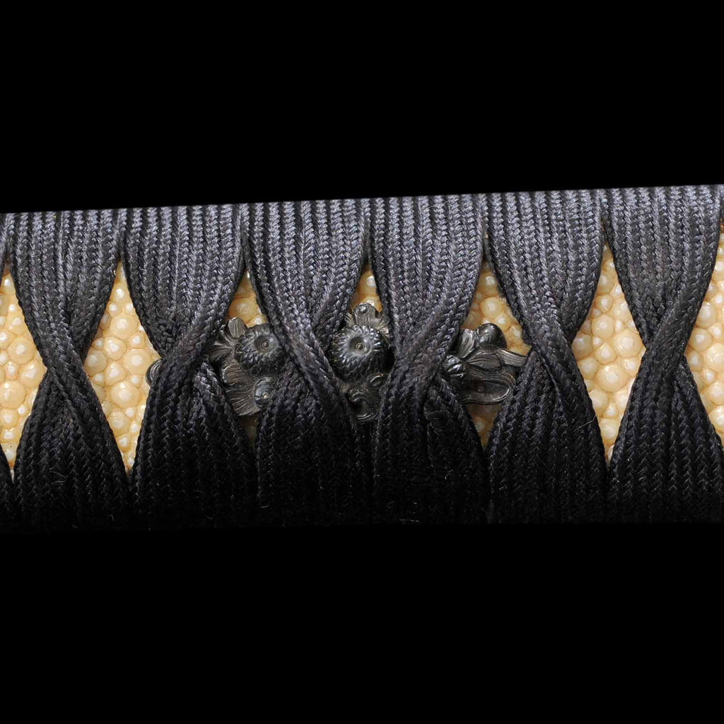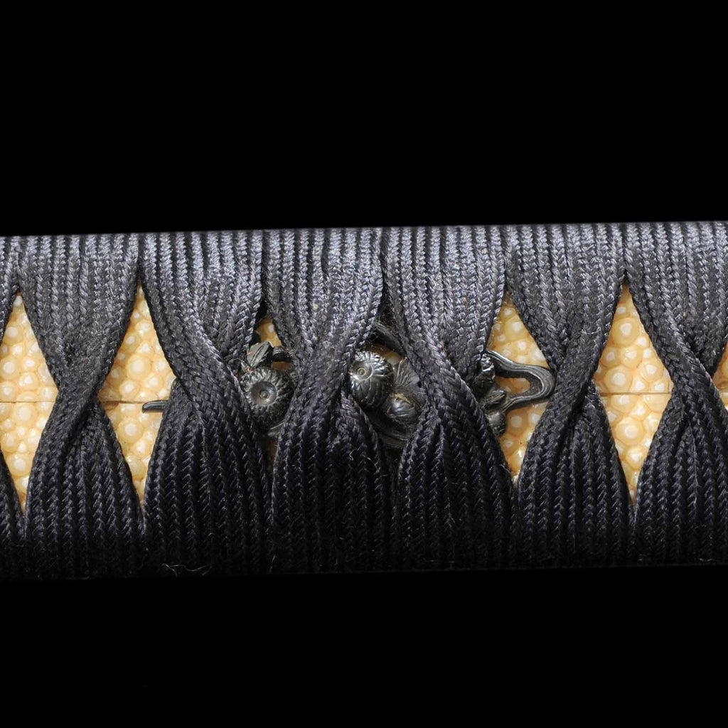 - Koshirae: Black silk Tsuka wrapping with vermillion gloss Kizami Saya/Shirasaya