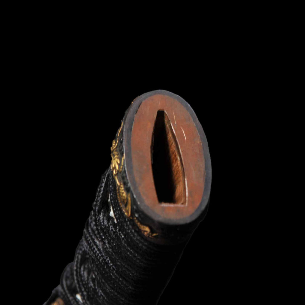 - Koshirae: Black silk tsuka wrapping with dark brown matte finish Saya lacquer