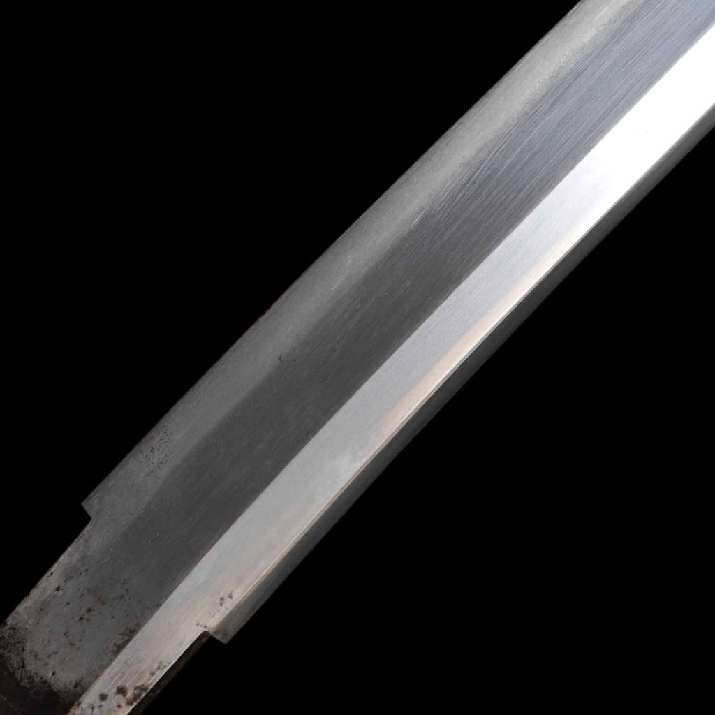 The blade is in relatively good condition with no forging flaws, chips or rust. There is a tiny dot mark at the tip of the blade 12 cm from the hamachi on the sashiomote side.