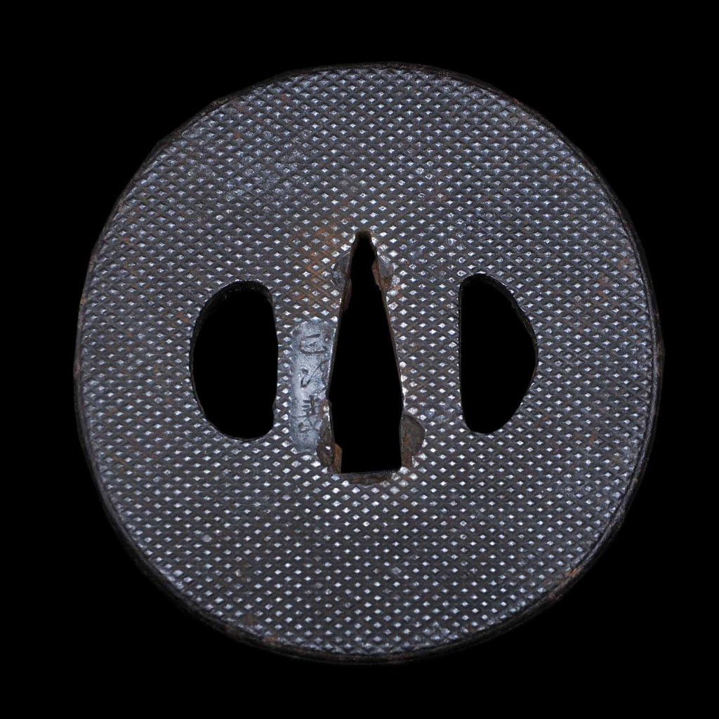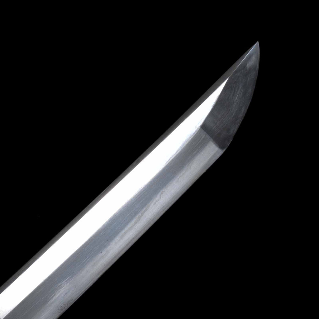 The jigane is a well-packed itame hada with yubashiri in places. Hamon is a well packed suguha, very elegant. The koshirae is in the style of uchigatana, and the fittings were added in later years and are not uniform. The habaki and seppa are modern. The tsuka is a cotton cord wrapped in the hinerimaki style. The scabbard lacquer is applied using the aogai mizin nuri technique. This is a decorative method in which the shell of aogai, a scallop shell of the saxifrage family, is crushed into small pieces, coated with lacquer, and sanded. This method has been used since ancient times as a material for fine Japanese decorative items because of its unique bluish iridescent luster.