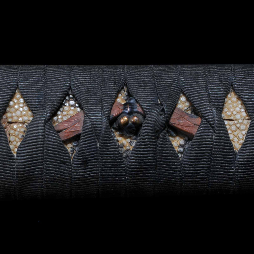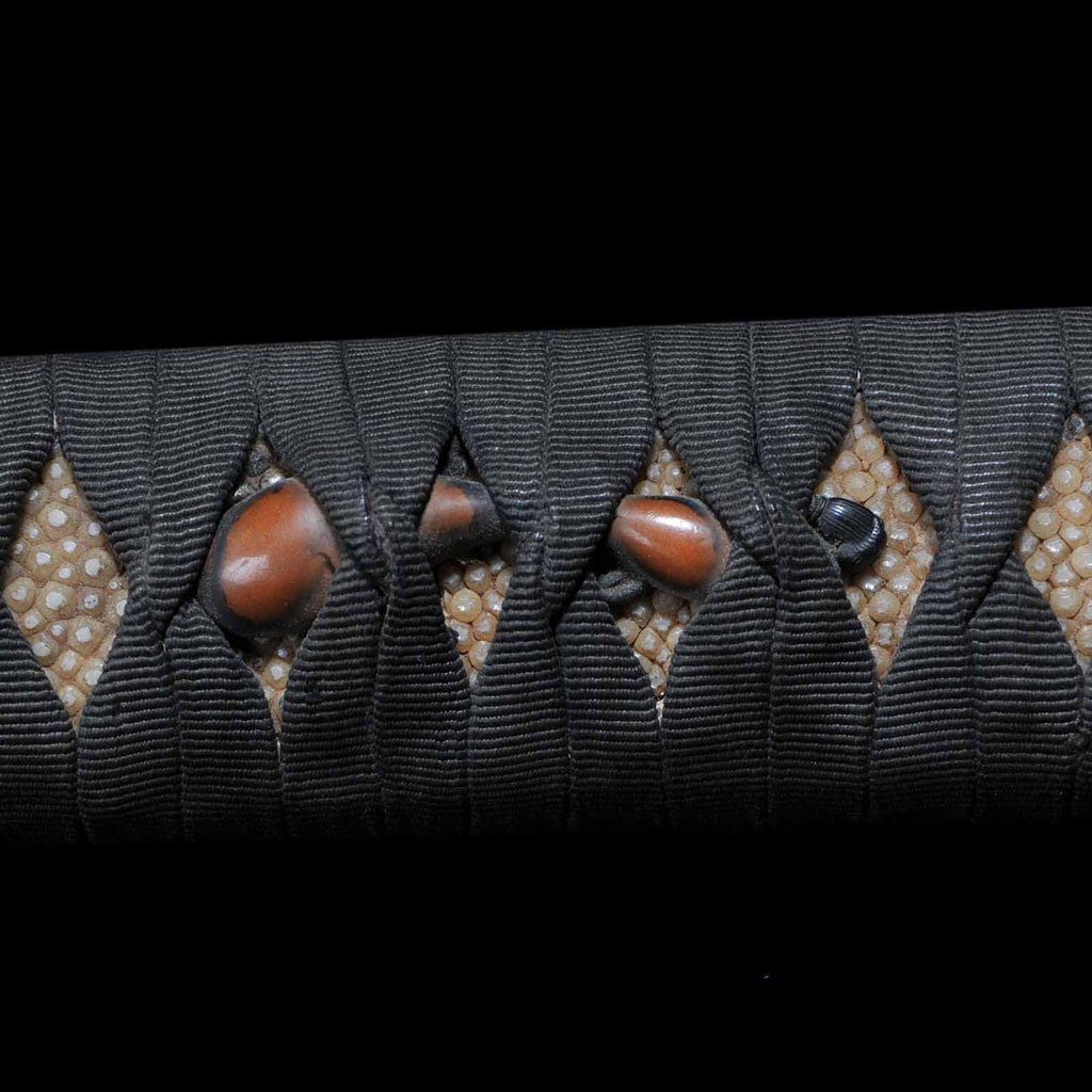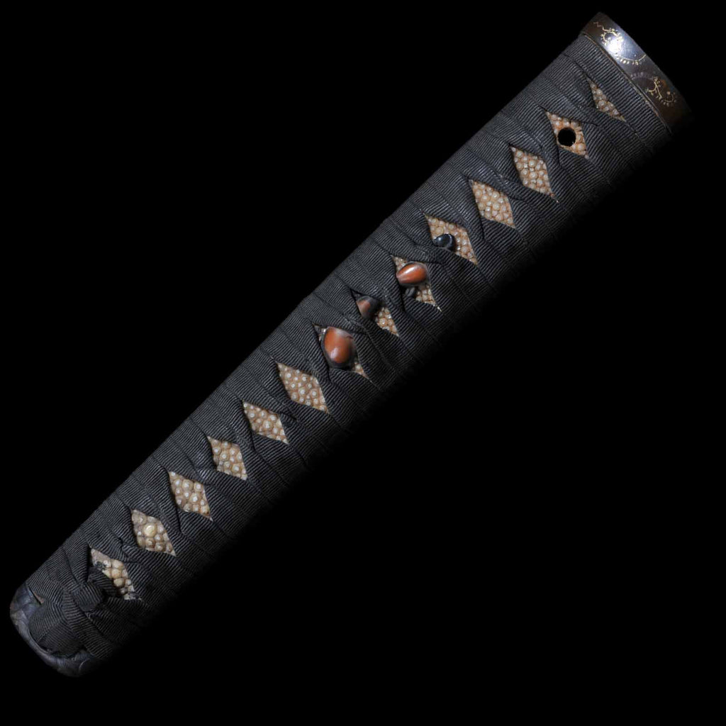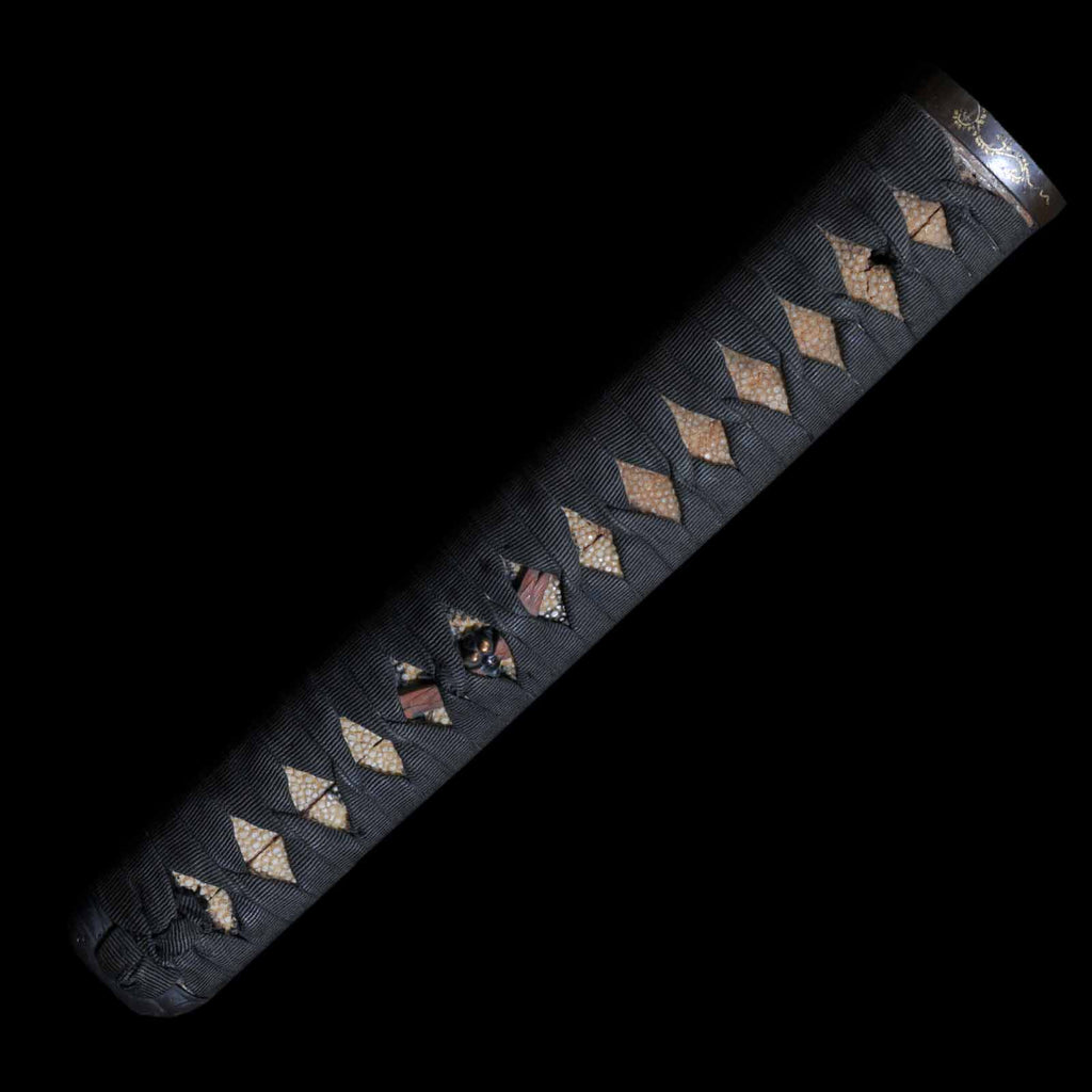 - Koshirae: Black cotton wrapped Tsuka with Aogai Mijin-nuri lacquered Saya
