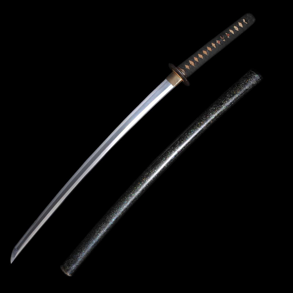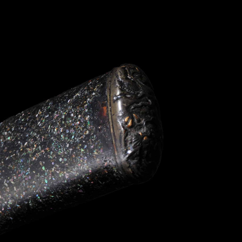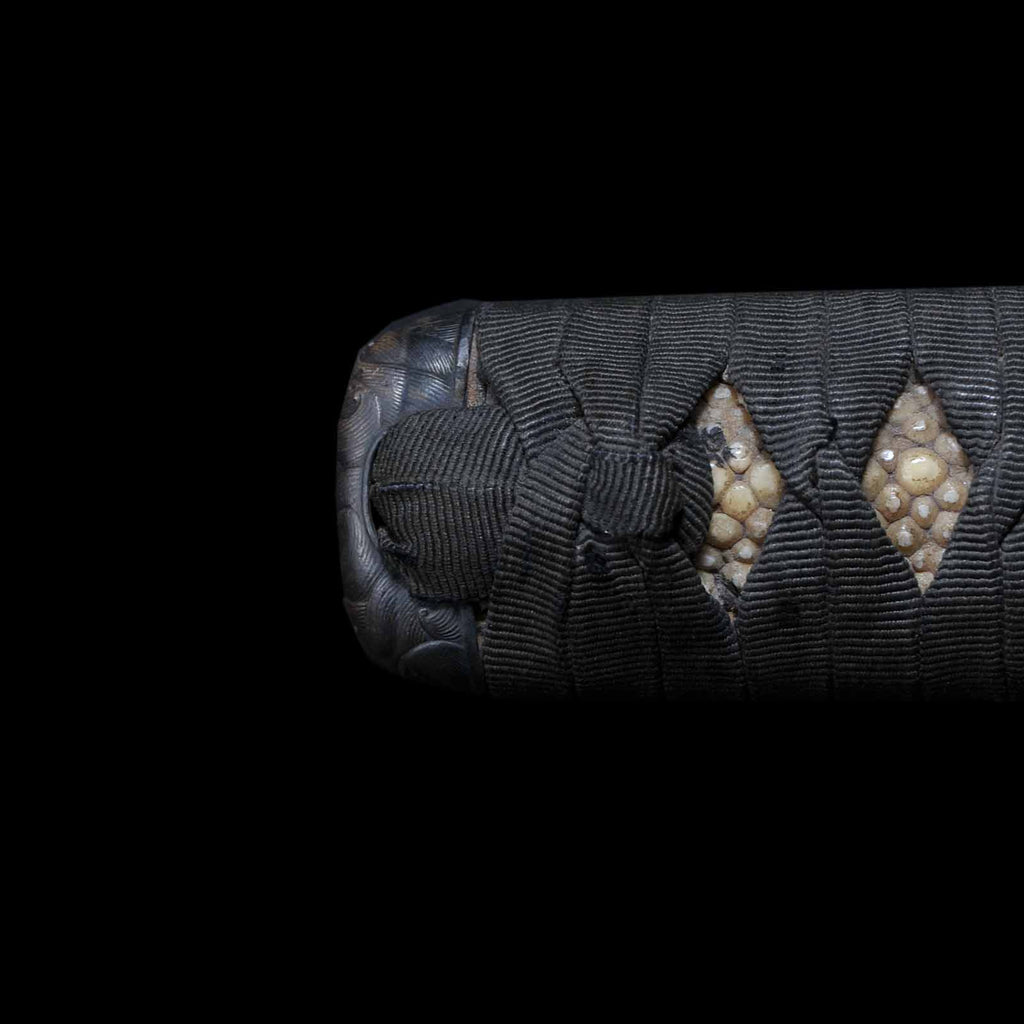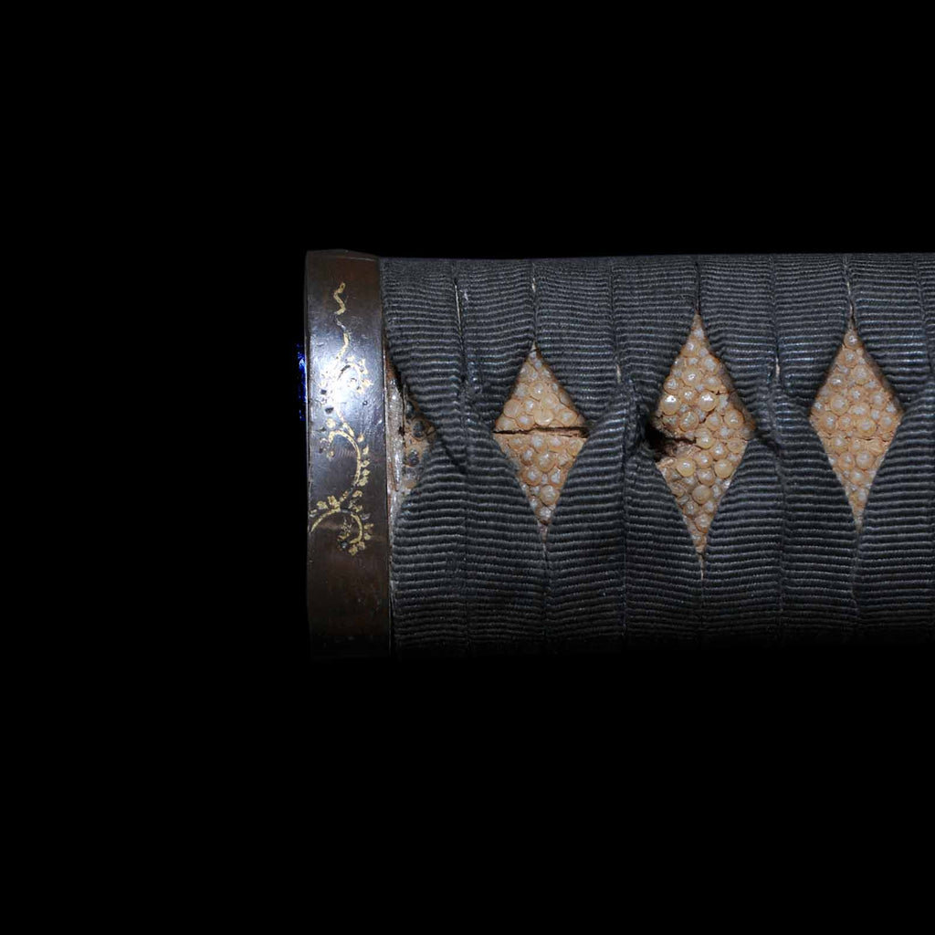 - Koshirae: Black cotton wrapped Tsuka with Aogai Mijin-nuri lacquered Saya