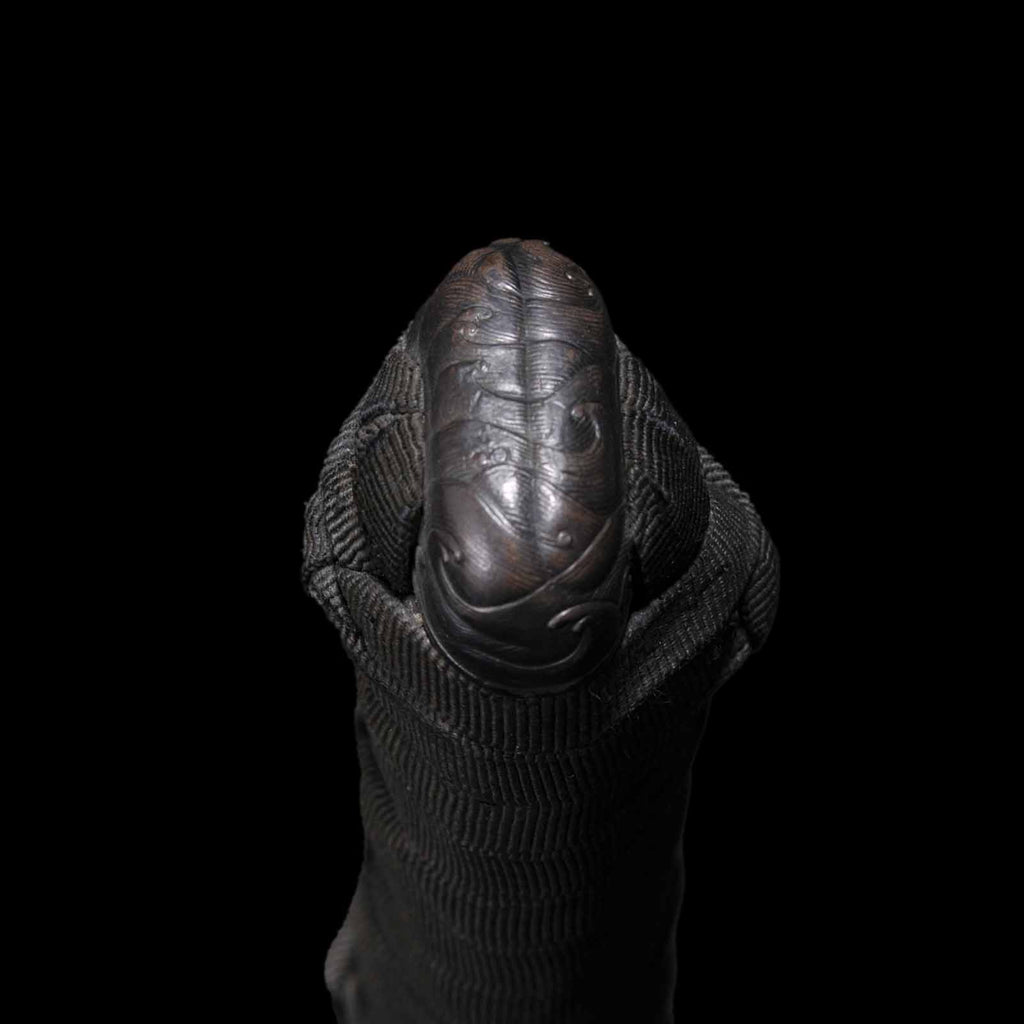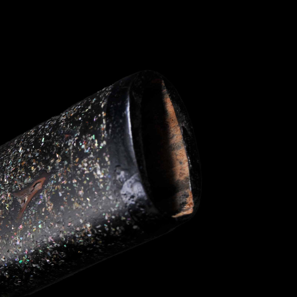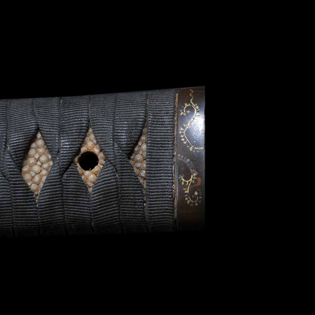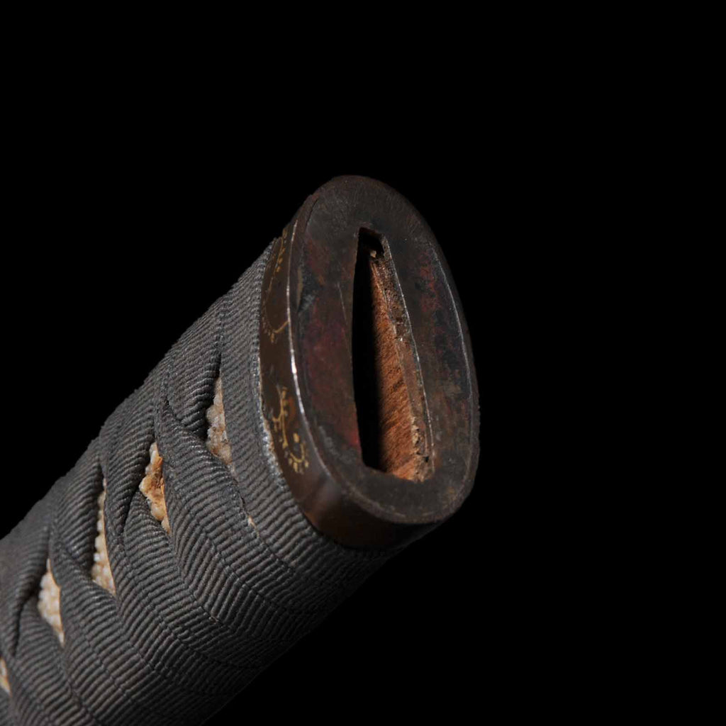 - Koshirae: Black cotton wrapped Tsuka with Aogai Mijin-nuri lacquered Saya