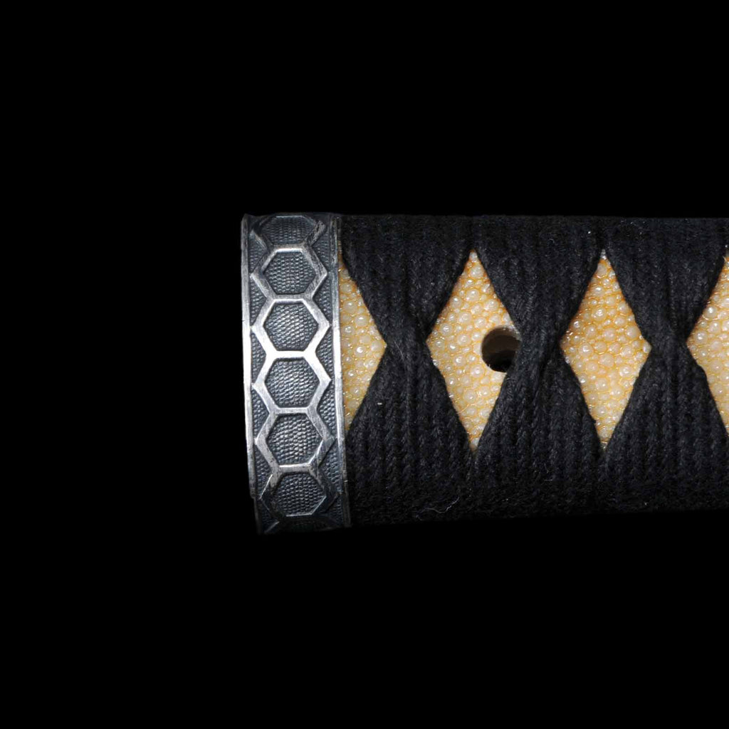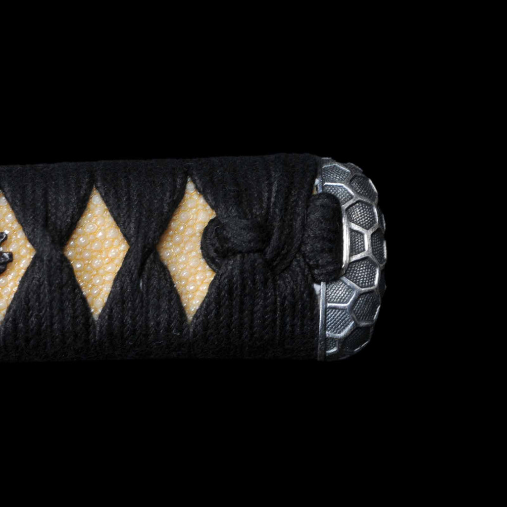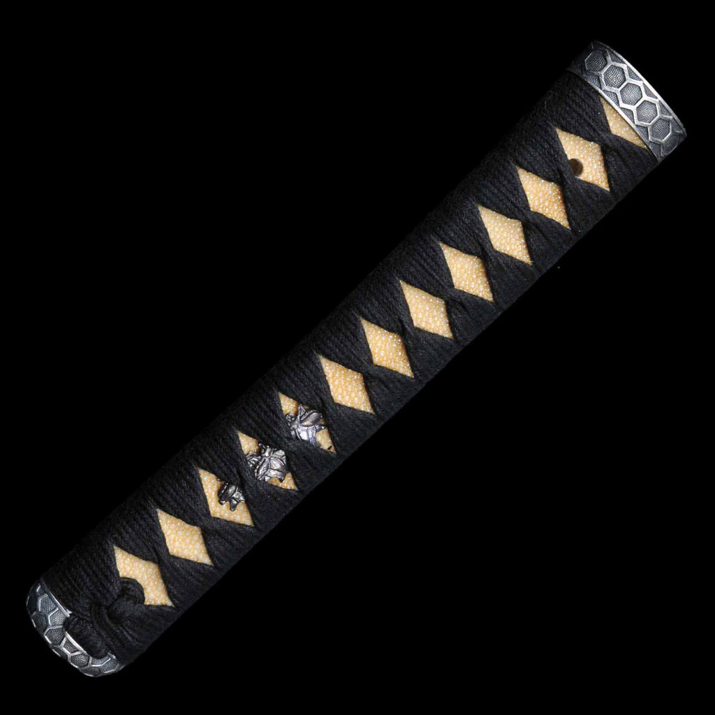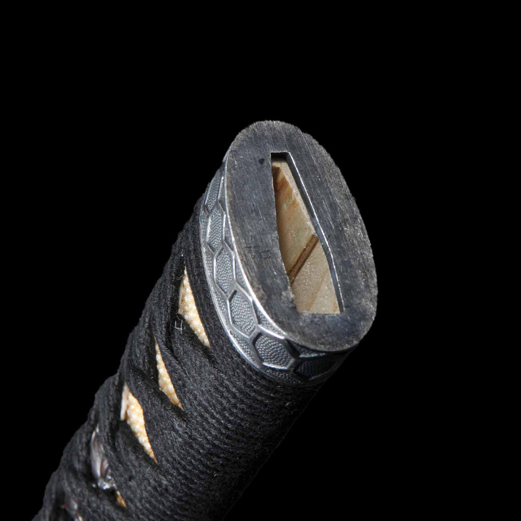 - Koshirae: Black cotton wrapped Tsuka with Anshu-isihme lacquered Saya