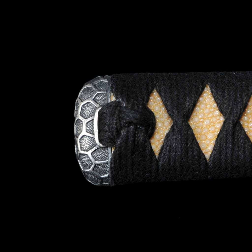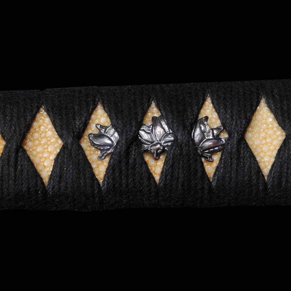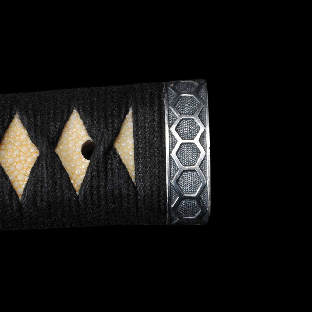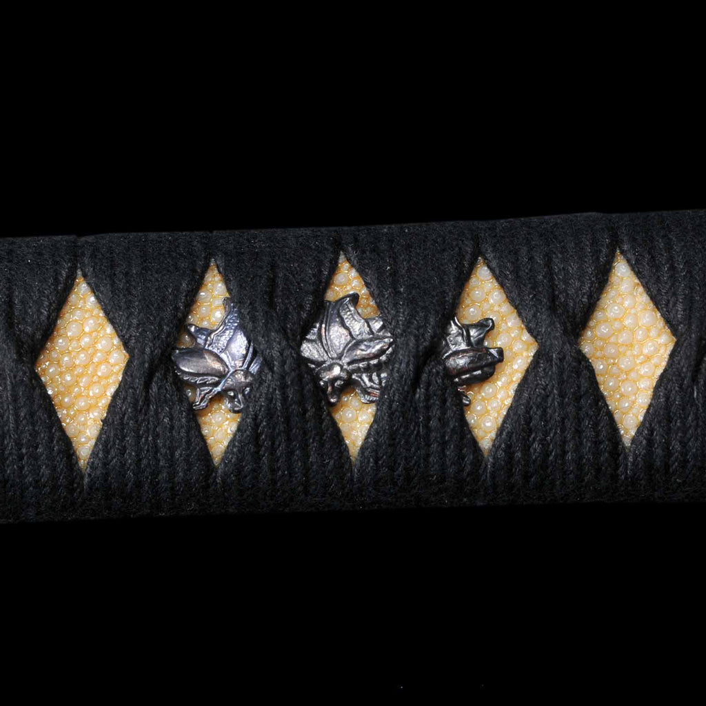- Koshirae: Black cotton wrapped Tsuka with Anshu-isihme lacquered Saya