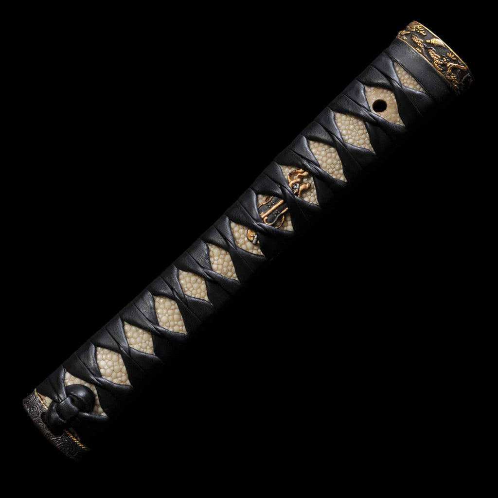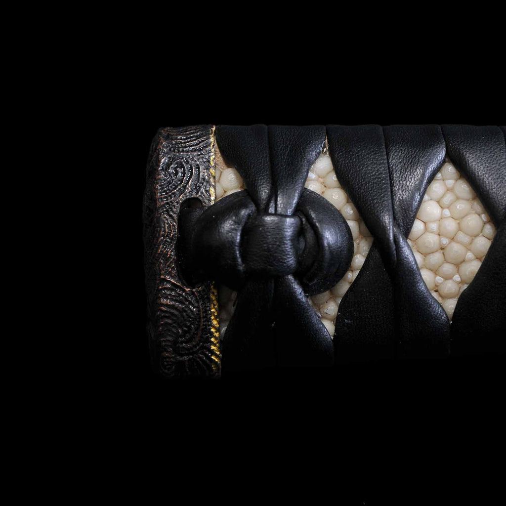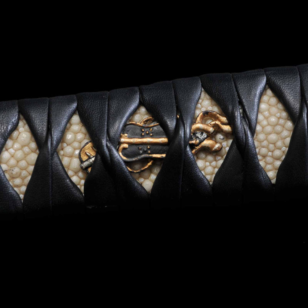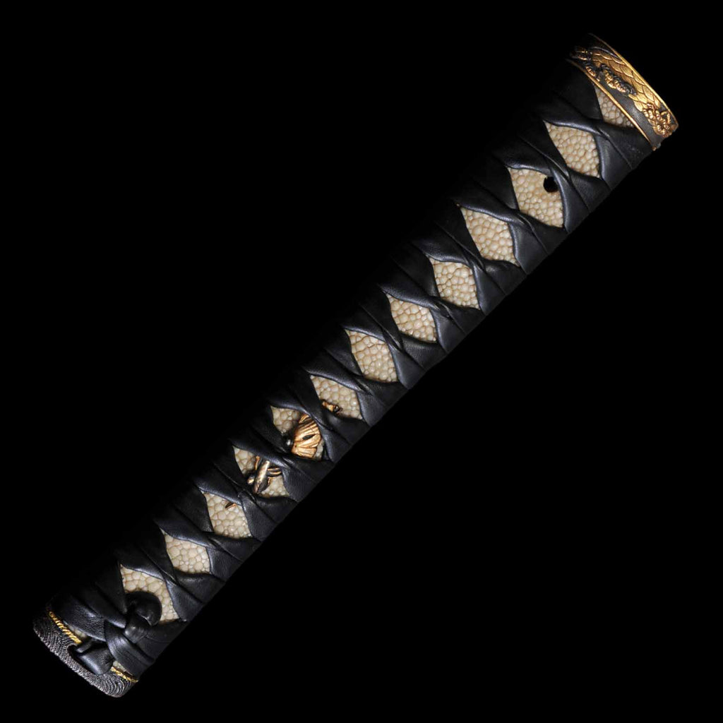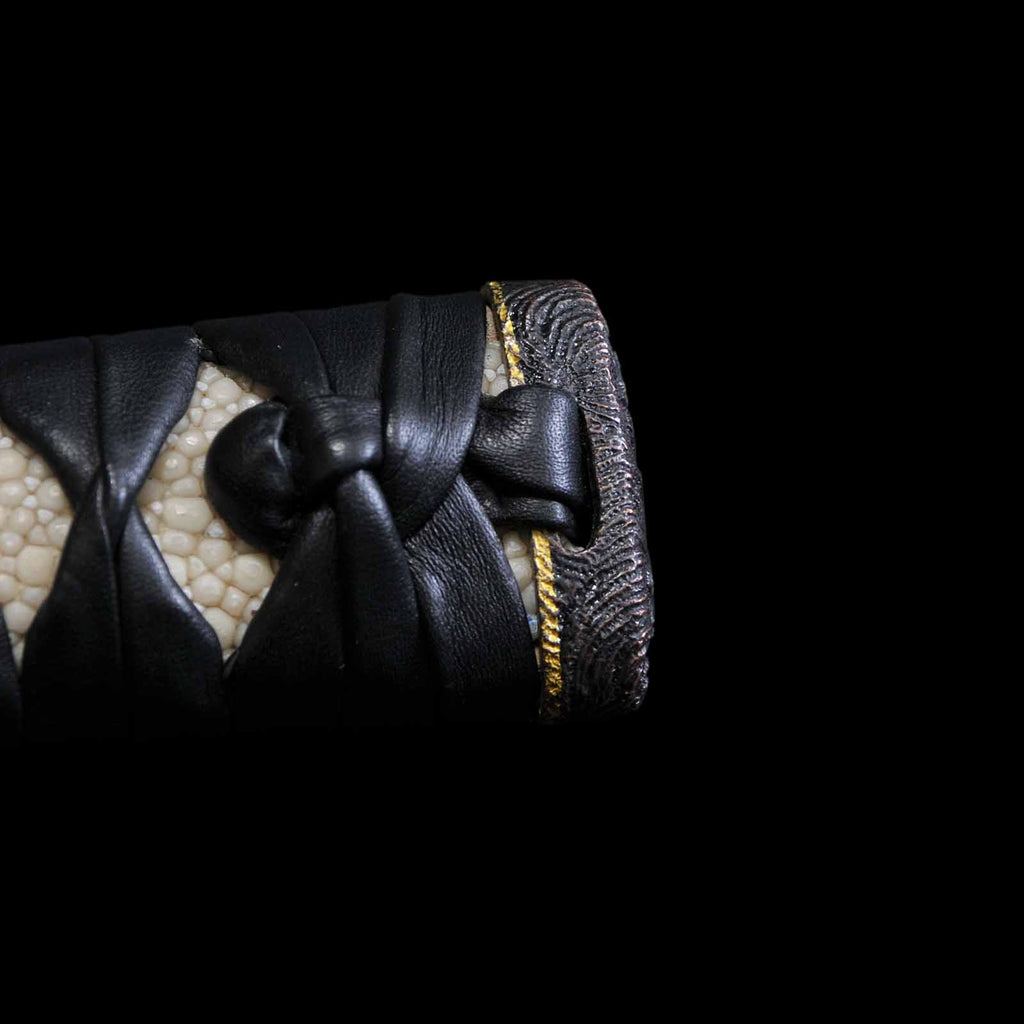 - Koshirae: Black leather wrapped Tsuka with fully sharkskin-wrapped Saya