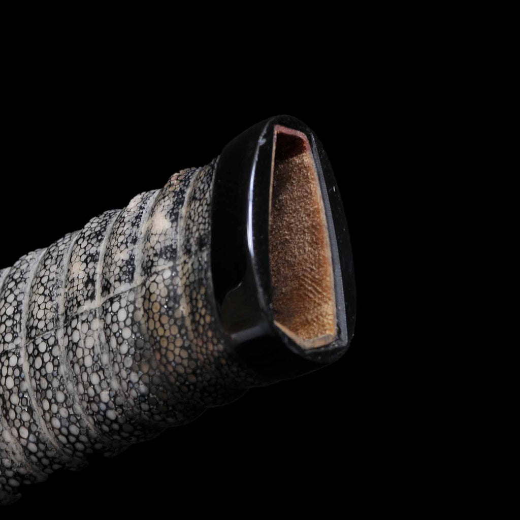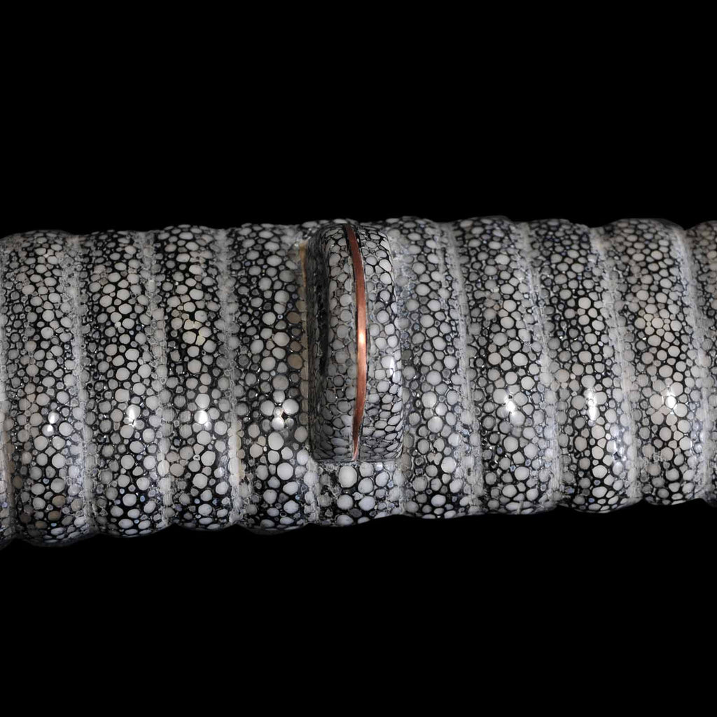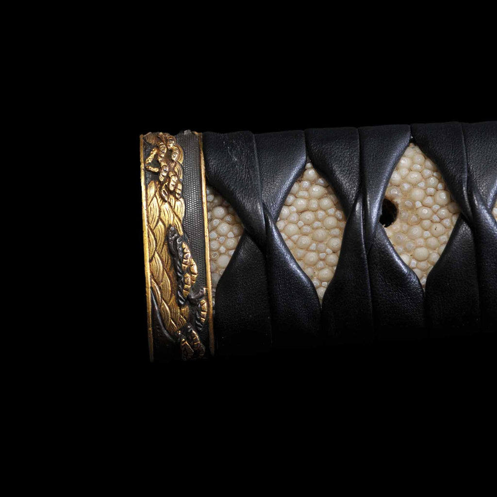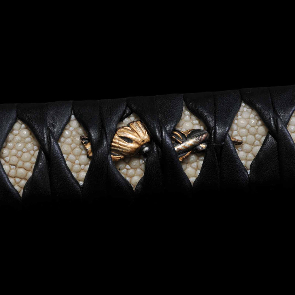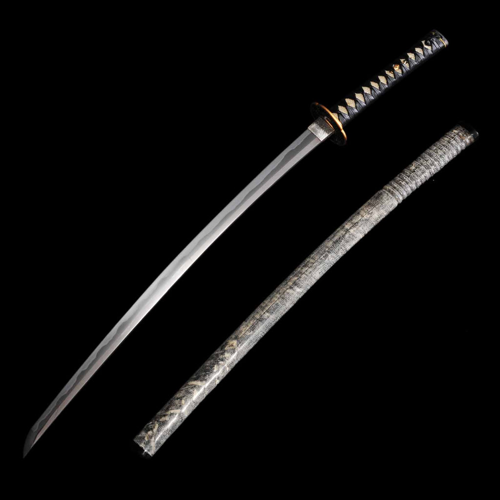 - Koshirae: Black leather wrapped Tsuka with fully sharkskin-wrapped Saya