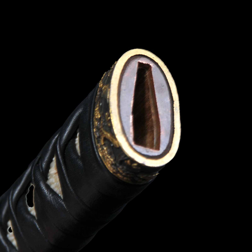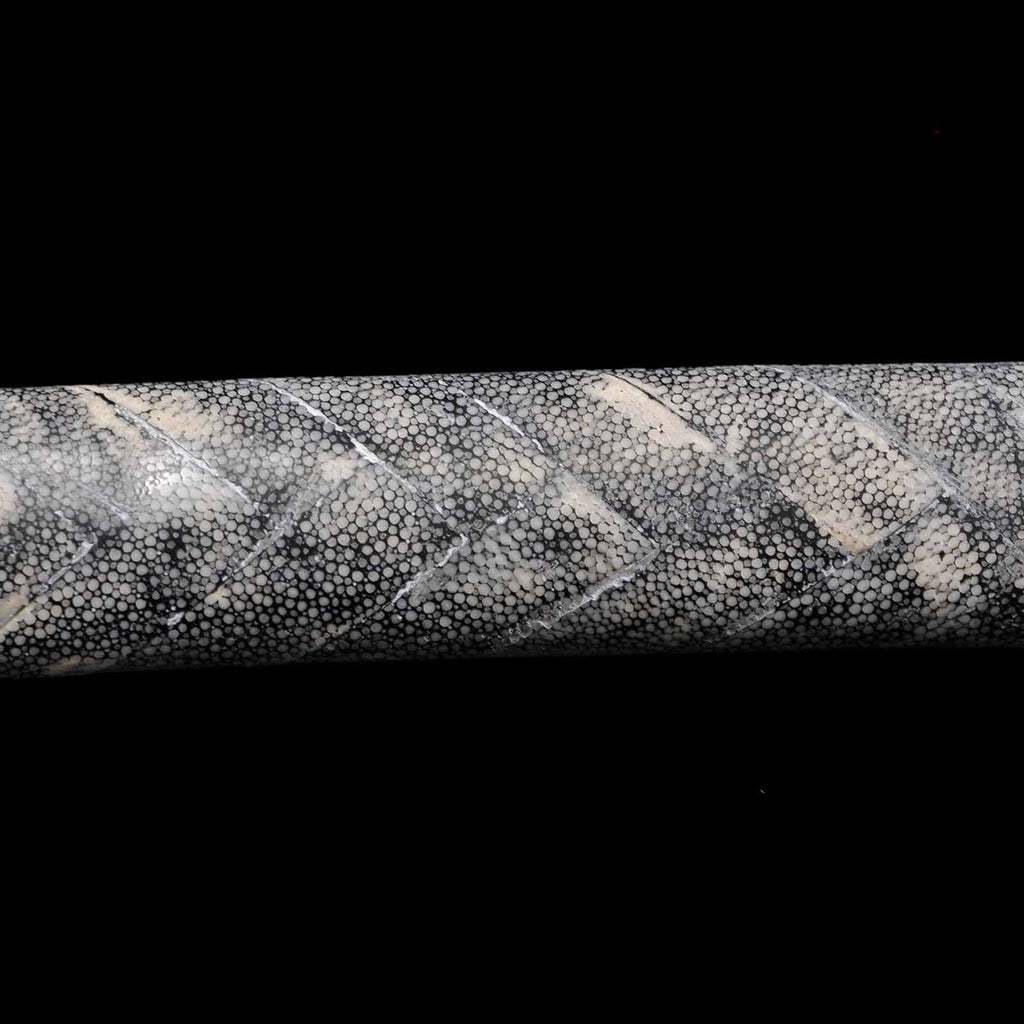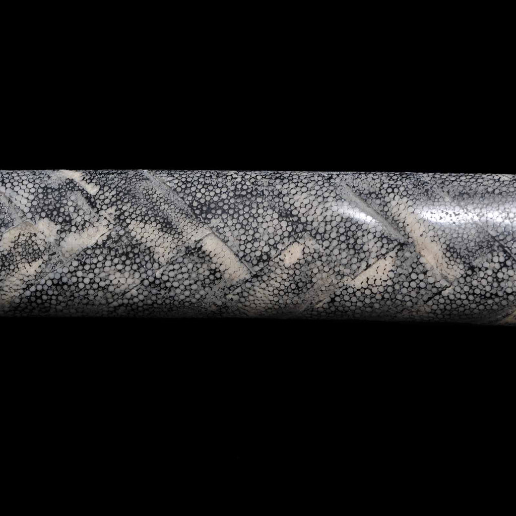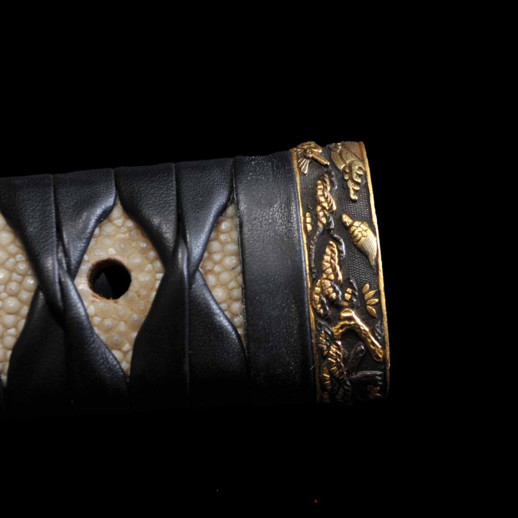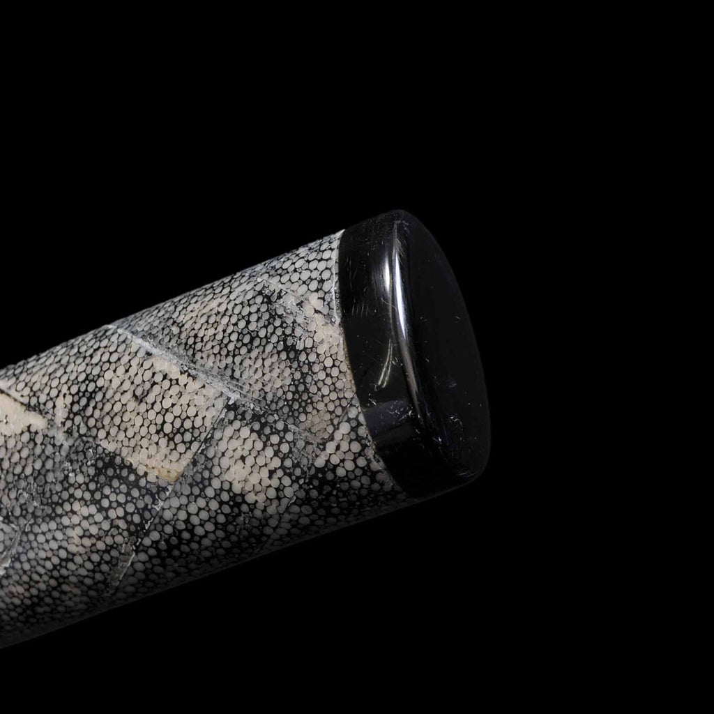 - Koshirae: Black leather wrapped Tsuka with fully sharkskin-wrapped Saya