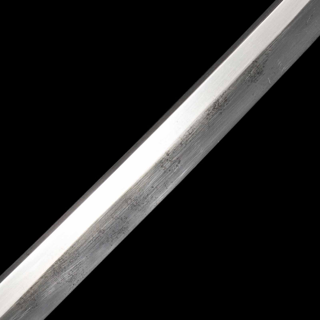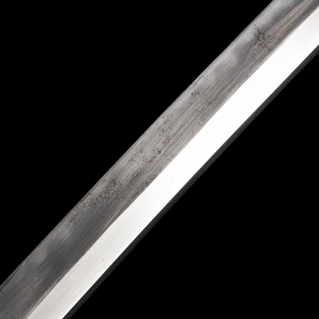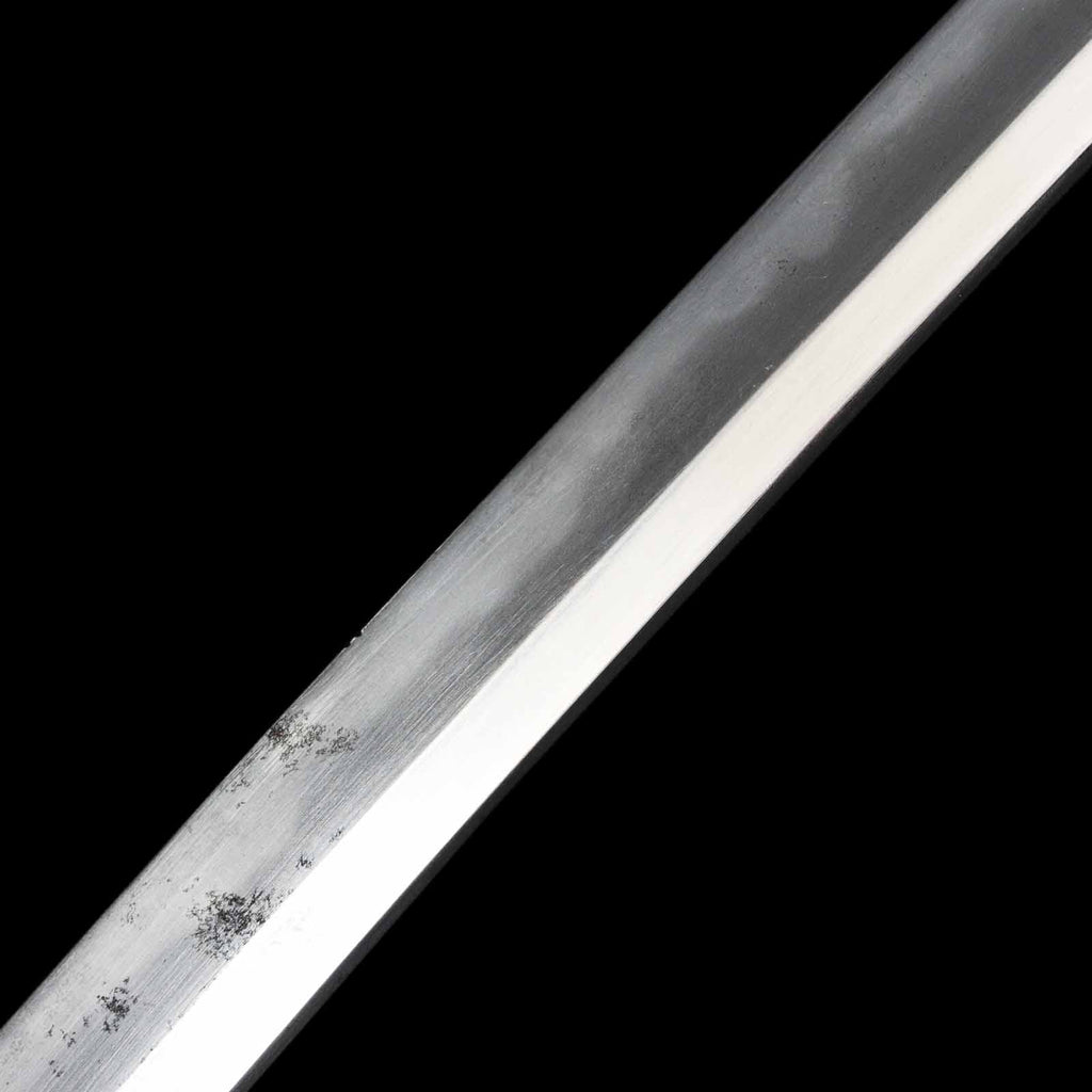 The sword is in a fair state of preservation, but there are multiple marks on both sides of the blade, just in the center of the blade, as if rust had been wiped off, which is an element that slightly detracts from the aesthetics of the sword. Chipping can be seen at the point of the blade about 24 cm from the kissaki.