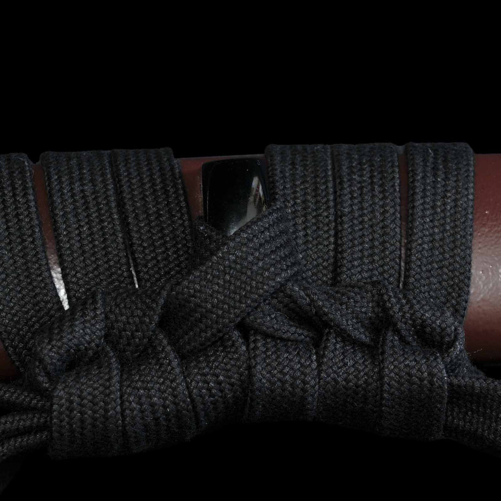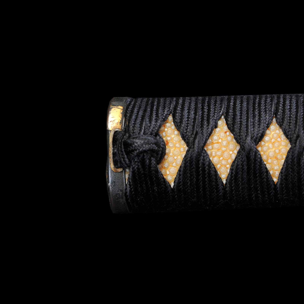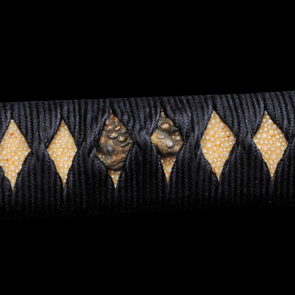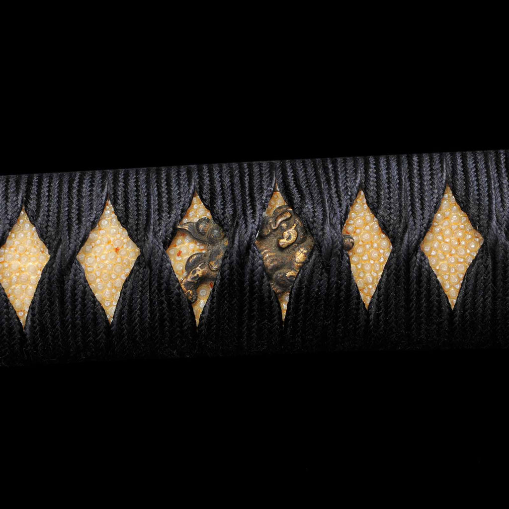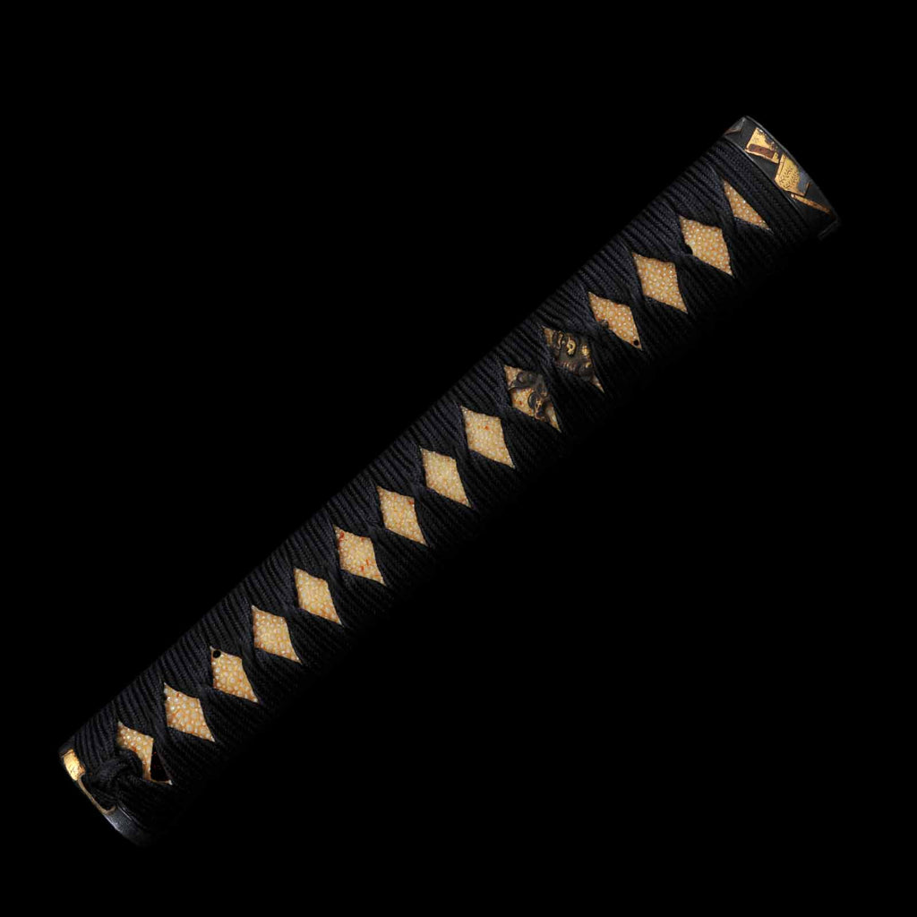 - Koshirae: Black silk Tsuka wrapping with Anshu-ishime-lacquered Saya