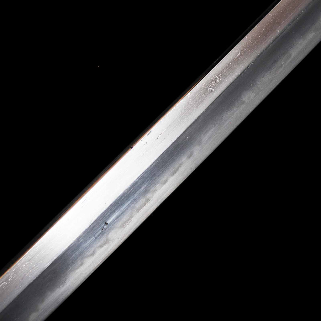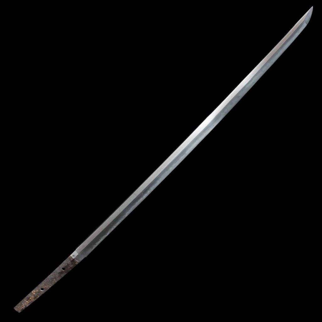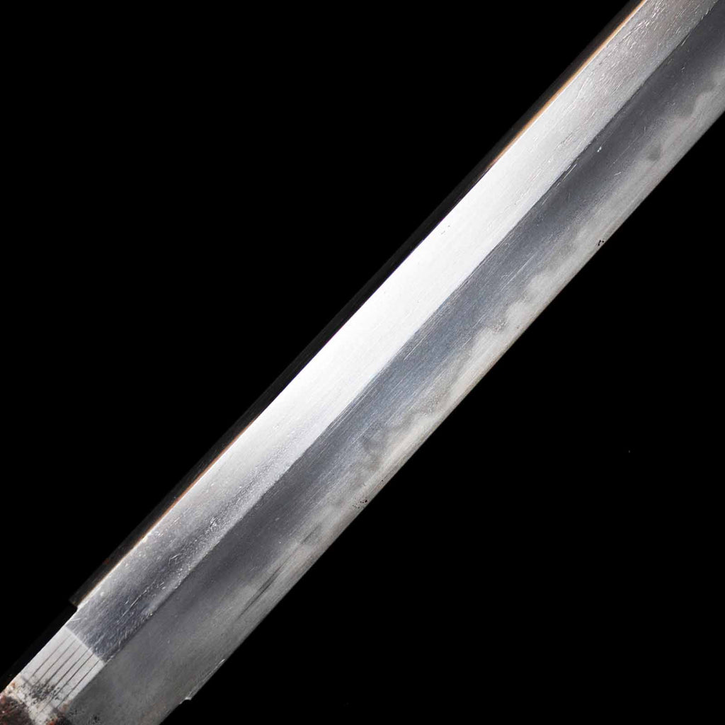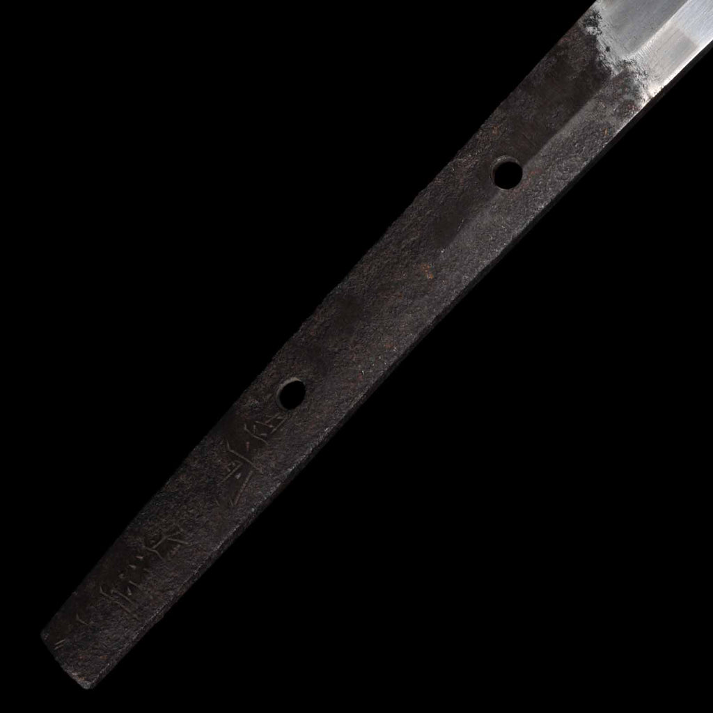 Tsuguhiro was a leading swordsmith in the Echizen region (present-day Fukui Prefecture) during the Shinto period and was a pupil of the third Yasutsugu. He was first in Echizen, then moved to Zeze in Omi (present-day Shiga Prefecture), and finally to Edo (present-day Tokyo). Echizen shinto katanas were used by samurai as very practical swords with excellent cutting ability, and were very popular during the Edo period when the Tokugawa family ruled. This katana bears evidence of having been measured for sharpness and strength by Yamano Kaemon Nagahisa, and his name is engraved on the Nakago. Yamano was the founder of the Yamano school of test swordsmanship, which was active from the Kan'ei to Kan'bun periods. Originally, the sword was inscribed with gold inlays, but some of the inlays have peeled off due to age. Also, the name of Tsuguhiro has been cut off in the middle of the blade due to the shortened length of the sword.