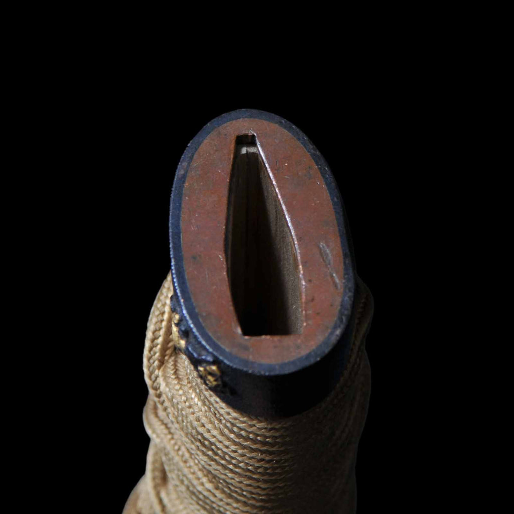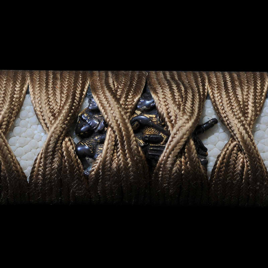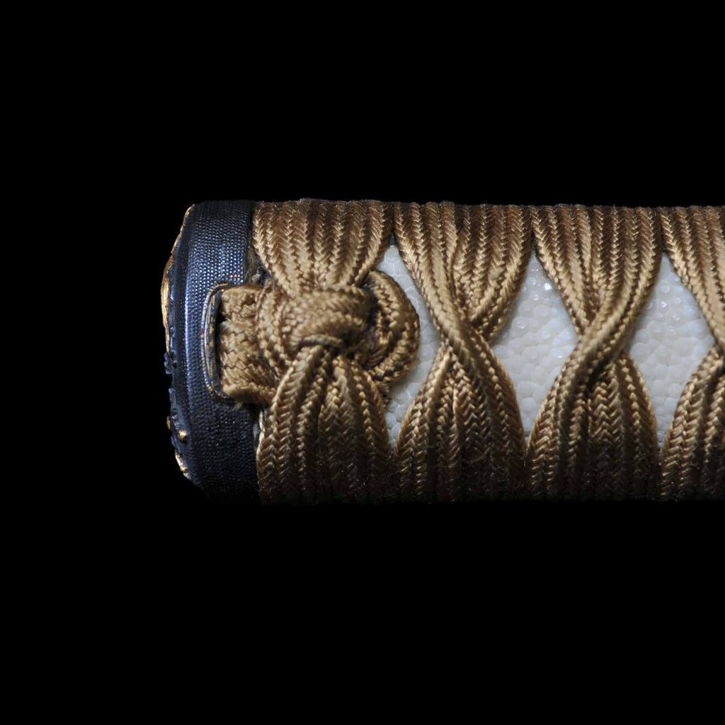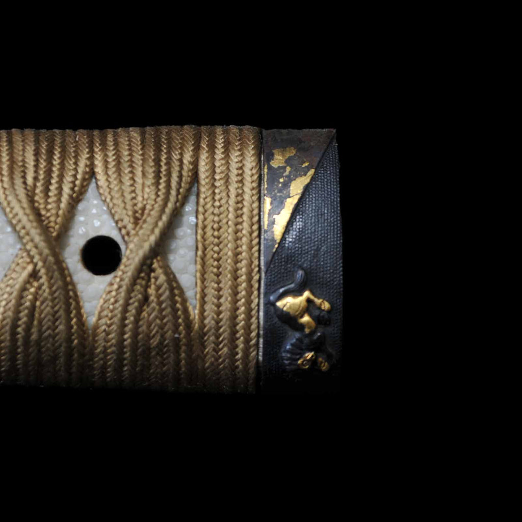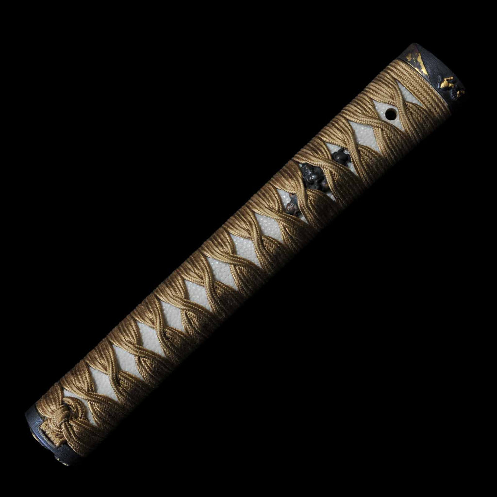 - Koshirae: Golden Yellow Silk wrapped Tsuka with dark brown Kanshitsu-lacquered Saya
