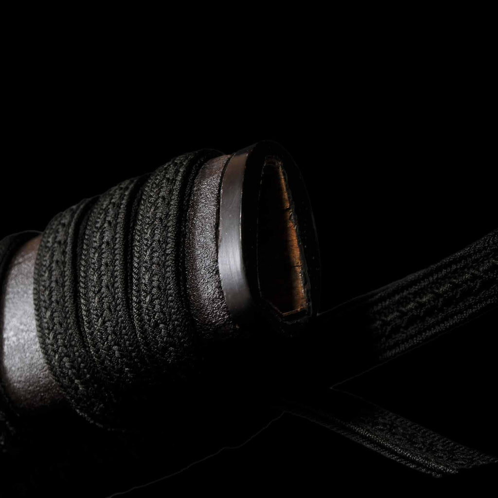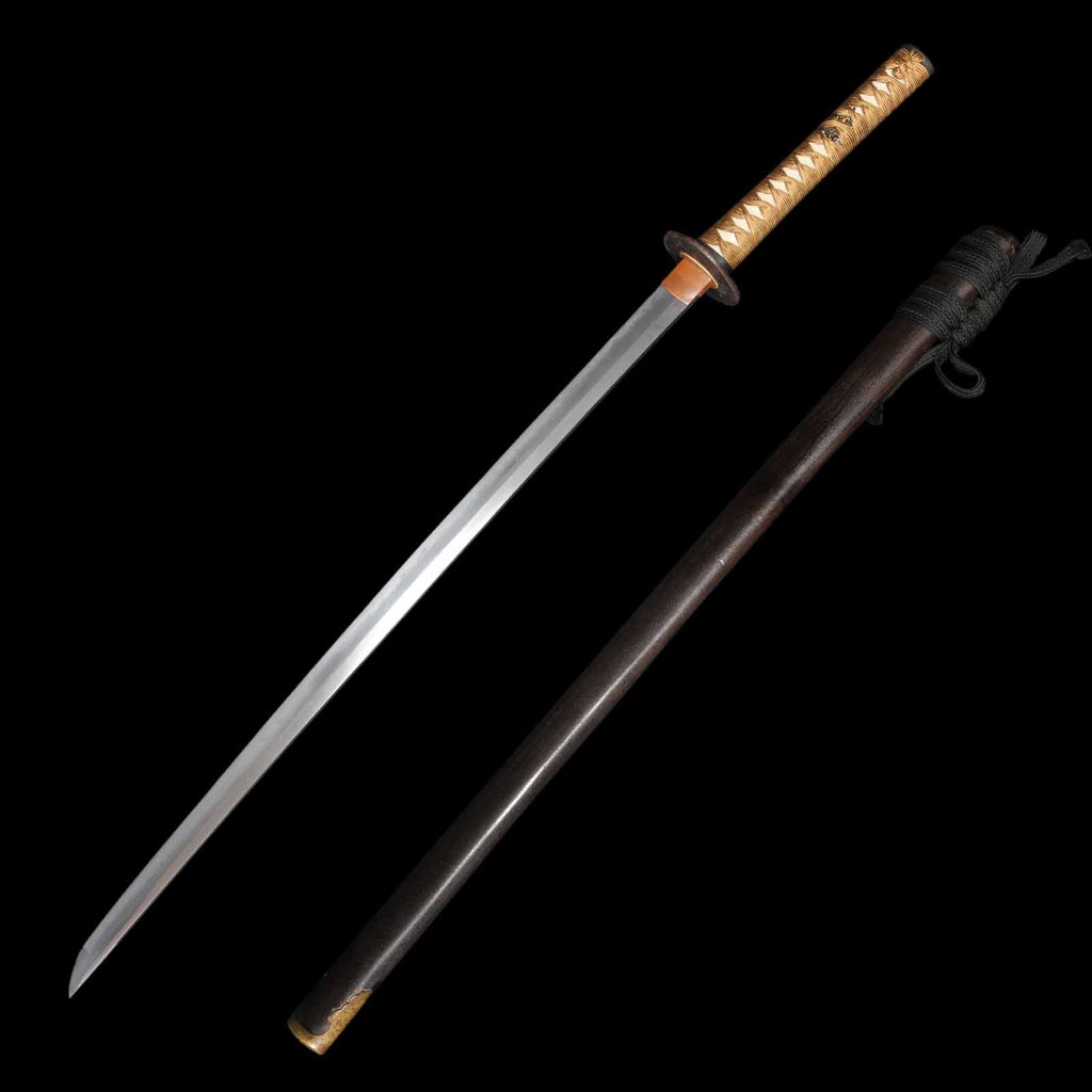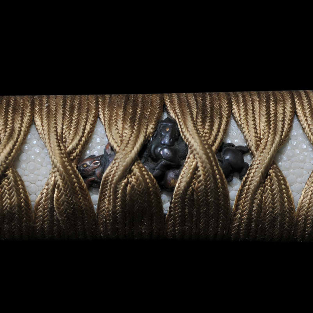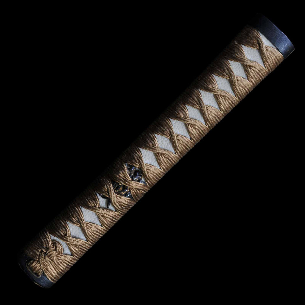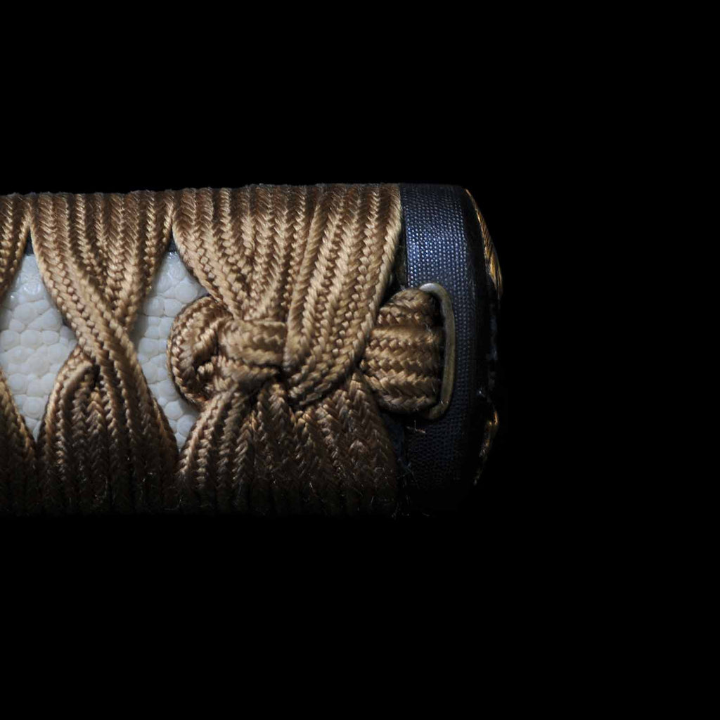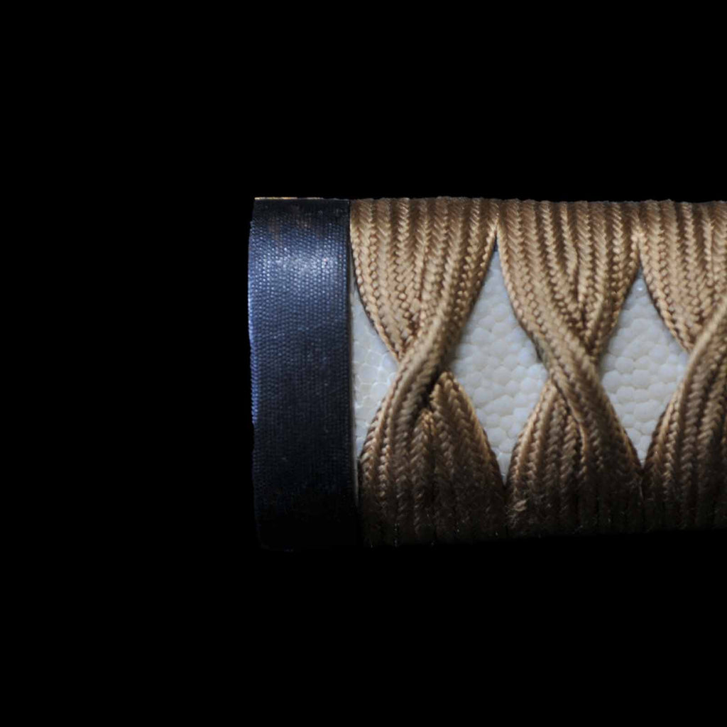 - Koshirae: Golden Yellow Silk wrapped Tsuka with dark brown Kanshitsu-lacquered Saya