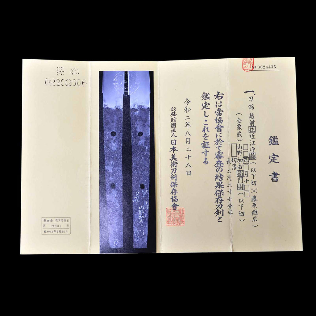 - Signature: Echizen ju Omi no Kami XX(front), XX Yamano KaXX Ika Kiri
