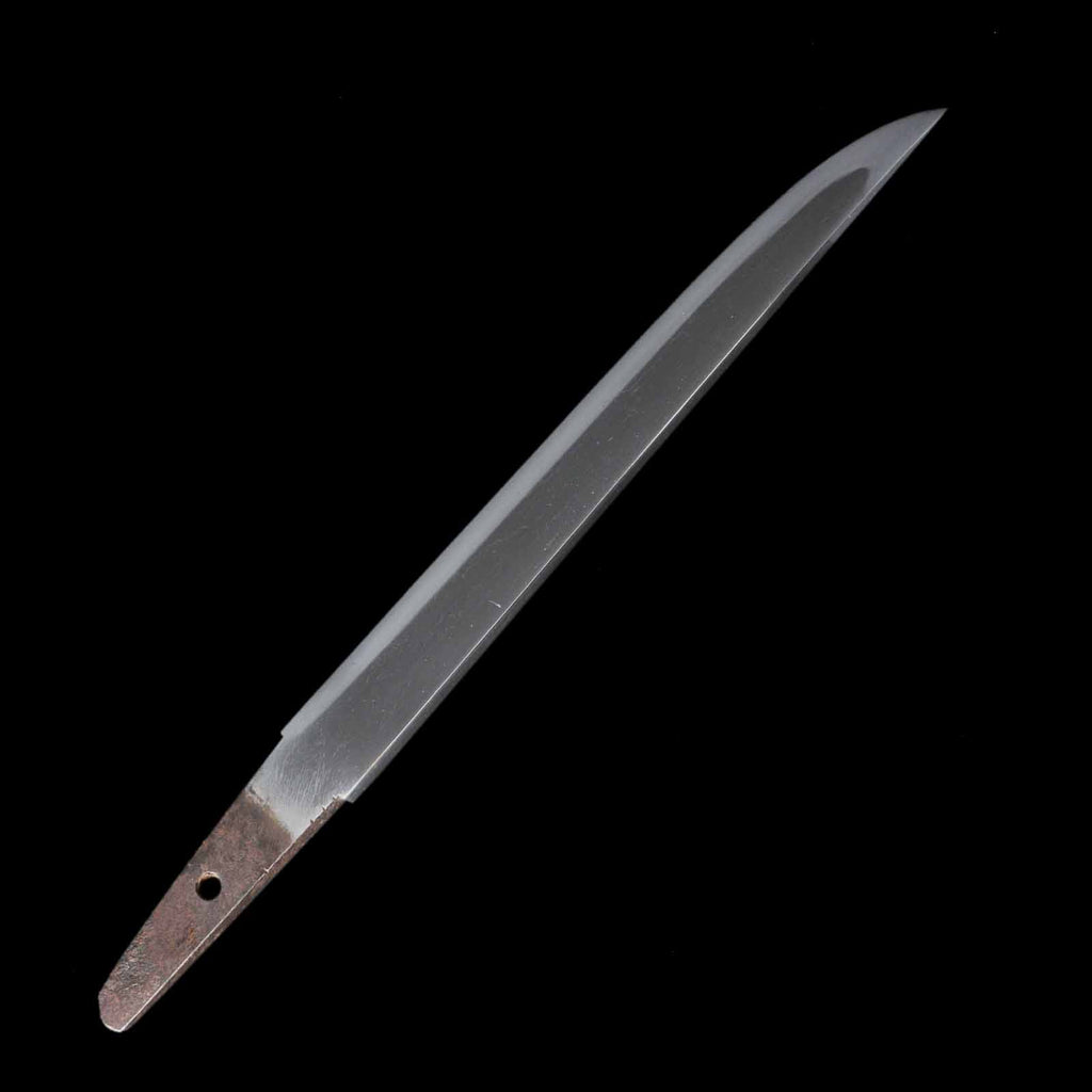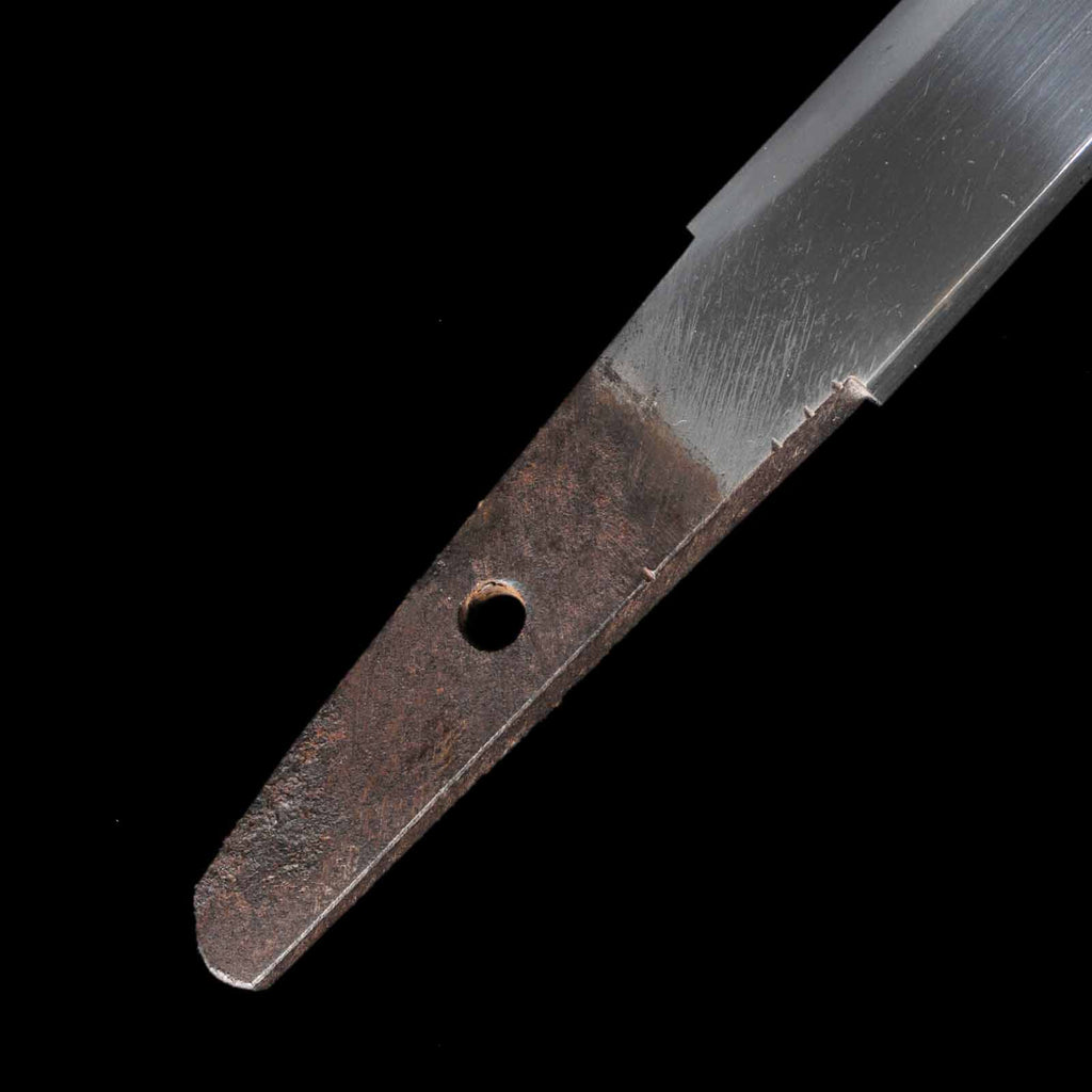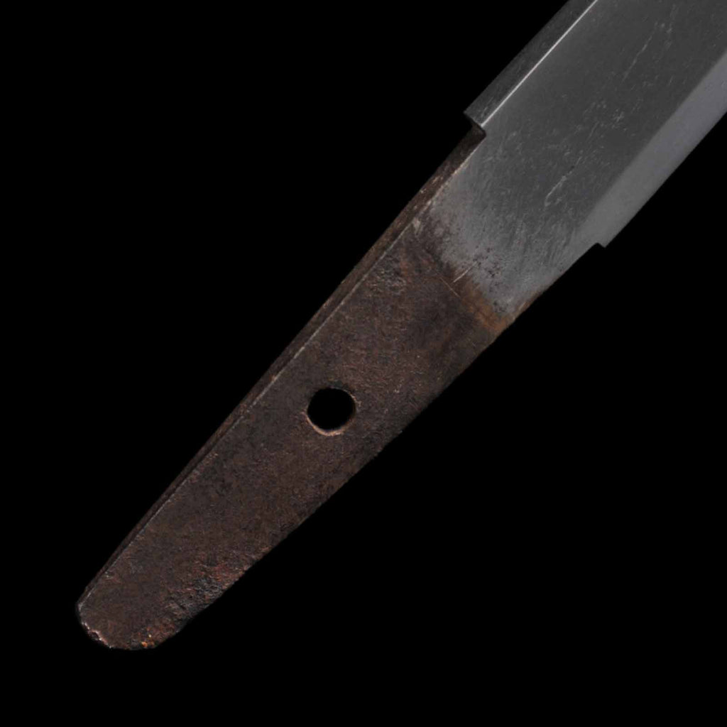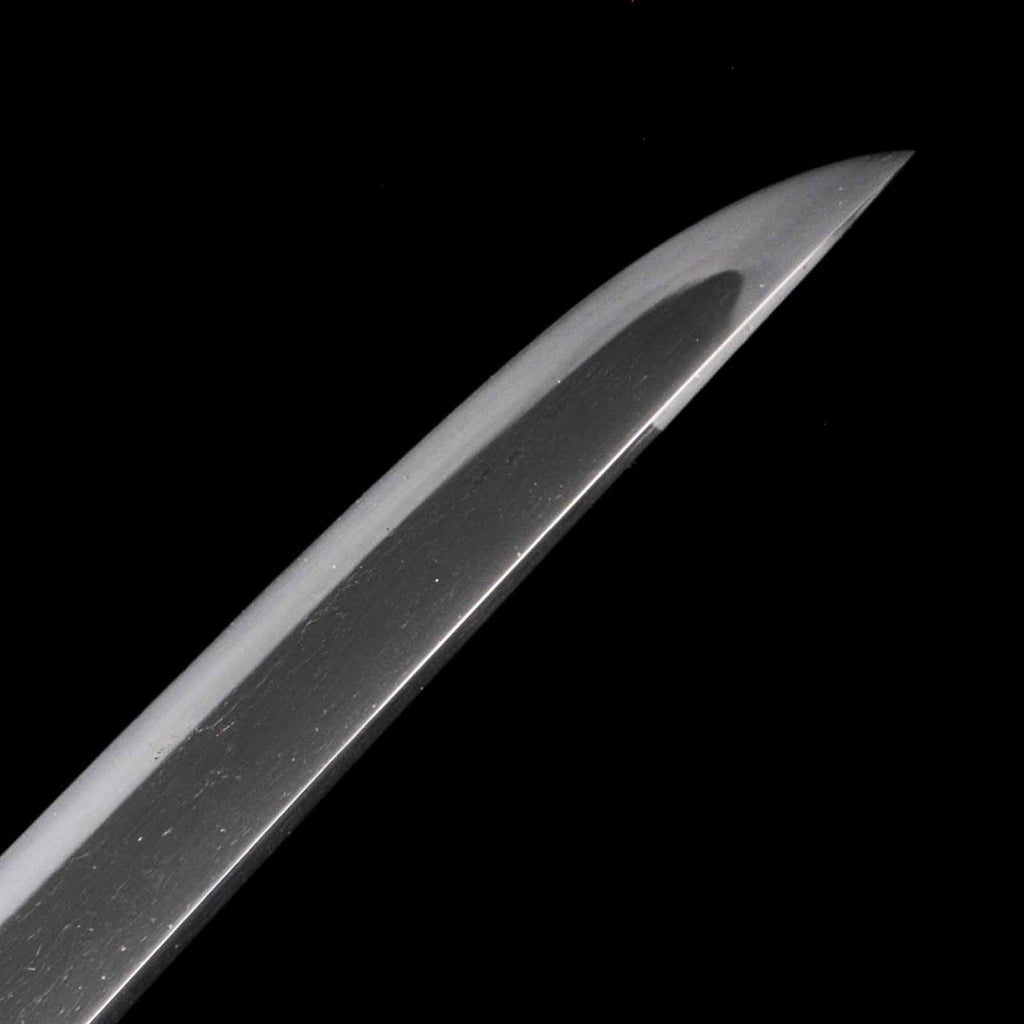 The sword is extremely well preserved, with no flaws, chips, rust, or other defects. Overall, it is well polished and very sound. The jigane is well tempered itame. Hamon has very fine kogunome burnished on the suguha, and is slightly pointed and nakamaru shaped at the boshi.