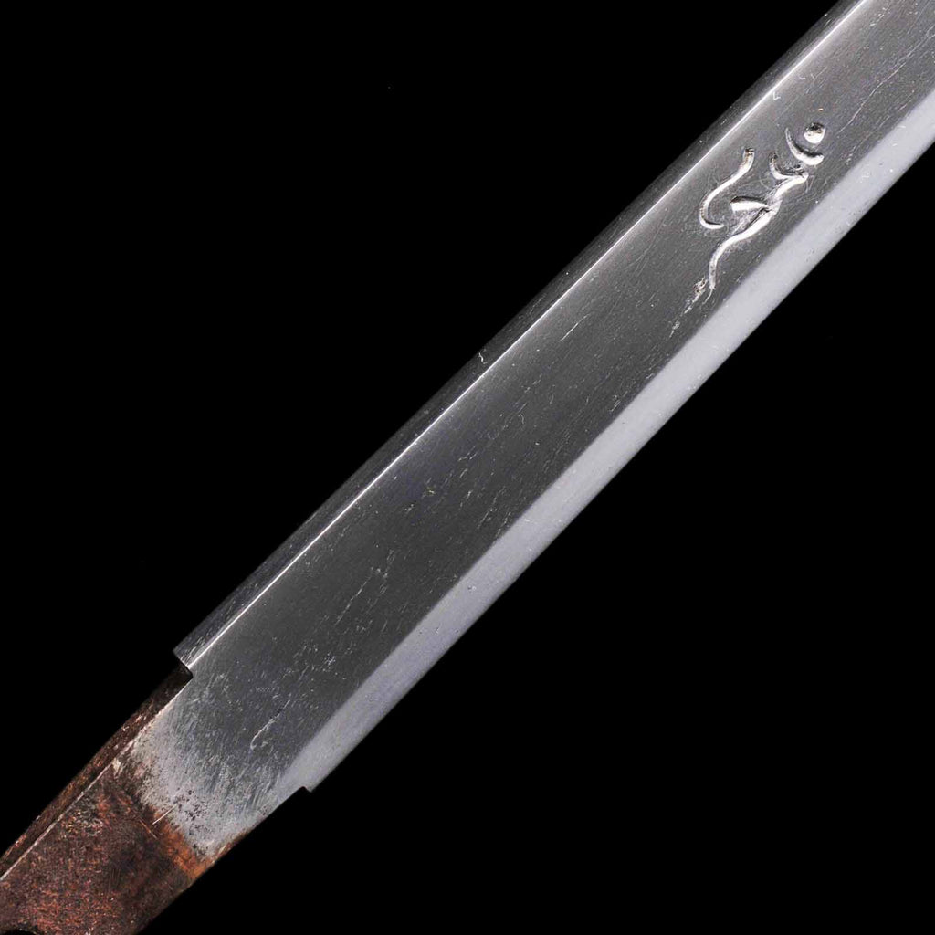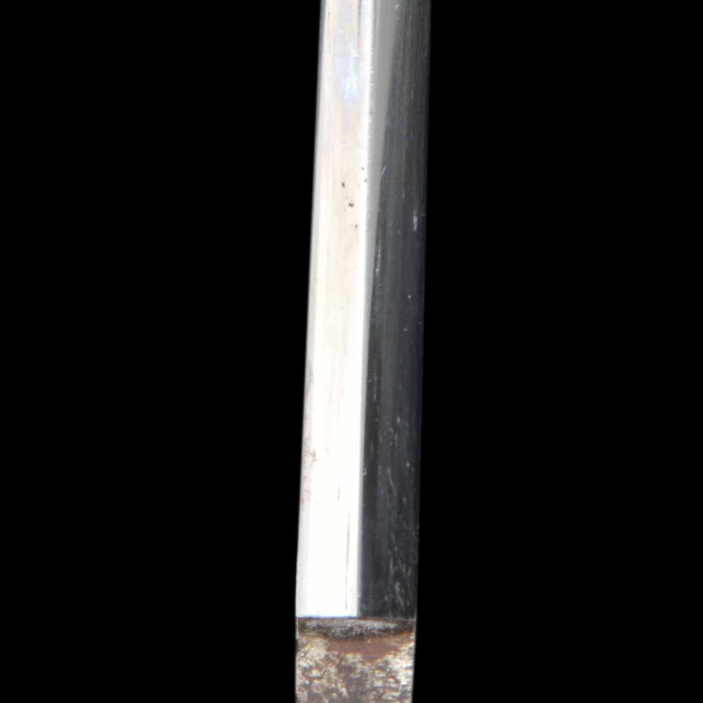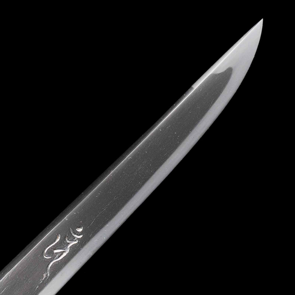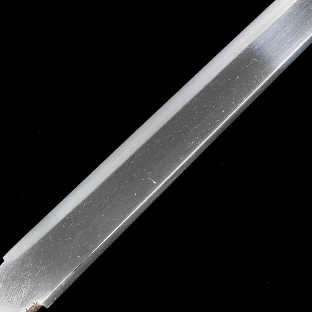 The sword is extremely well preserved, with no flaws, chips, rust, or other defects. Overall, it is well polished and very sound. The jigane is well tempered itame. Hamon has very fine kogunome burnished on the suguha, and is slightly pointed and nakamaru shaped at the boshi.