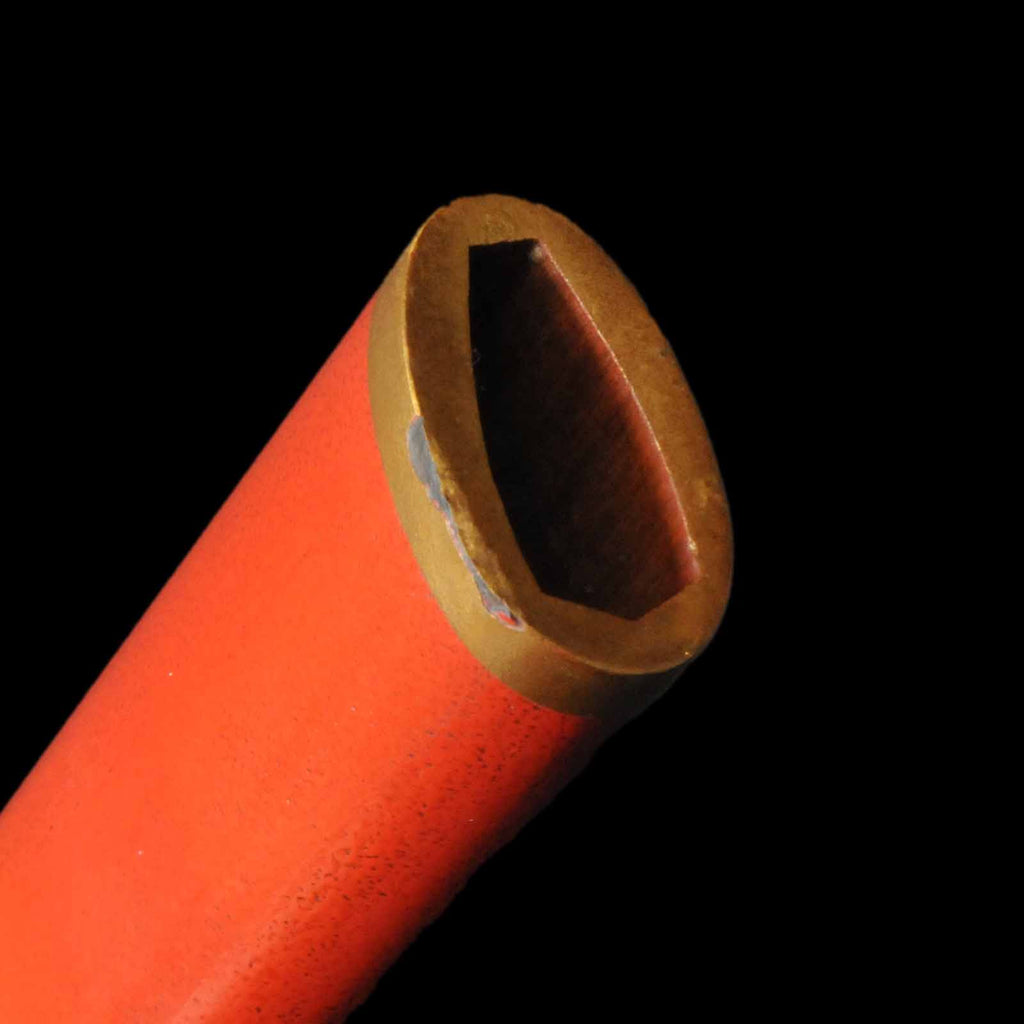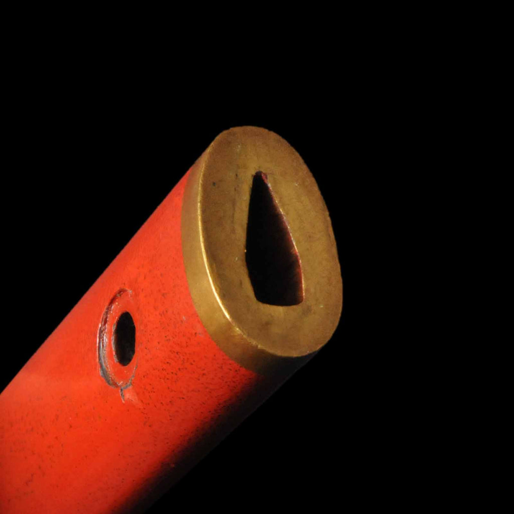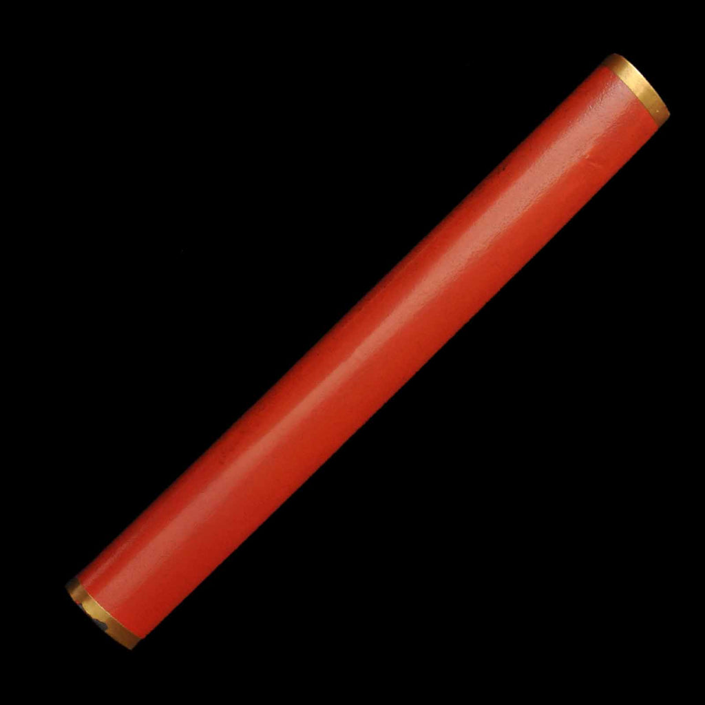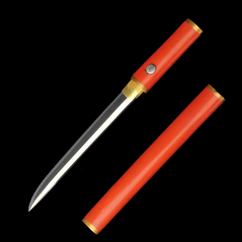 This piece is a shob zukuri pocket sword equipped with a bright vermilion lacquered aikuchi koshirae.