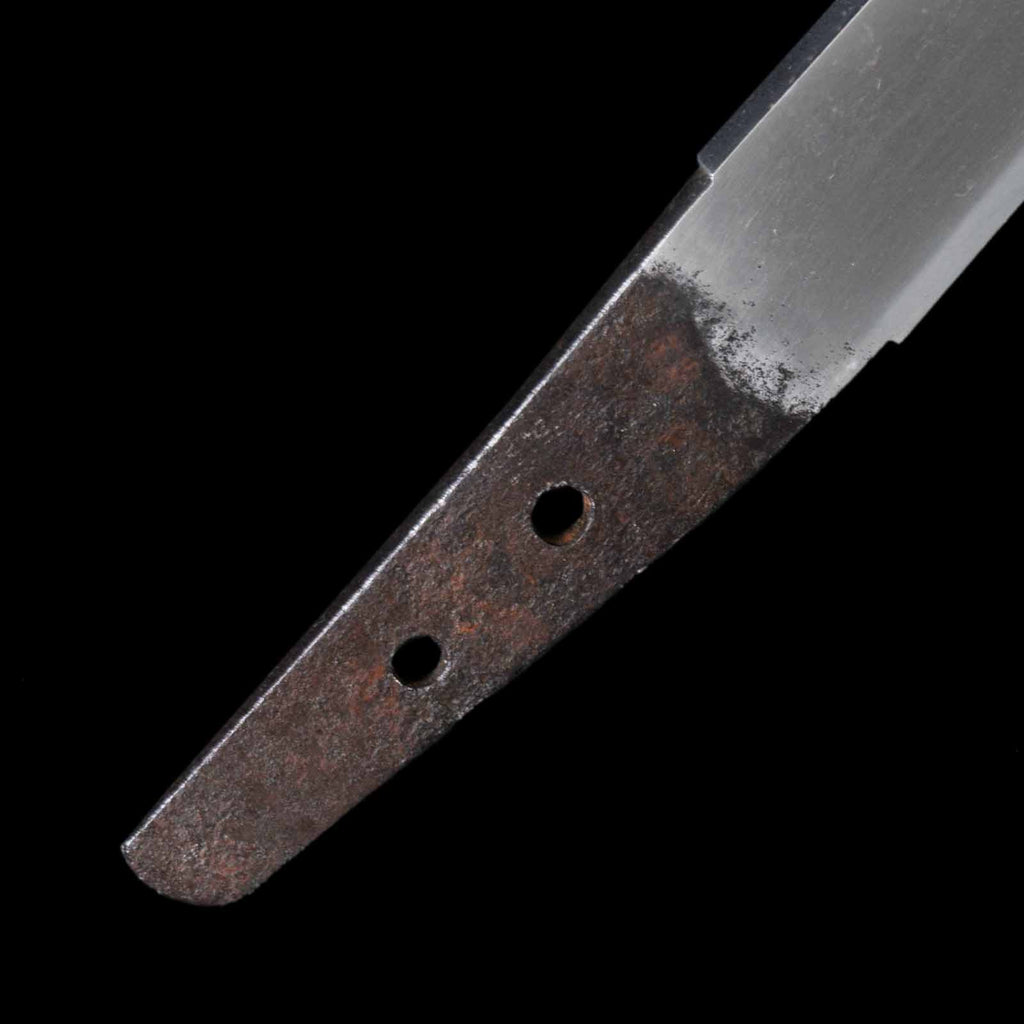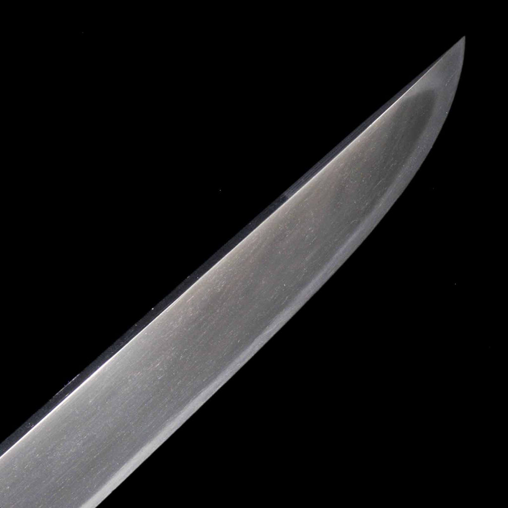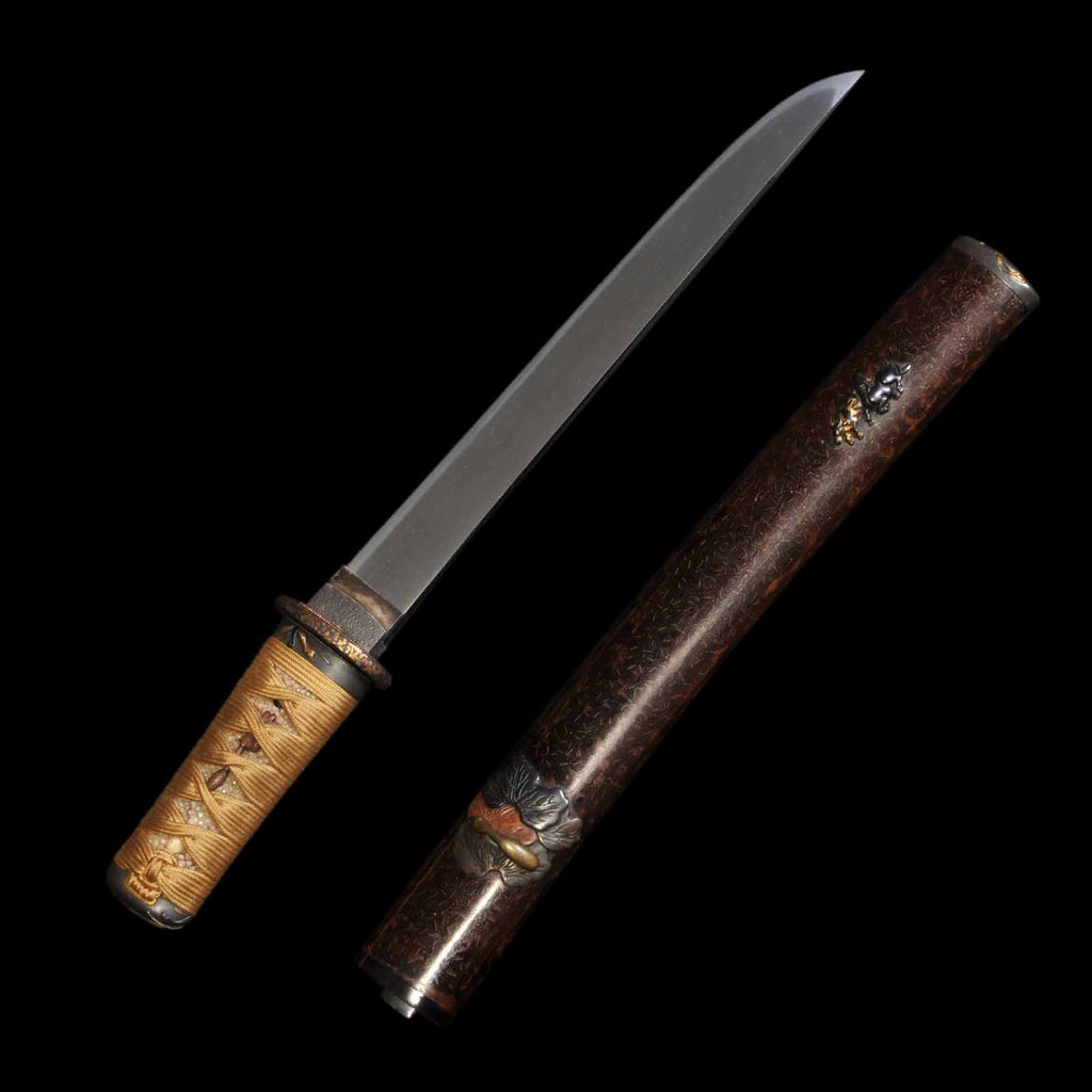 The sword is in very clean condition with no flaws, dents, or chips at all. The hada mixed with itame and mokume has very active hataraki such as chikei and sunagashi, which is a real pleasure to appreciate. The thin suguha hamon of niedeki is very elegant and combines utility and beauty. It is truly a short sword full of the characteristics of Japanese swords. The Society for Preservation of Japanese Art Swords has recognized this sword as a work of great value to be preserved for posterity, and has issued a certificate of authenticity for the hozon. Koshirae uses metal fittings that have the flavor of the period, and the metal fittings alone are valuable enough.