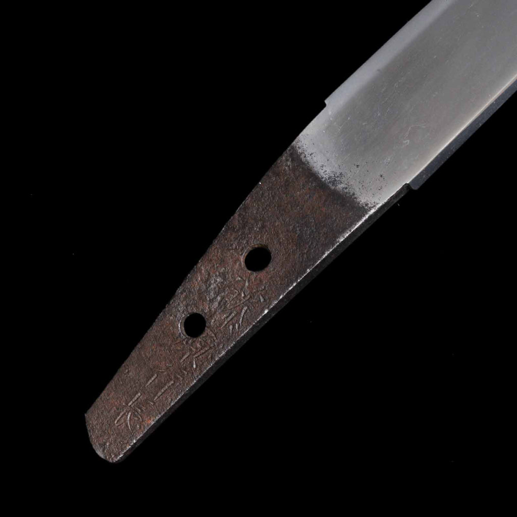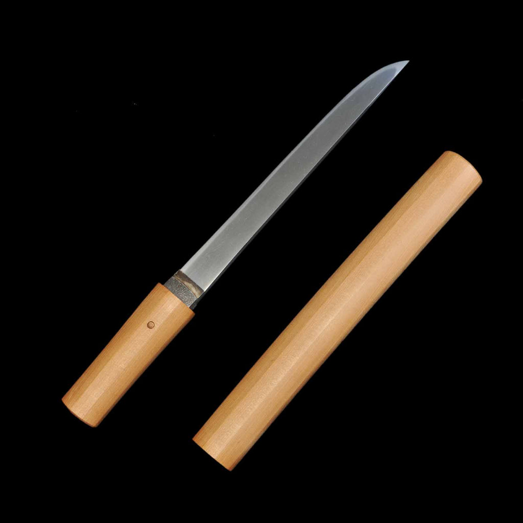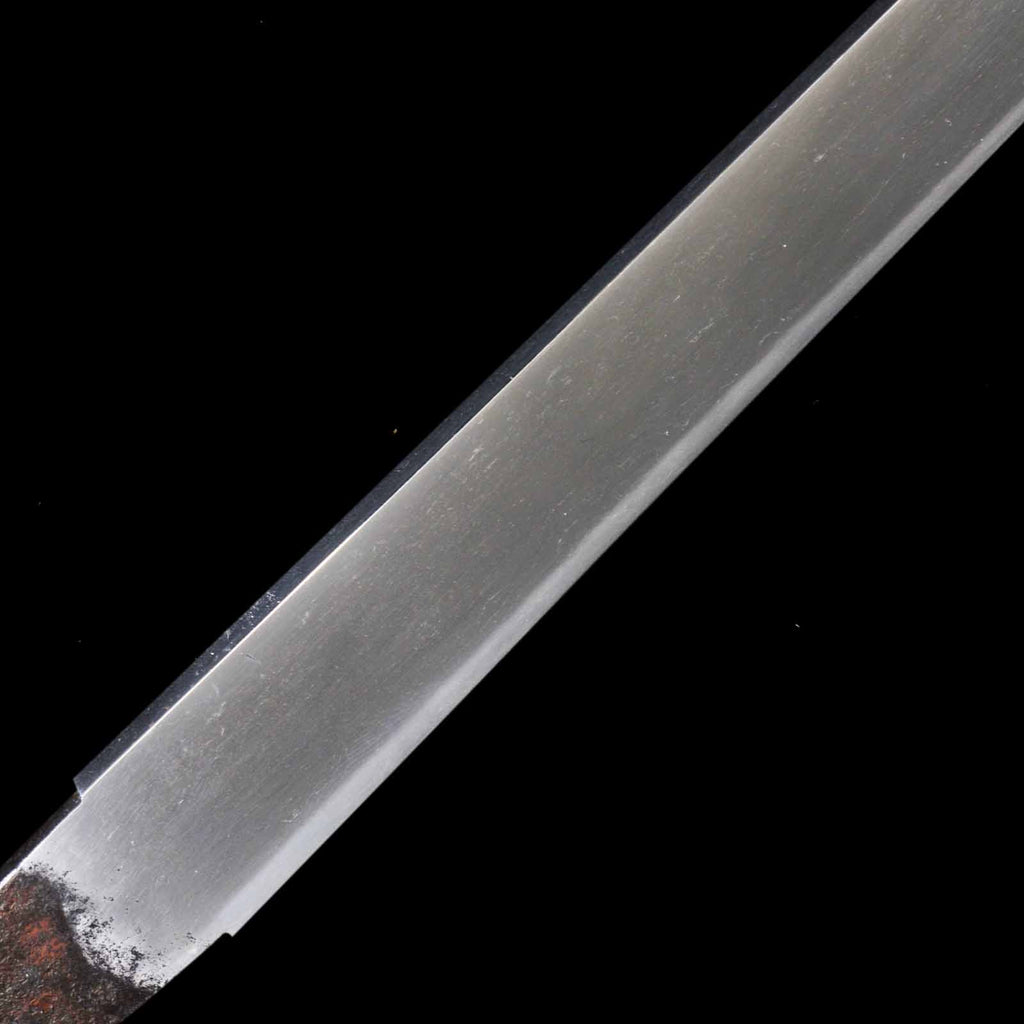 The sword is in very clean condition with no flaws, dents, or chips at all. The hada mixed with itame and mokume has very active hataraki such as chikei and sunagashi, which is a real pleasure to appreciate. The thin suguha hamon of niedeki is very elegant and combines utility and beauty. It is truly a short sword full of the characteristics of Japanese swords. The Society for Preservation of Japanese Art Swords has recognized this sword as a work of great value to be preserved for posterity, and has issued a certificate of authenticity for the hozon. Koshirae uses metal fittings that have the flavor of the period, and the metal fittings alone are valuable enough.