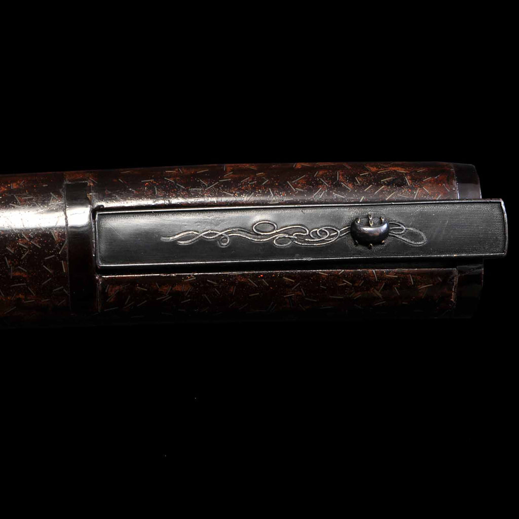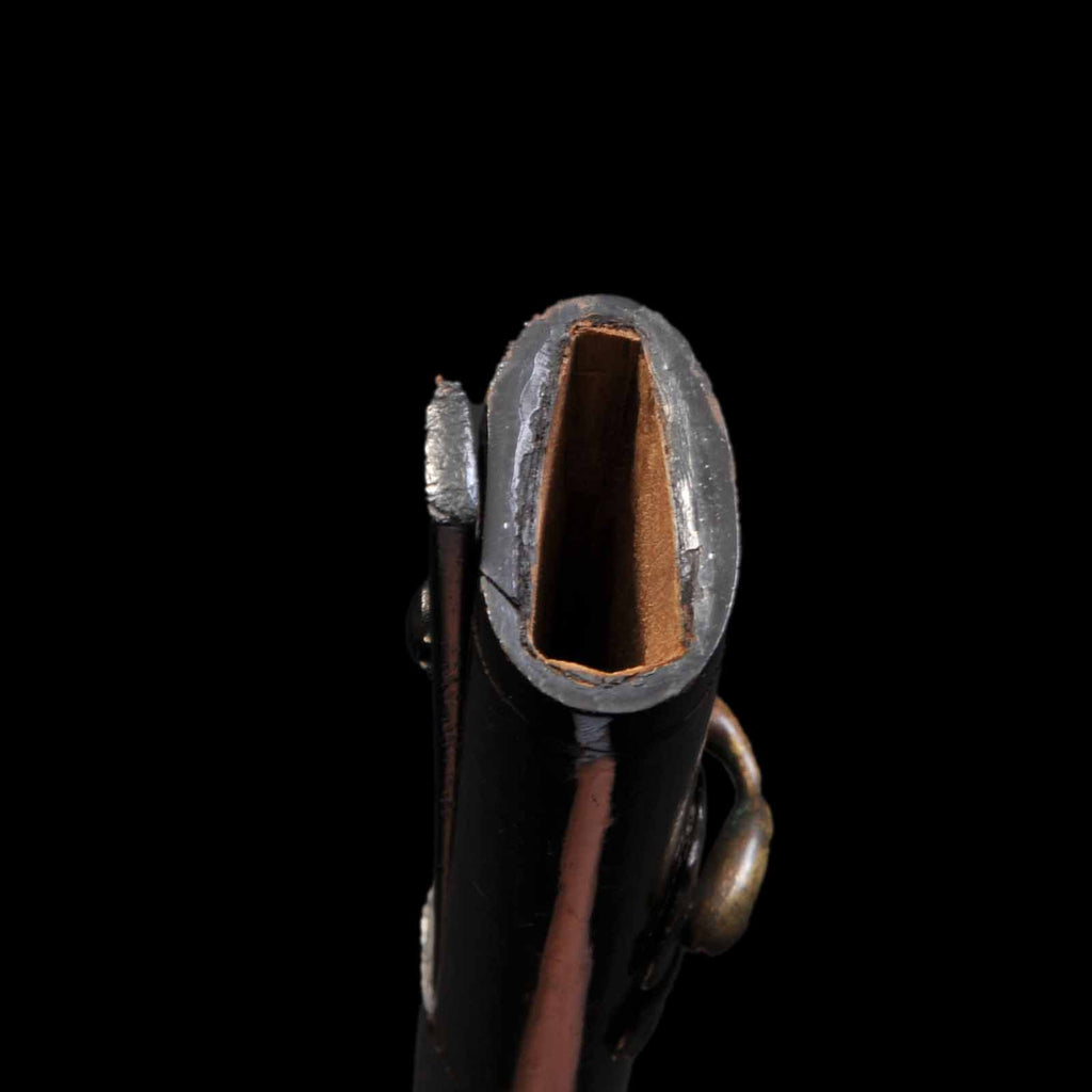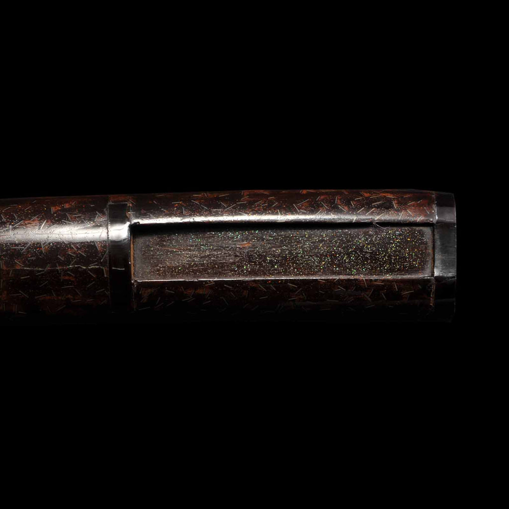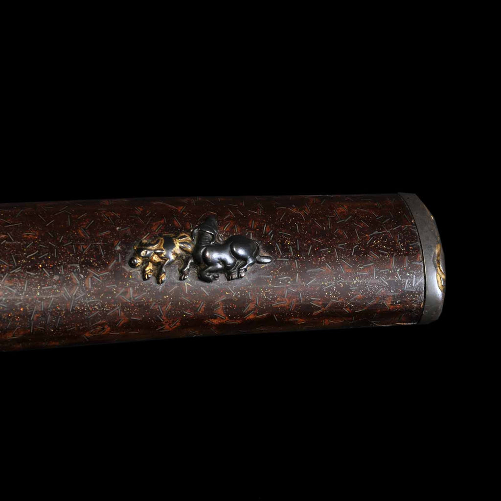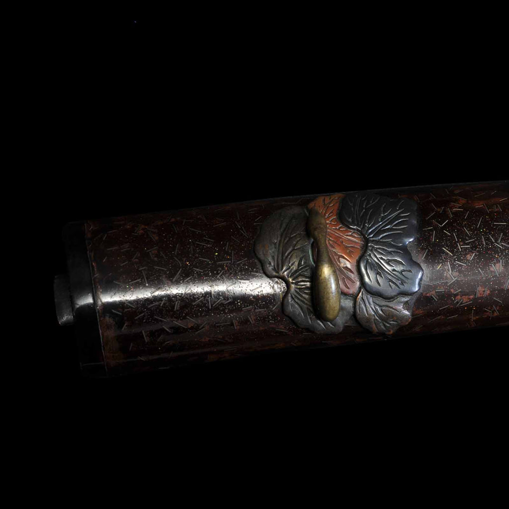 The scabbard lacquer is made of multiple coats of lacquer with a unique pattern overlaid on it. The kojiri and kurigata are also decorated with metal fittings, and while being a gorgeous piece of equipment, one can sense the spirit of the samurai.