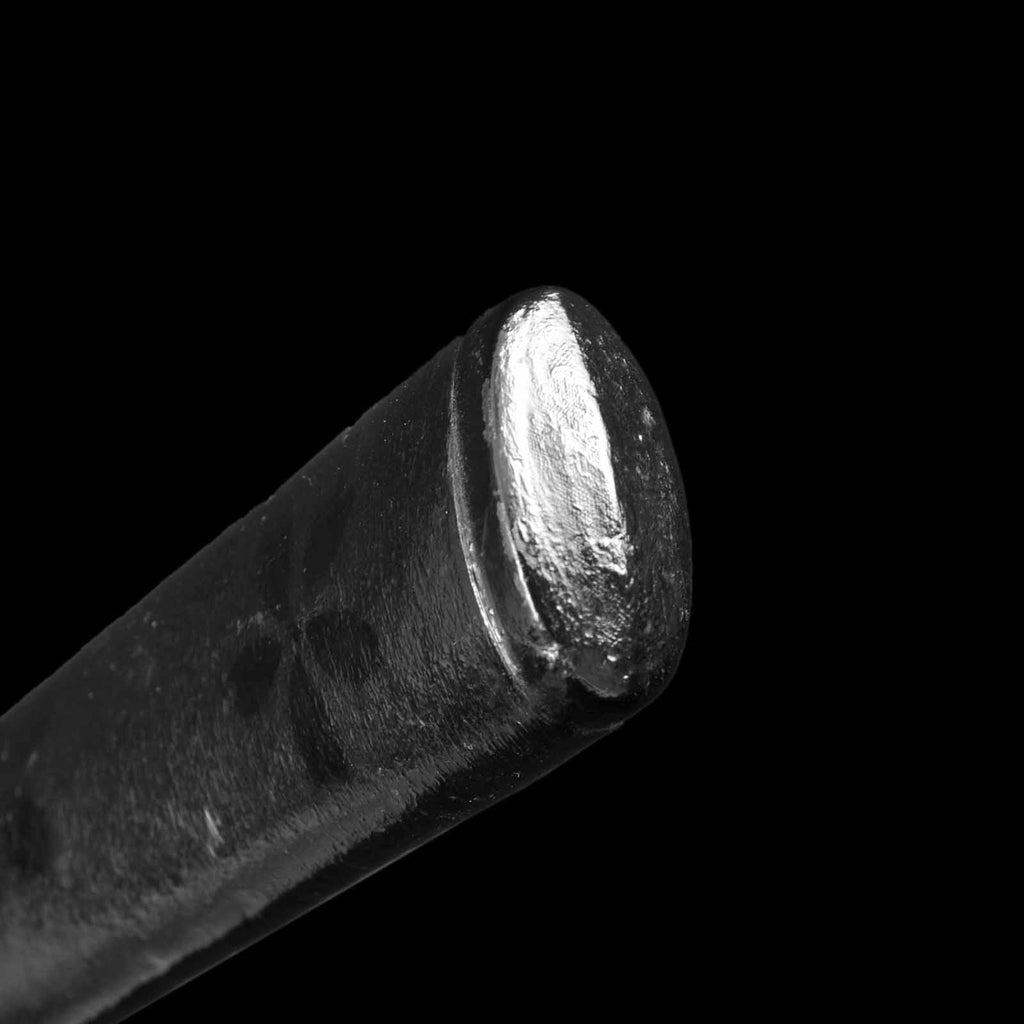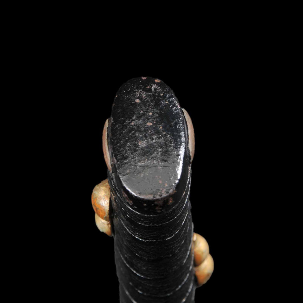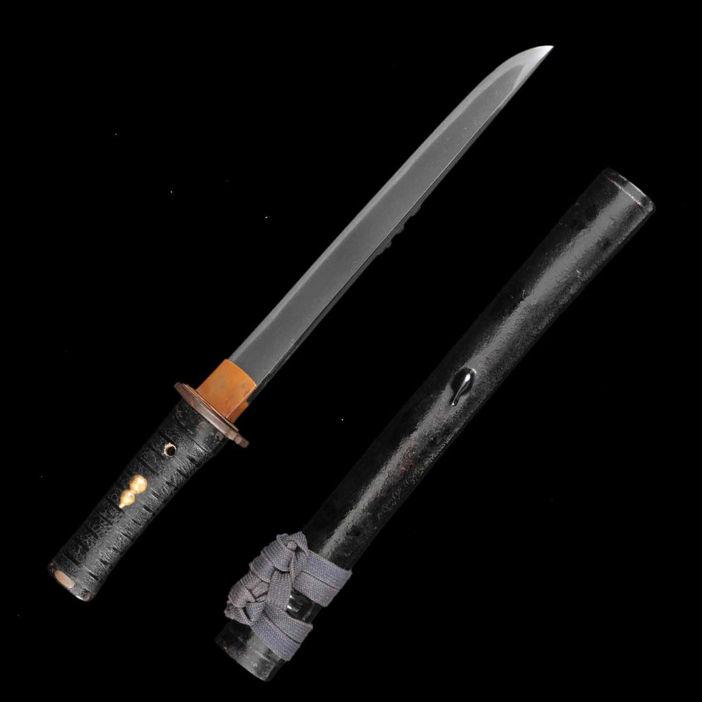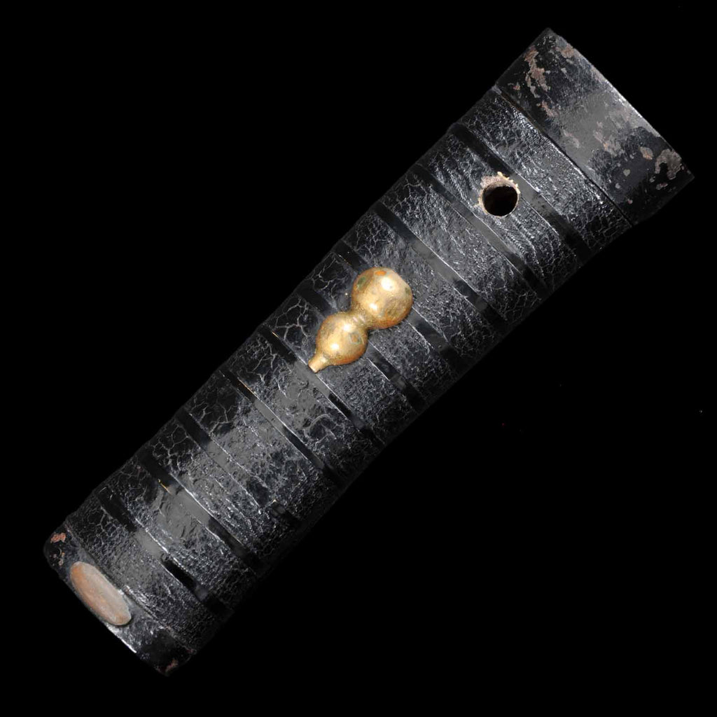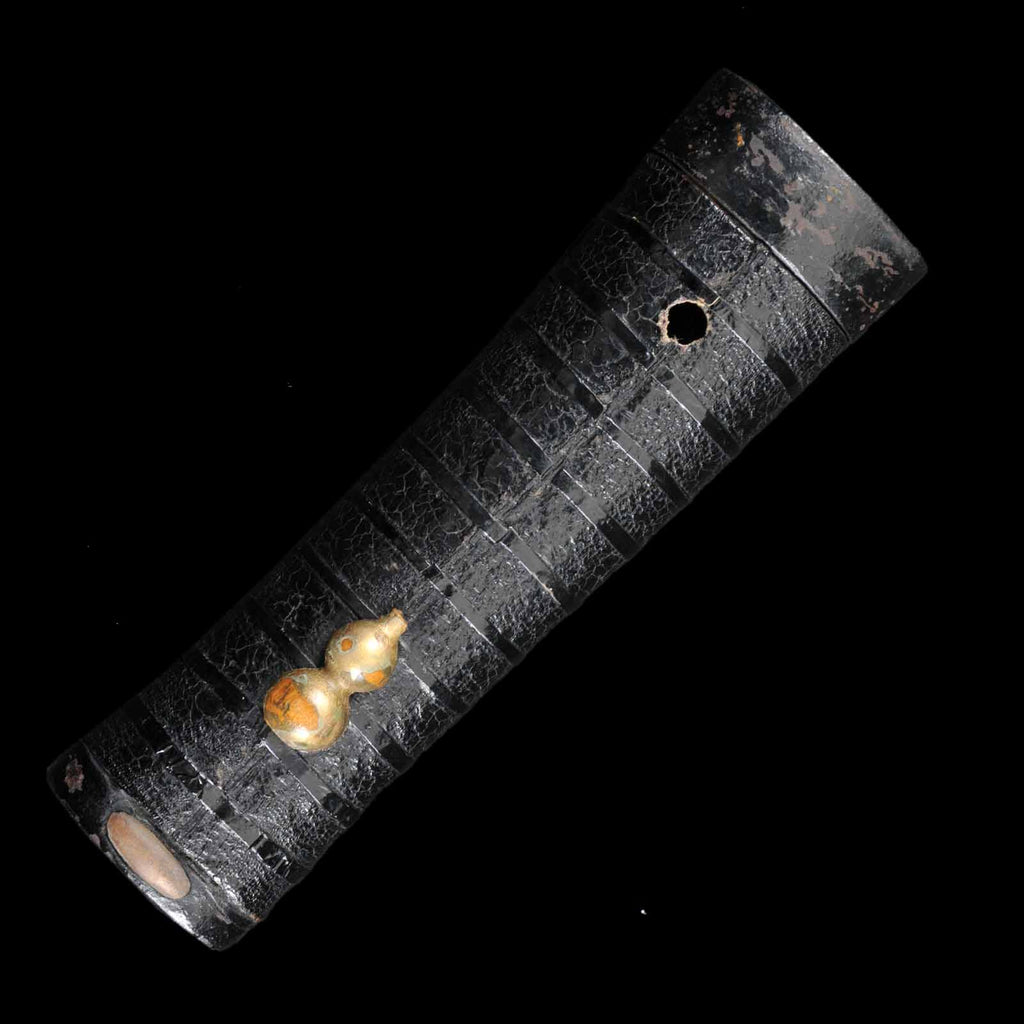 Koshirae has the entire tsuka japan-lacquered and fitted with a gourd menuki, a motif of good fortune. The saya has a powerful black tataki-lacquering, embodying the temperament of an Edo period samurai.