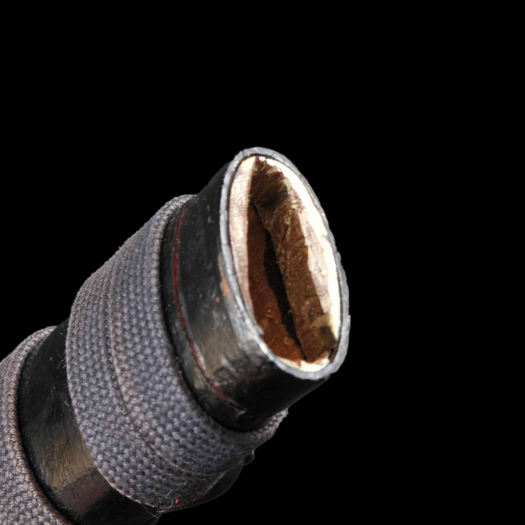 - Koshirae: Japanese-lacquered wooden Tsuka with black Tataki-lacquered Saya
