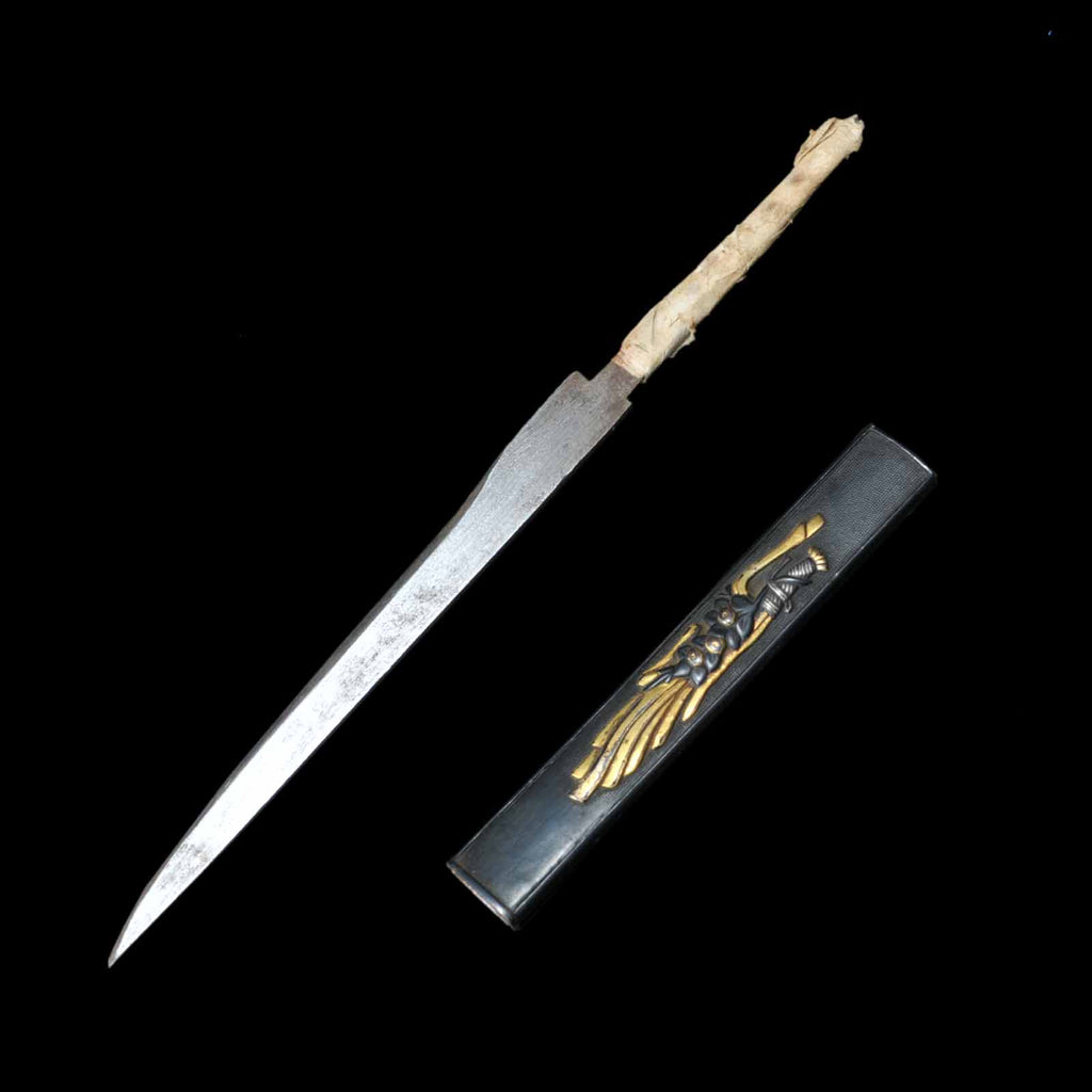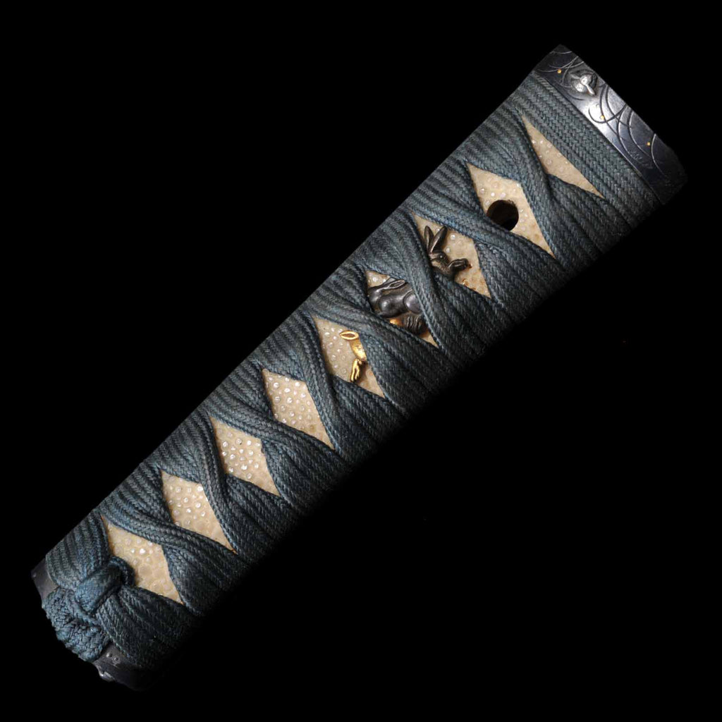 The uchigatana koshirae is very sound and shows little wear from age. The kizami-style scabbard is also equipped with a kozuka, making it a total package as a wakizashi.