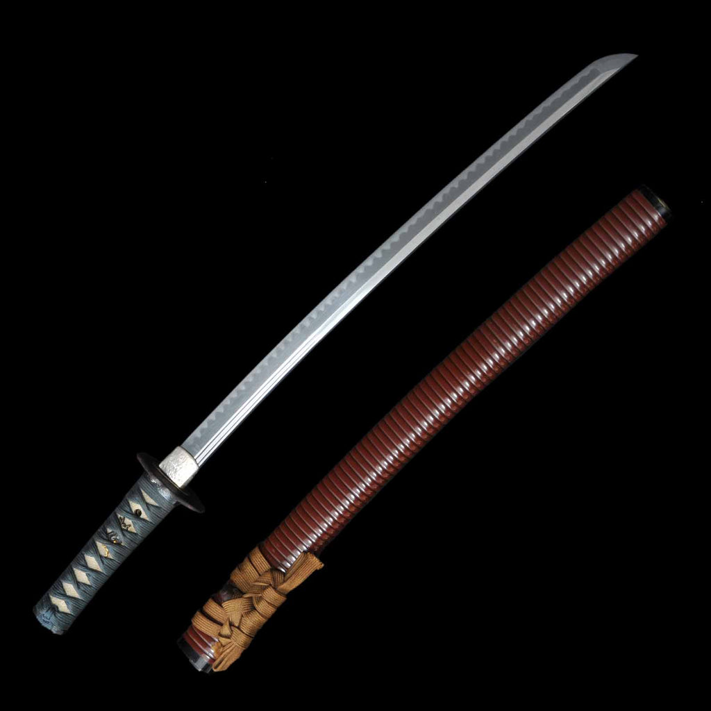 - Fitting: Tetsukon silk wrapped Tsuka with vermilion-lacquered Kizami Saya