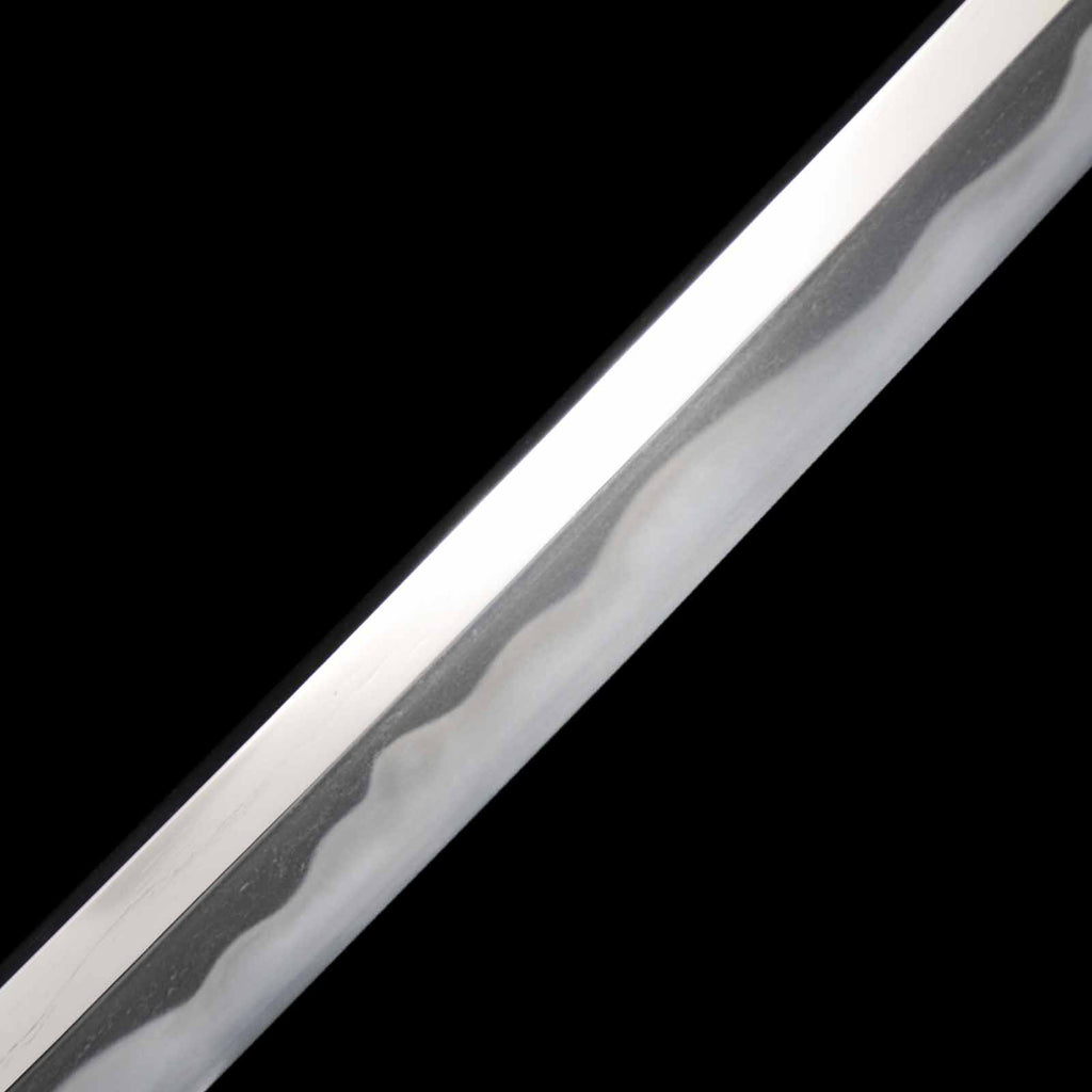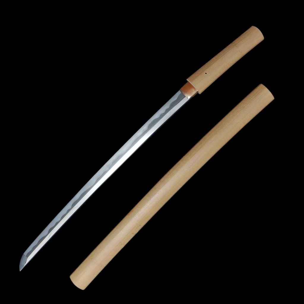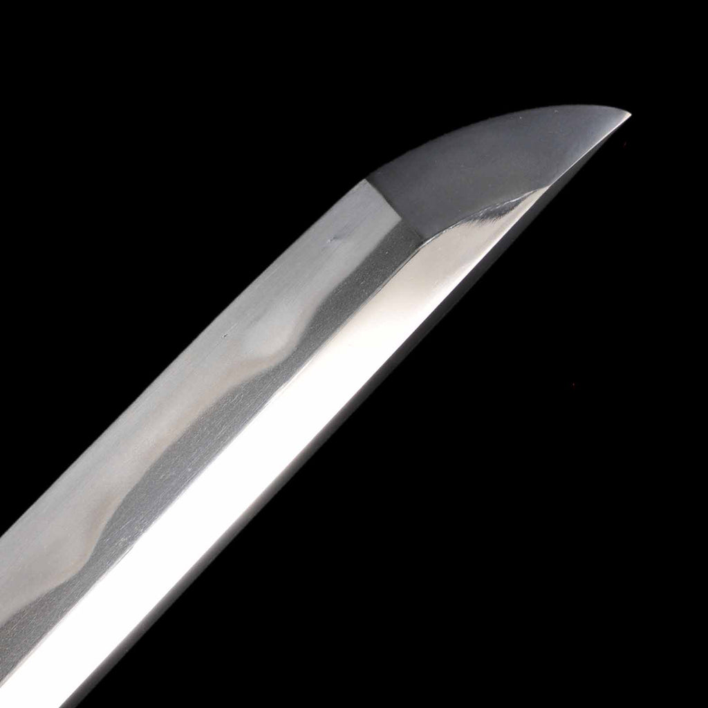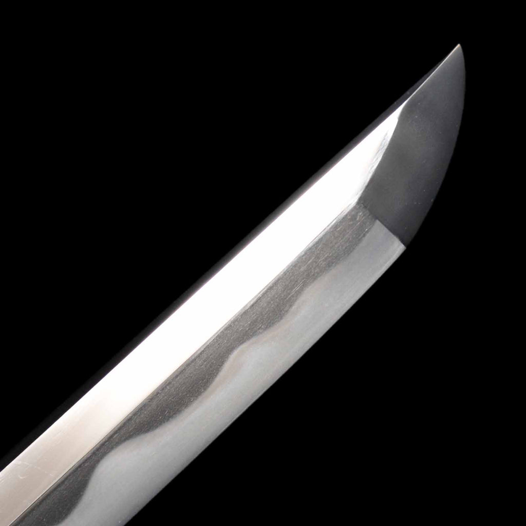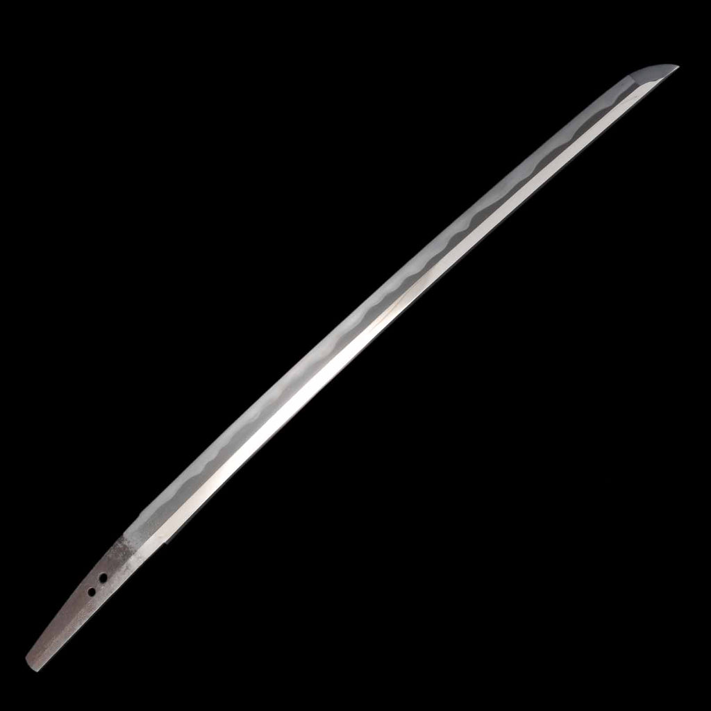 - Koshirae: Black silk Tsuka Tsumami-maki with Sakuragawa lacquered saya, Shirasaya