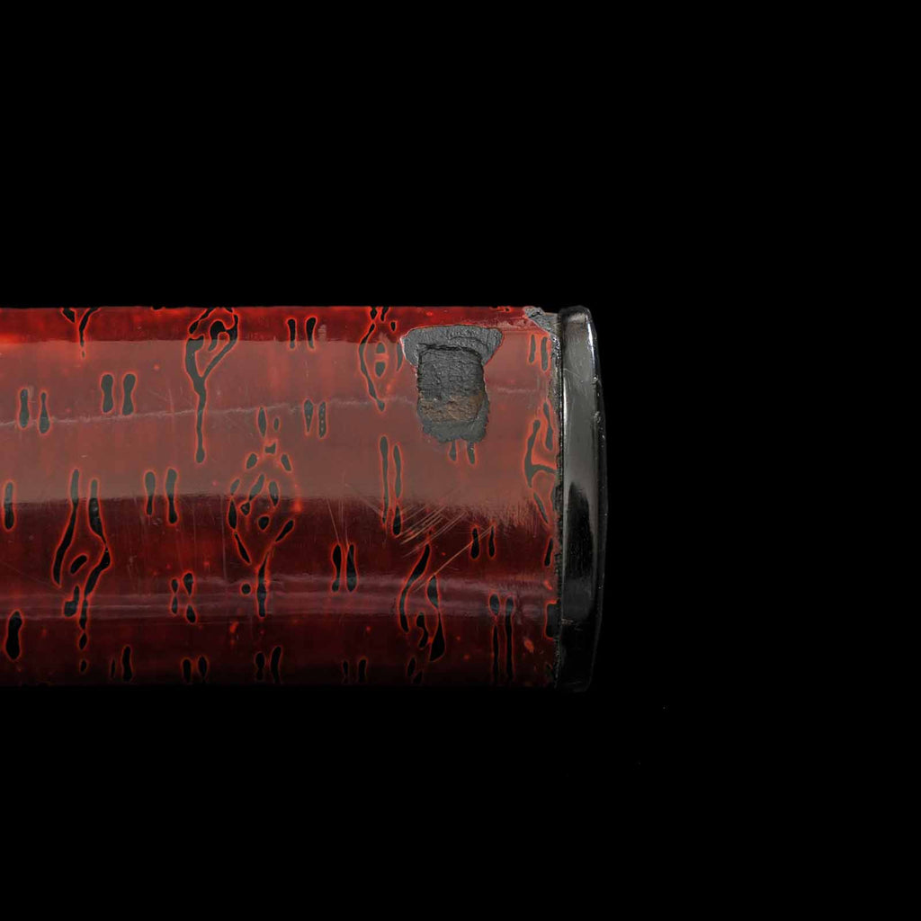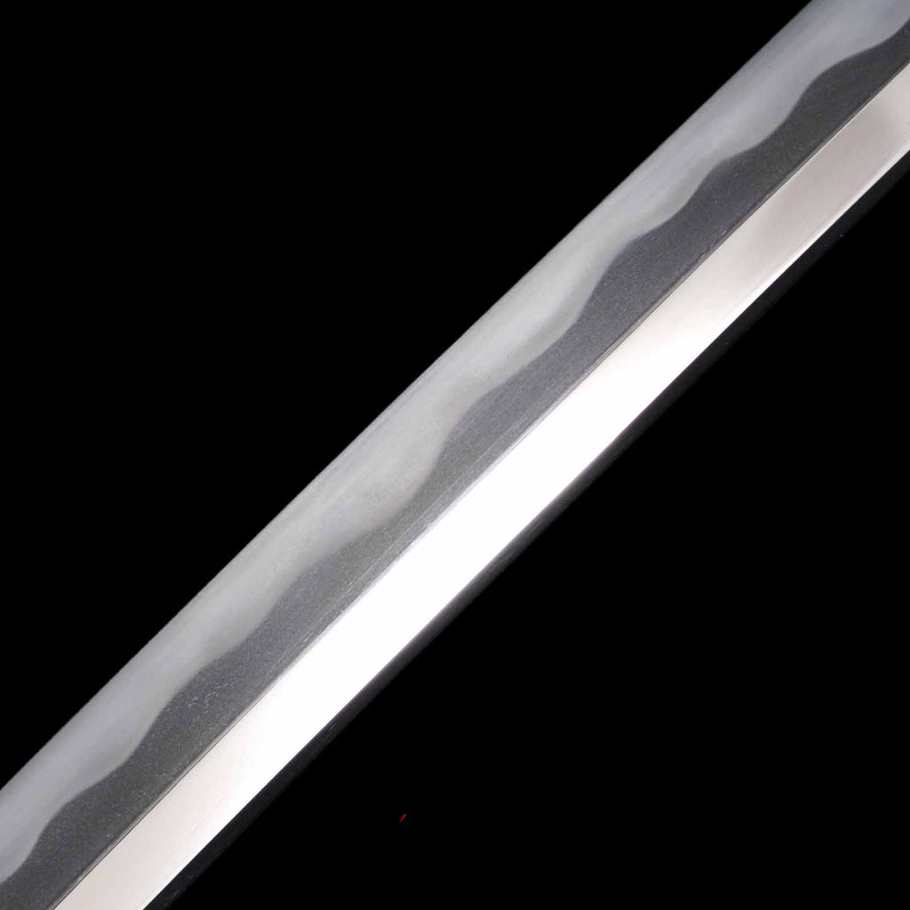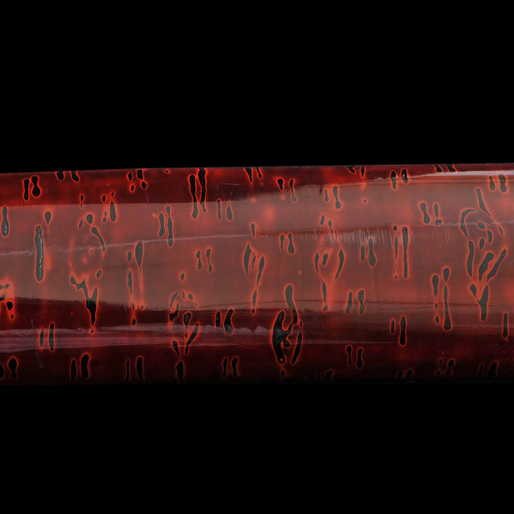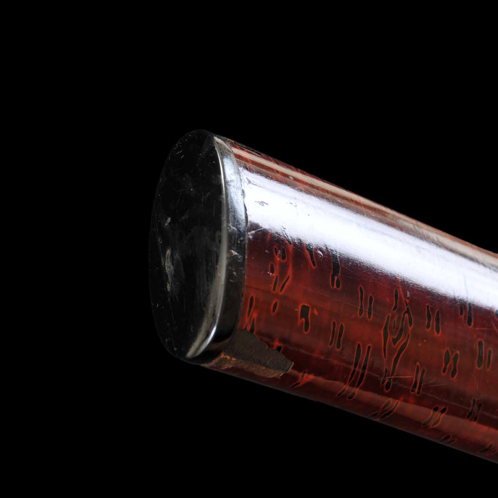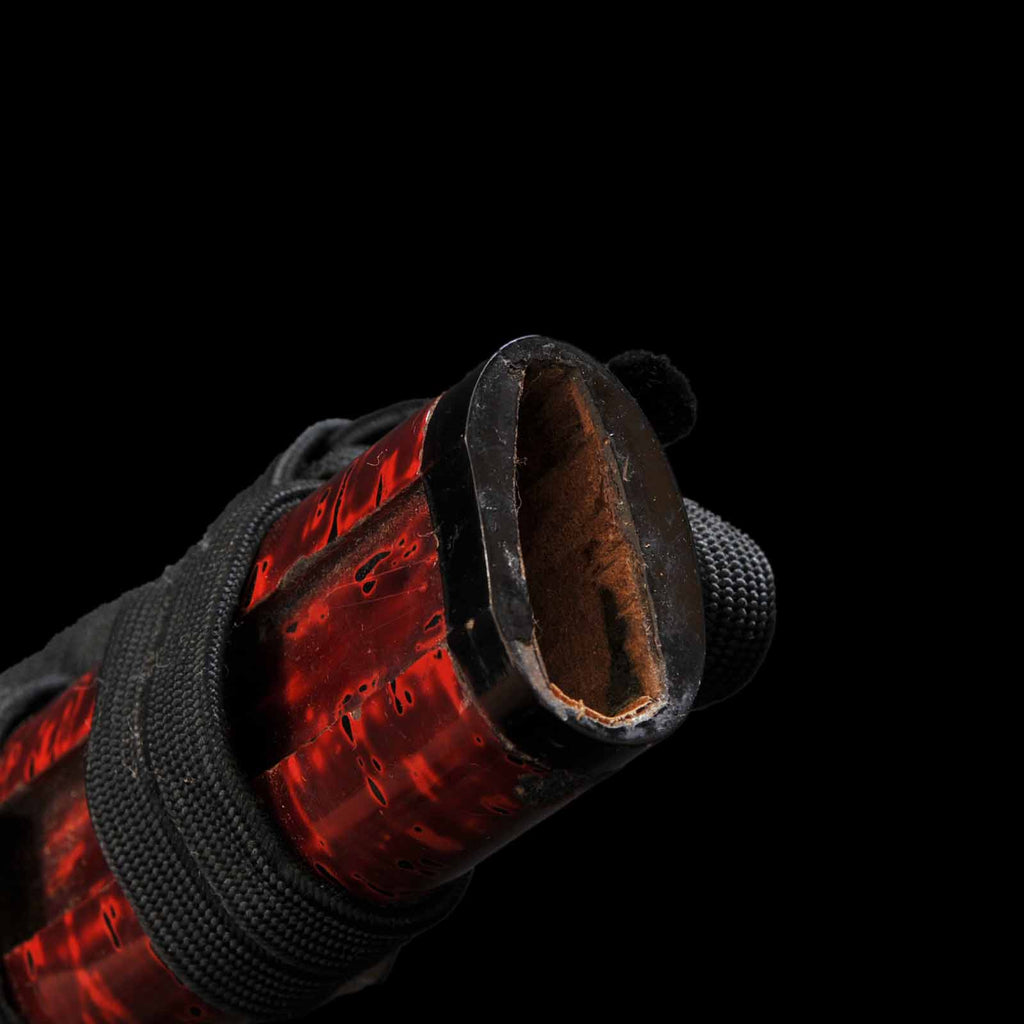 - Koshirae: Black silk Tsuka Tsumami-maki with Sakuragawa lacquered saya, Shirasaya