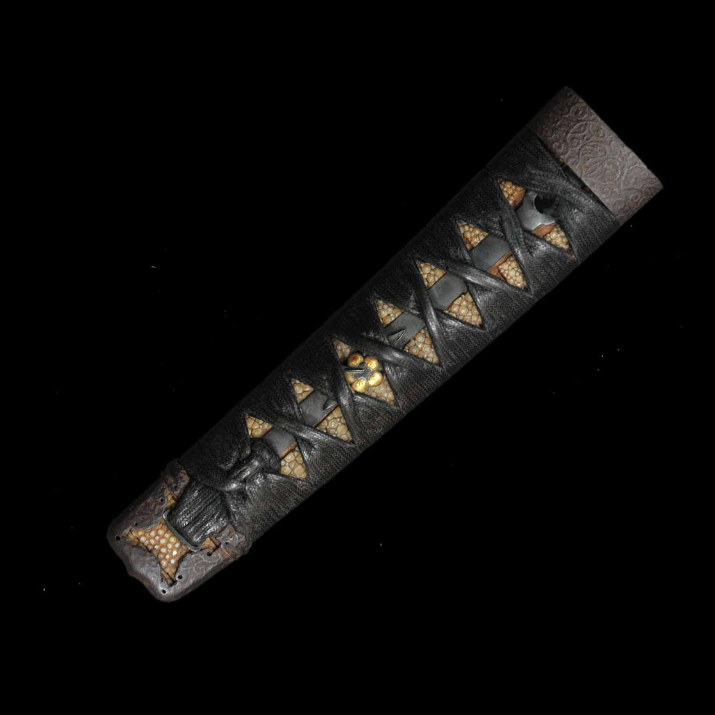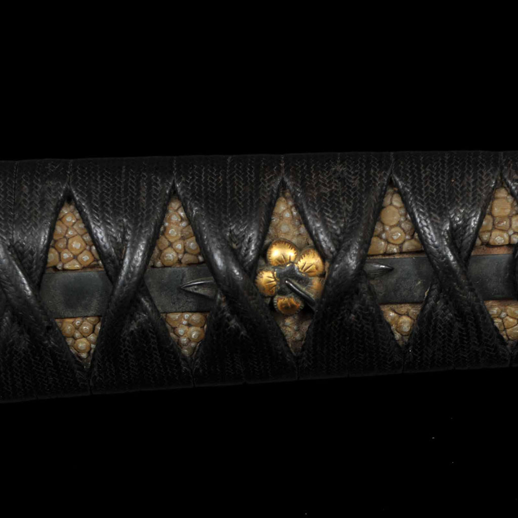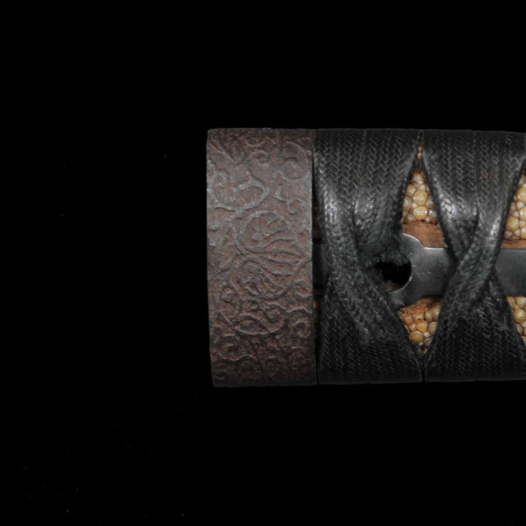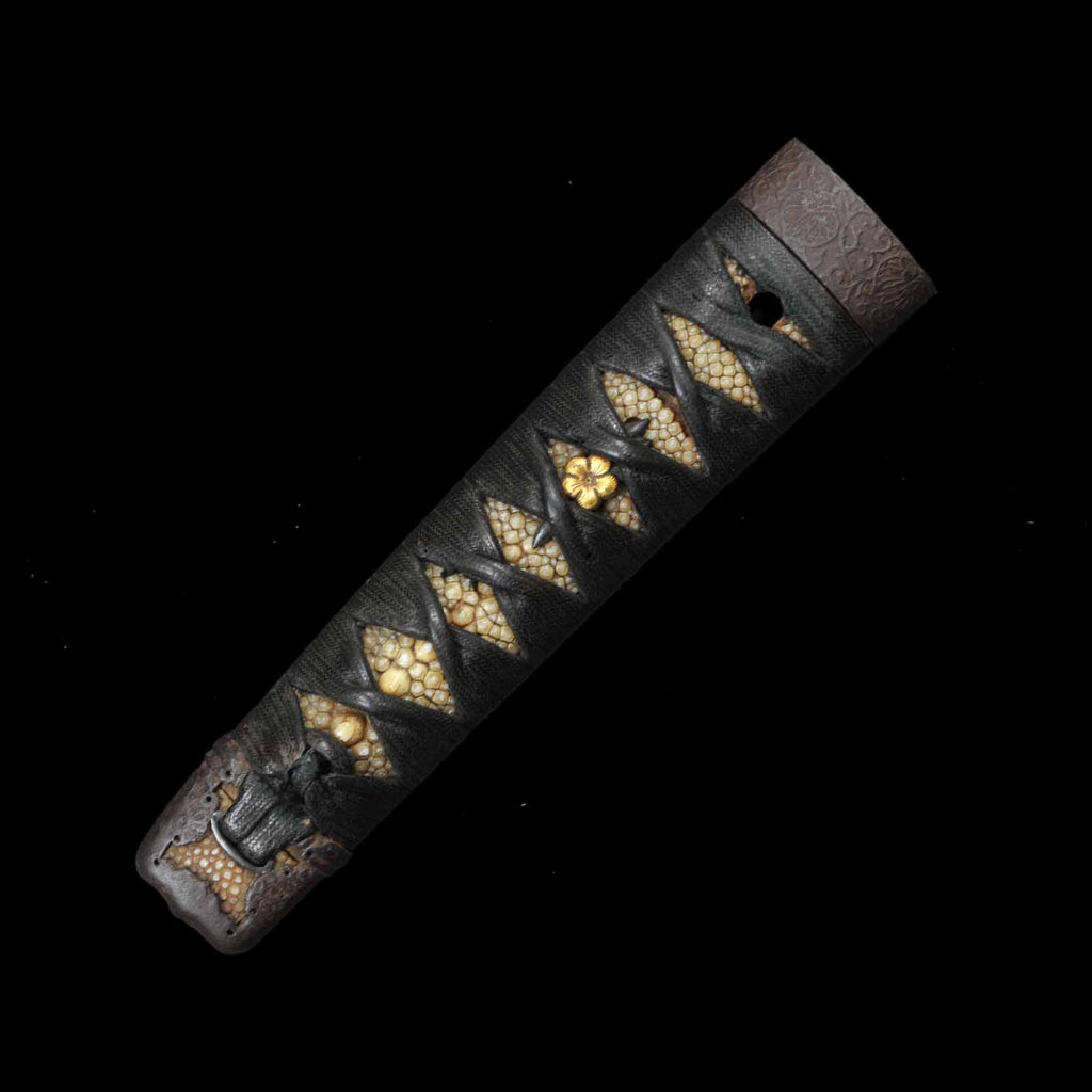 - Koshirae: Black silk tsuka wrappping with dark brown Kanshitsu lacquered saya