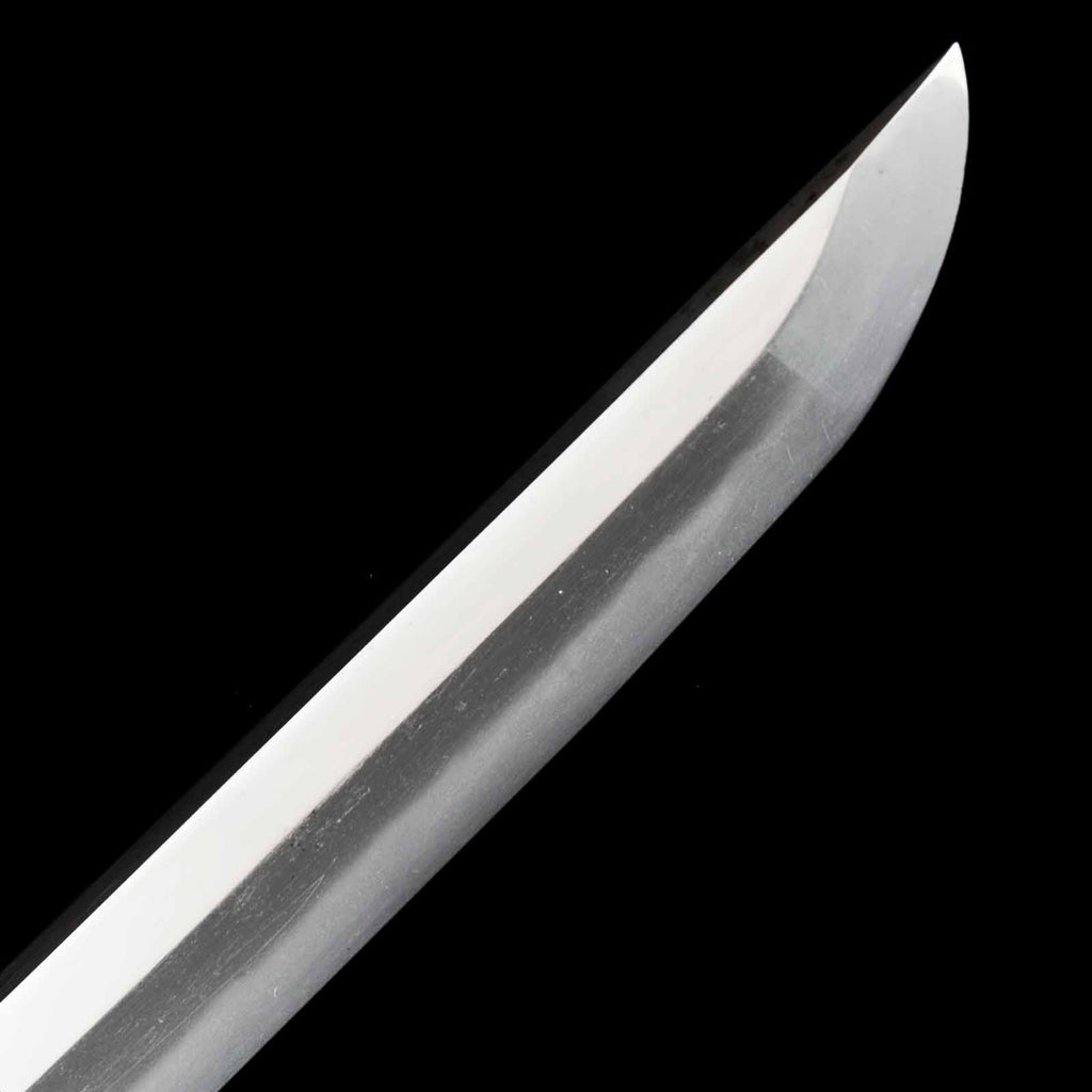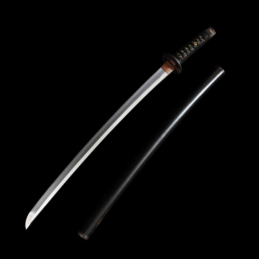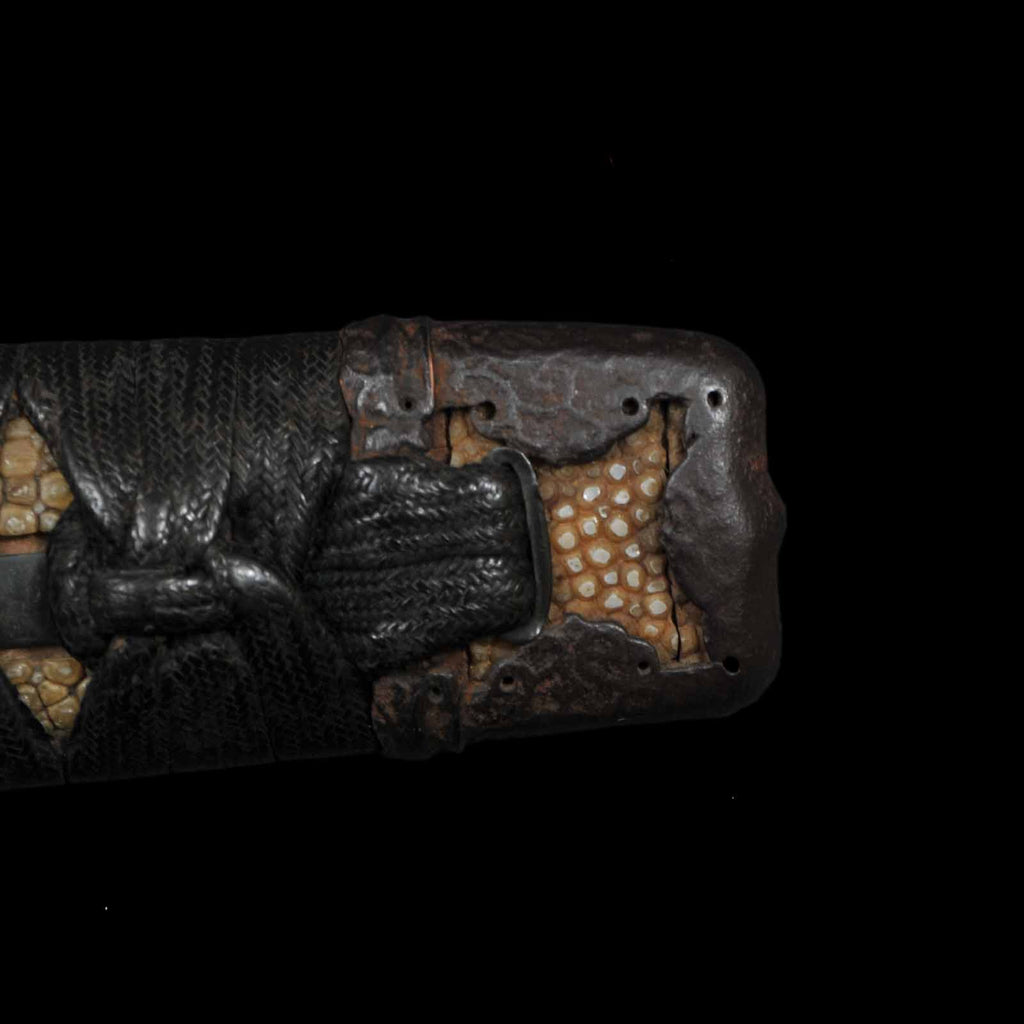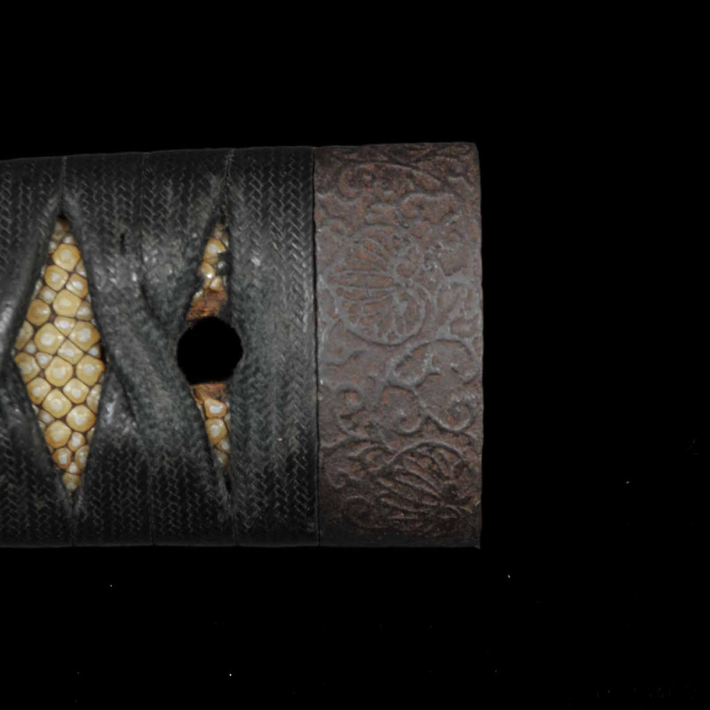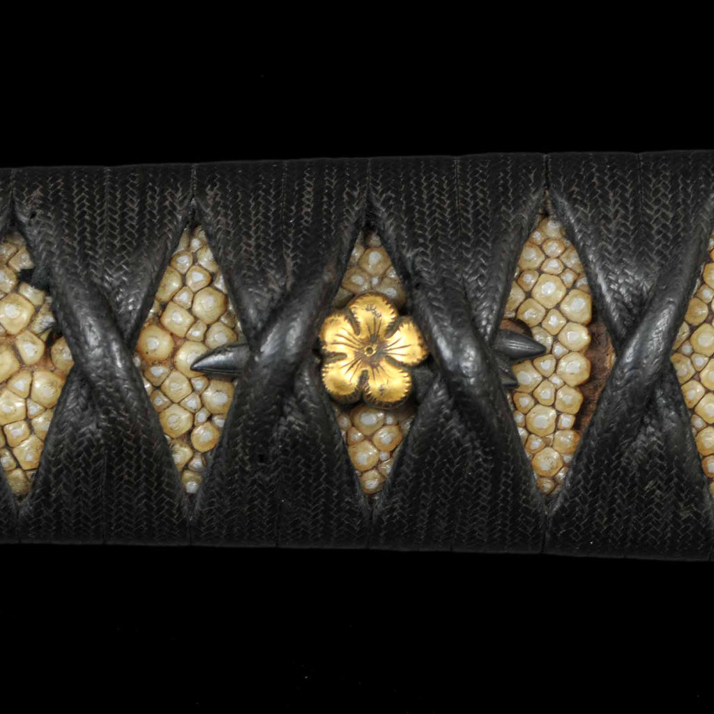 - Koshirae: Black silk tsuka wrappping with dark brown Kanshitsu lacquered saya