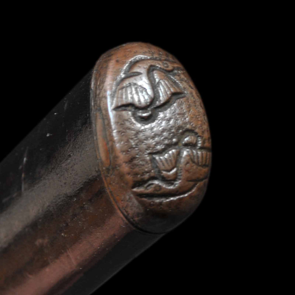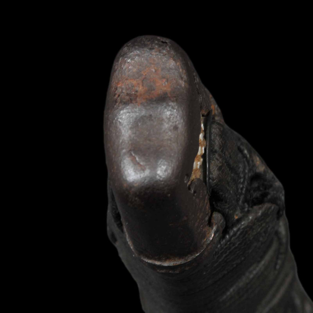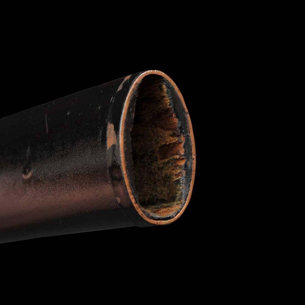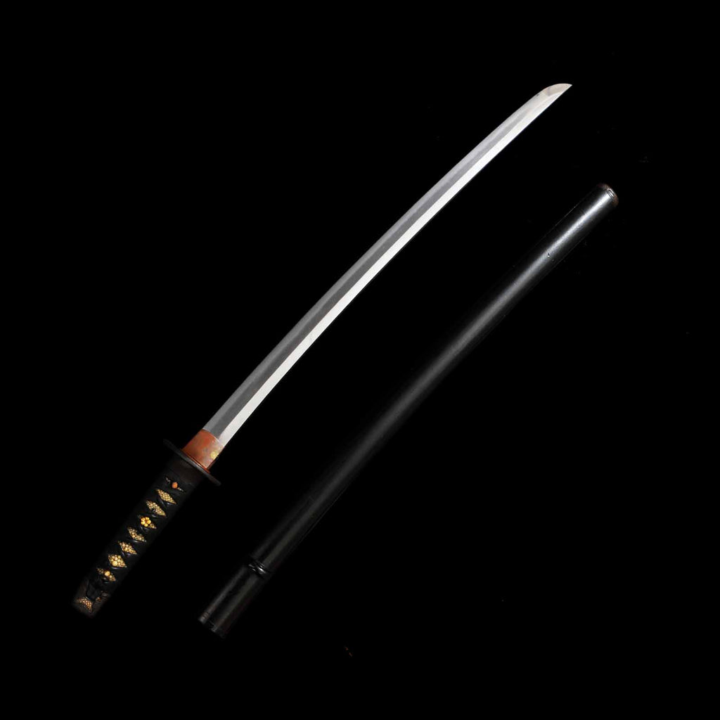 - Koshirae: Black silk tsuka wrappping with dark brown Kanshitsu lacquered saya