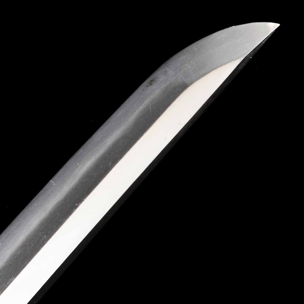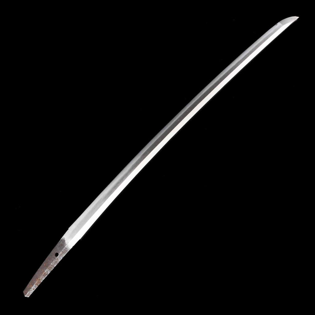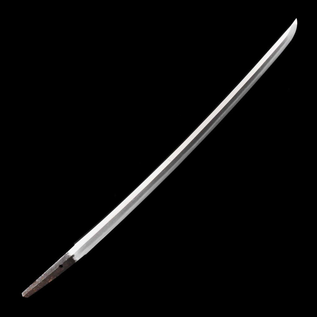 The condition of this sword is relatively good, with no chips or dents, but with minute black rust. There is also a 7 mm long kitae flaw about 6 cm from the hahakimoto on the sashiomote. The overall surface of the sword is slightly cloudy.