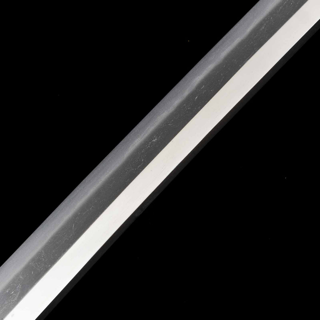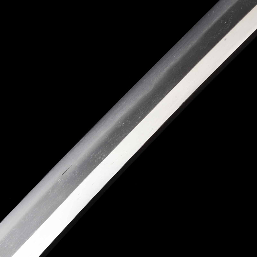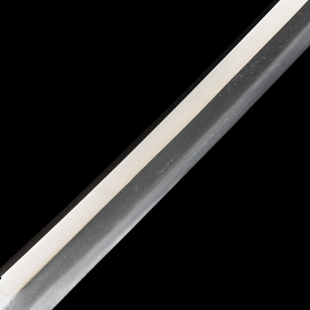 The condition of this sword is relatively good, with no chips or dents, but with minute black rust. There is also a 7 mm long kitae flaw about 6 cm from the hahakimoto on the sashiomote. The overall surface of the sword is slightly cloudy.