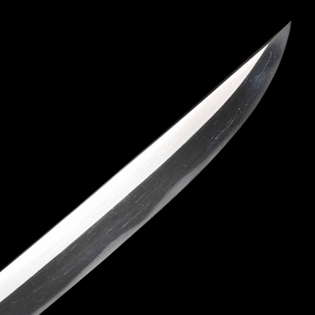 Size-wise, it is more of an Otanto than a Wakizashi. The preservation of the blade is relatively good, but the blade has some minor rust and shallow scratches in several places. The hada is itame, with very dynamic hataraki such as chikei and yubashiri. Hamon is a well-tightened nie thin notare and very elegant.
