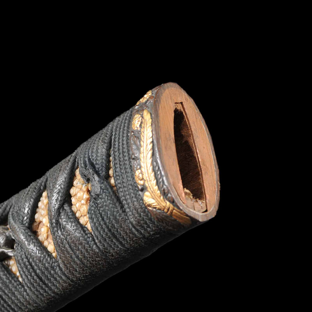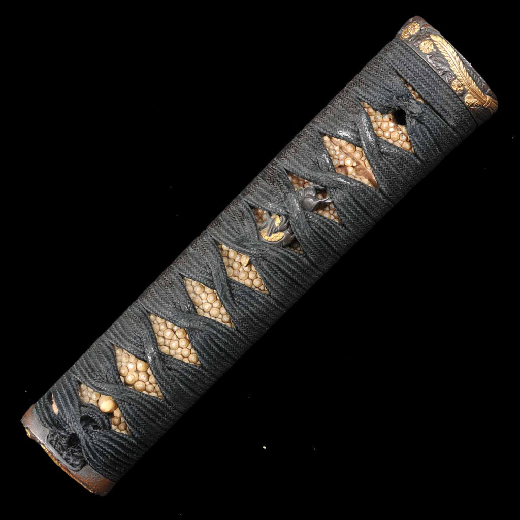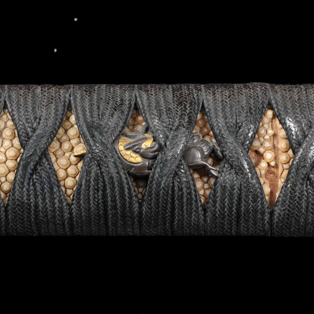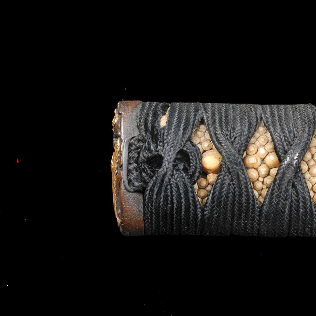 • Koshirae: Black silk wrapped Tsuka with Tamenuri-lacquered Saya