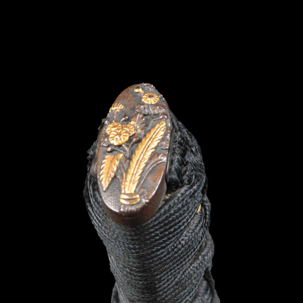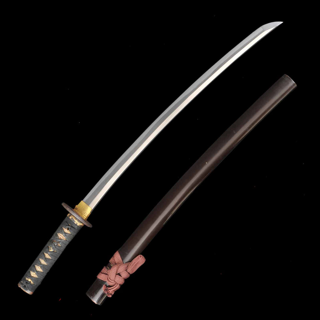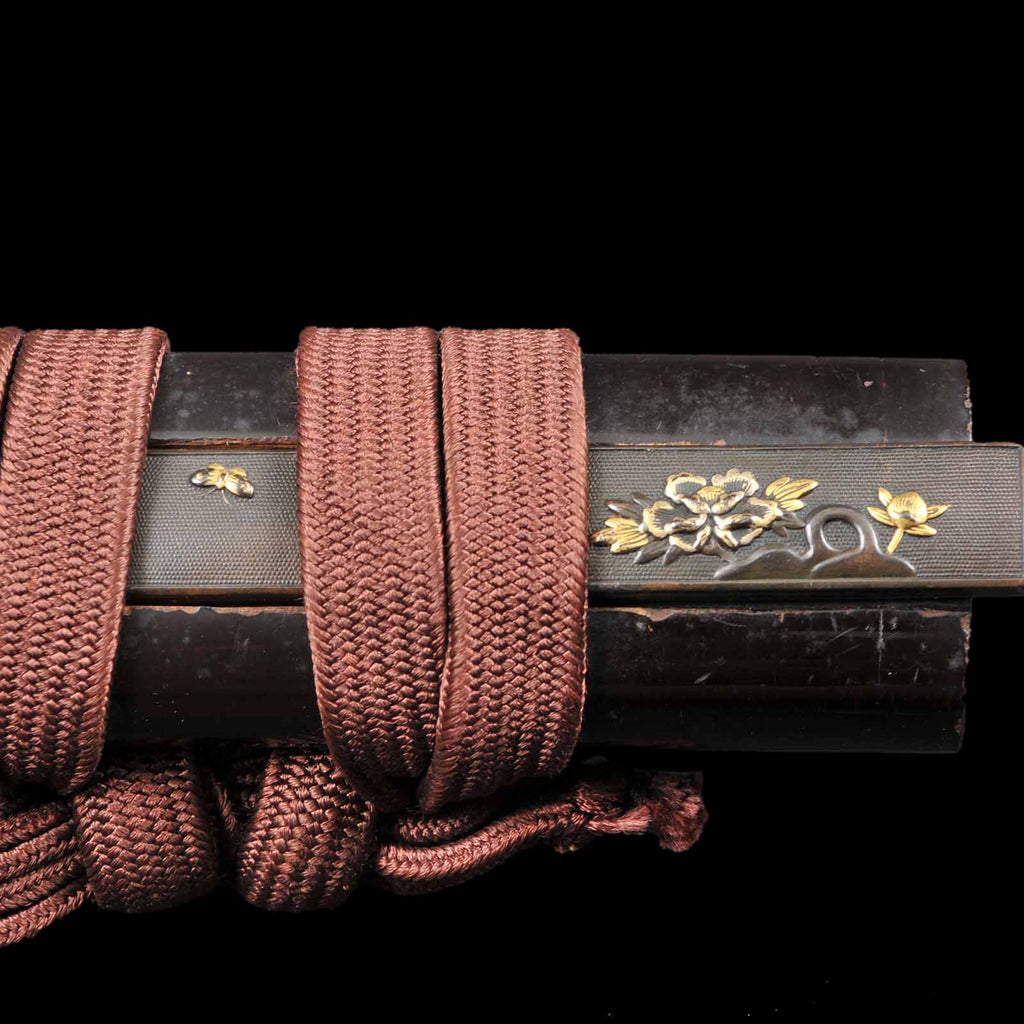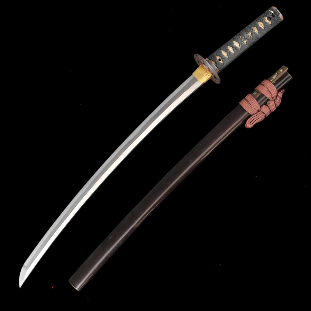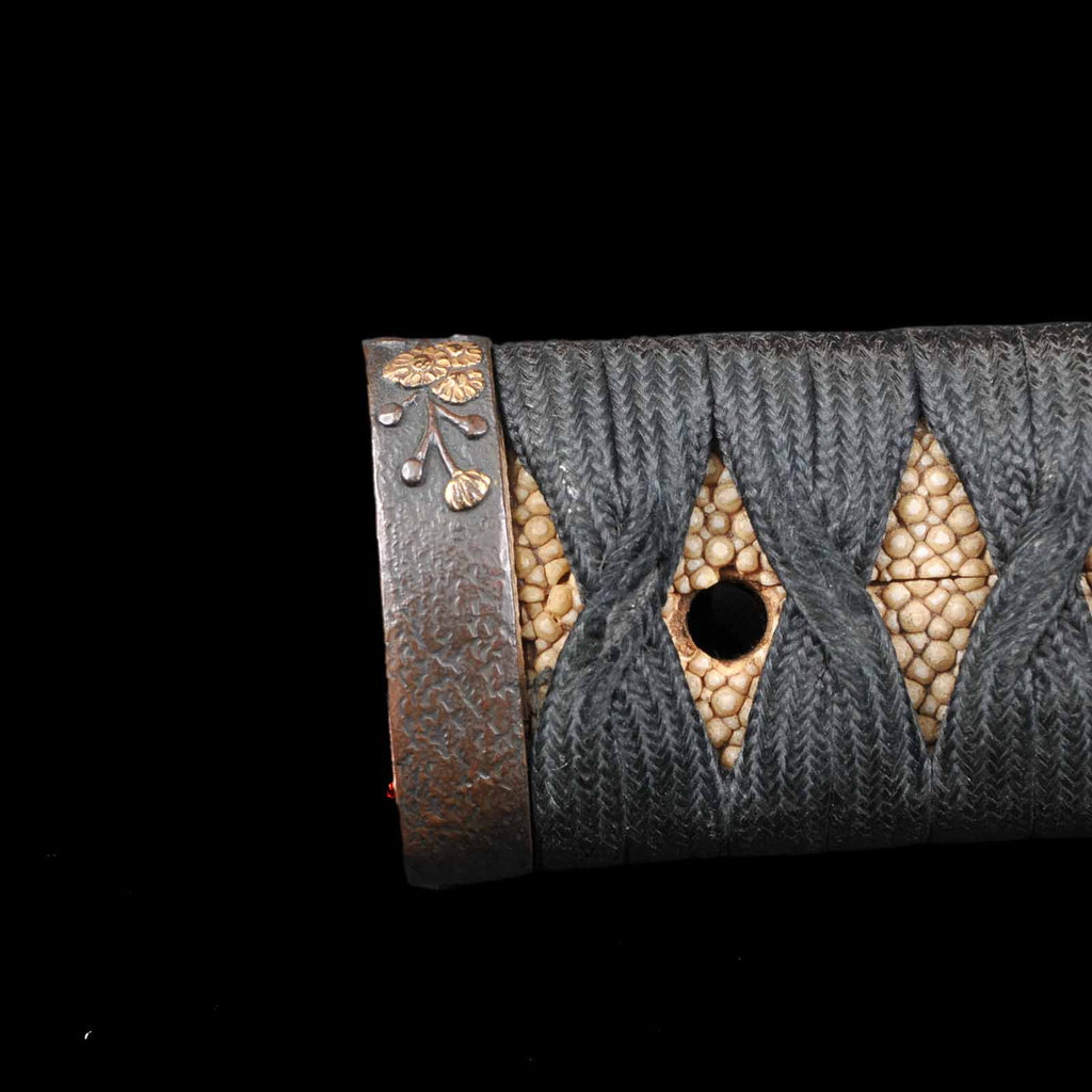 • Koshirae: Black silk wrapped Tsuka with Tamenuri-lacquered Saya