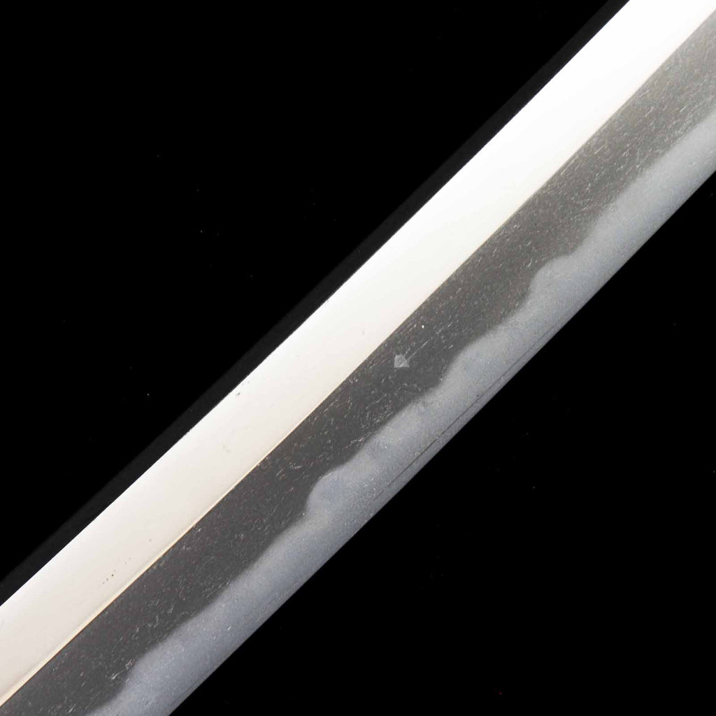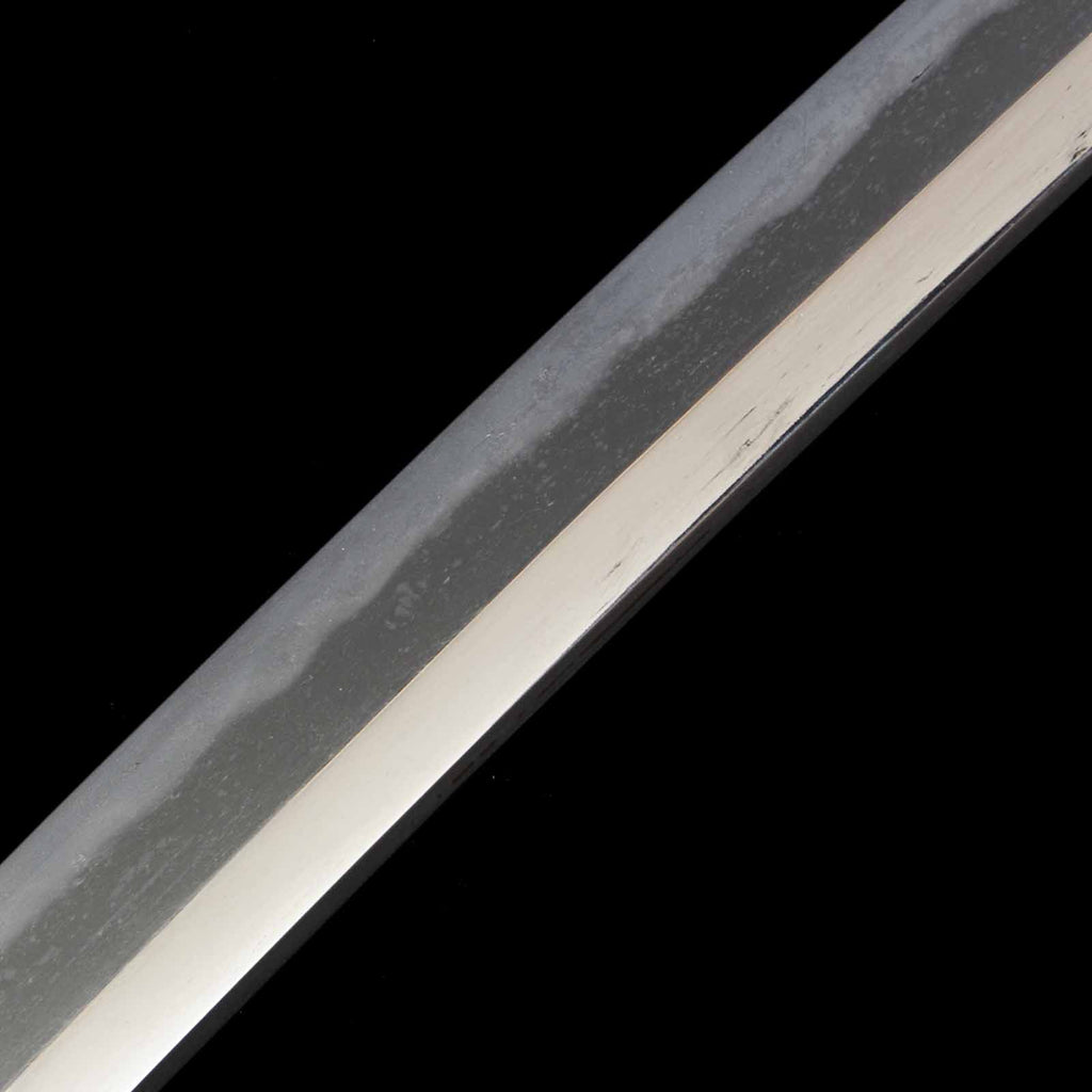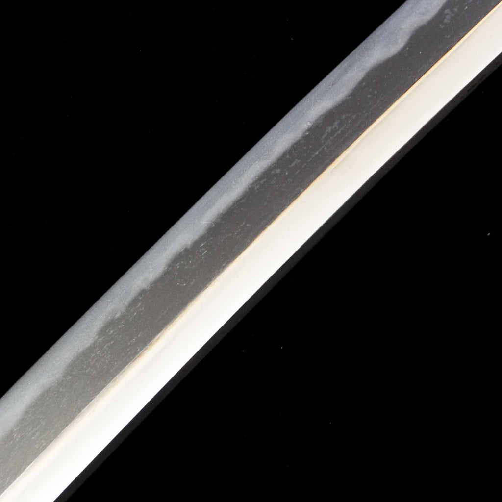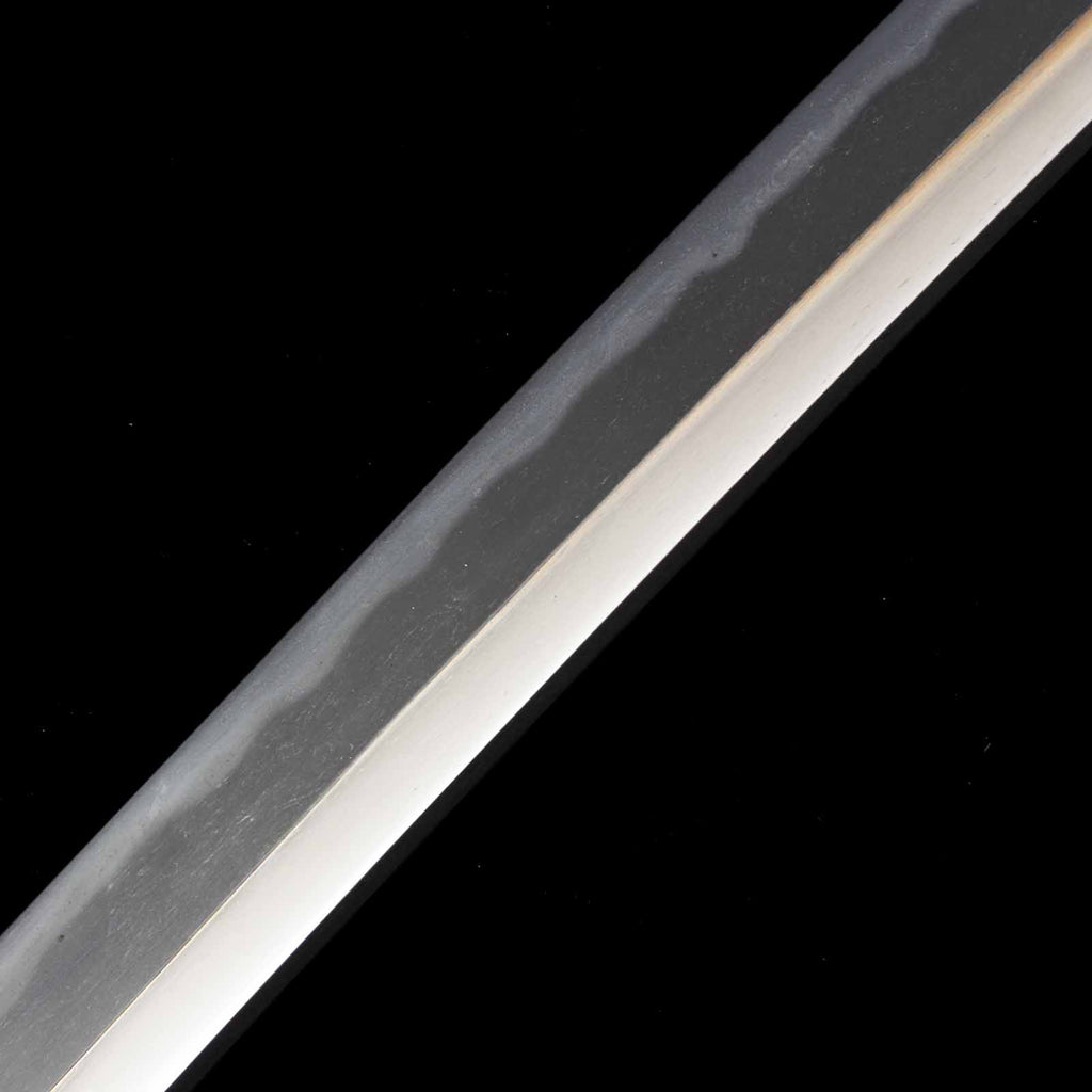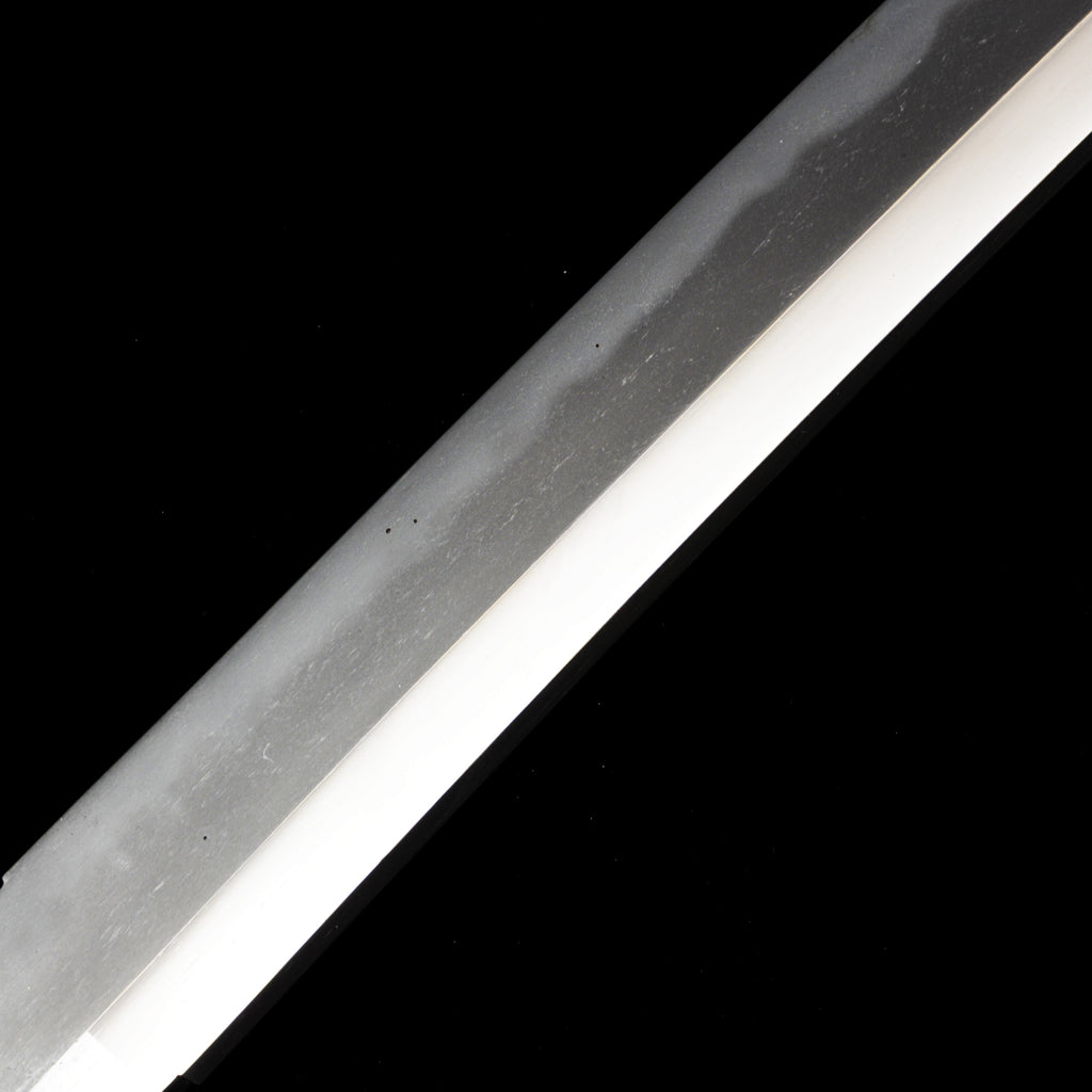 The blade of this Kanemoto sword is considered to be the work of the first generation, and is not the Sambonsugi hamon made famous by the second generation, but a kogunome with a tight nie, and sunagashi can be seen in some places. The boshi is notarekomi. The hada is itame with some masame mixed in. The sword is in relatively good condition with no flaws. The sword itself weighs 770 grams and is a very impressive piece. It is powerful even if it is displayed as it is in shirasaya, but why not make it your favorite sword by ordering the option of a uchigatana koshirae?