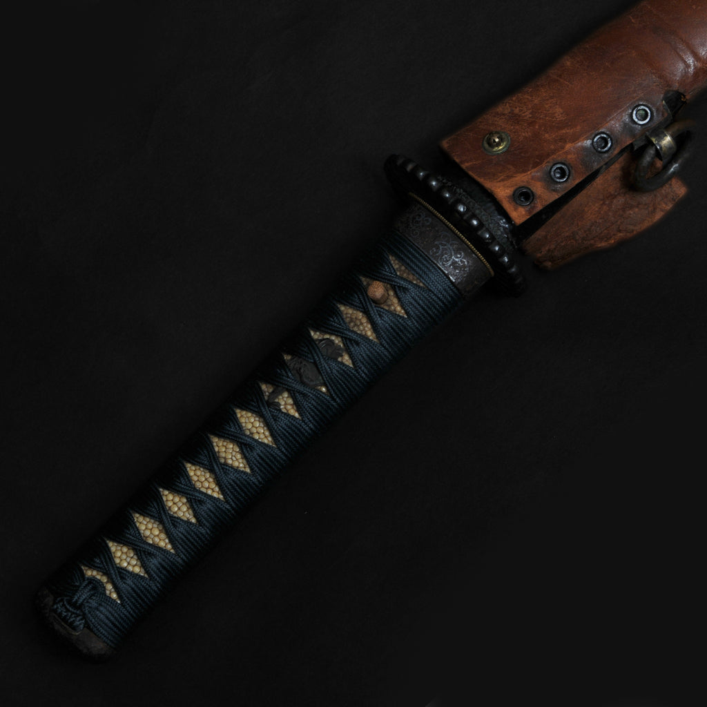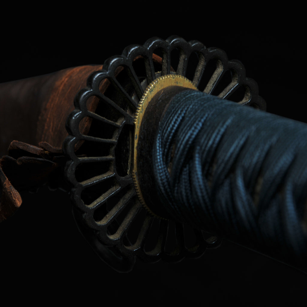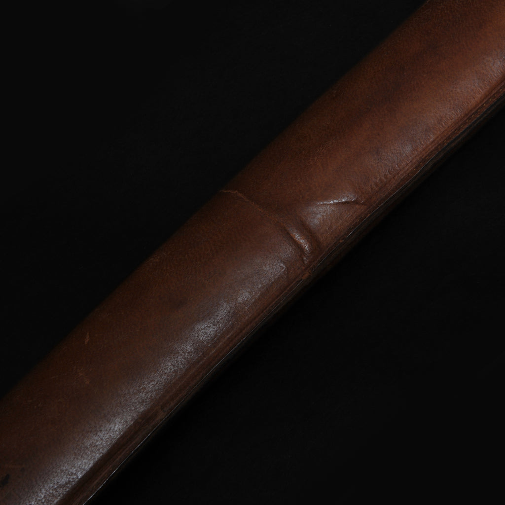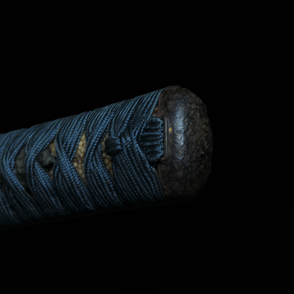 This sword was made by Kanenobu of Mino. The blade is in very sound condition but is slightly dull. There is a 6 cm forging flaw in the center of the blade. One side of the blade is slightly cloudy from the tip to about 25 cm. The hamon pattern is a typical Mino style of choji midare, and the grain is itame. The fitting is of the Uchigatana style with a military (Gunto style) scabbard. A Shirasaya is also included for storage. The tsuba, fuchi/kashira, menuki, and tsukamaki hilt are all original and in good condition. The scabbard was remade for use as a military swords during World War II.