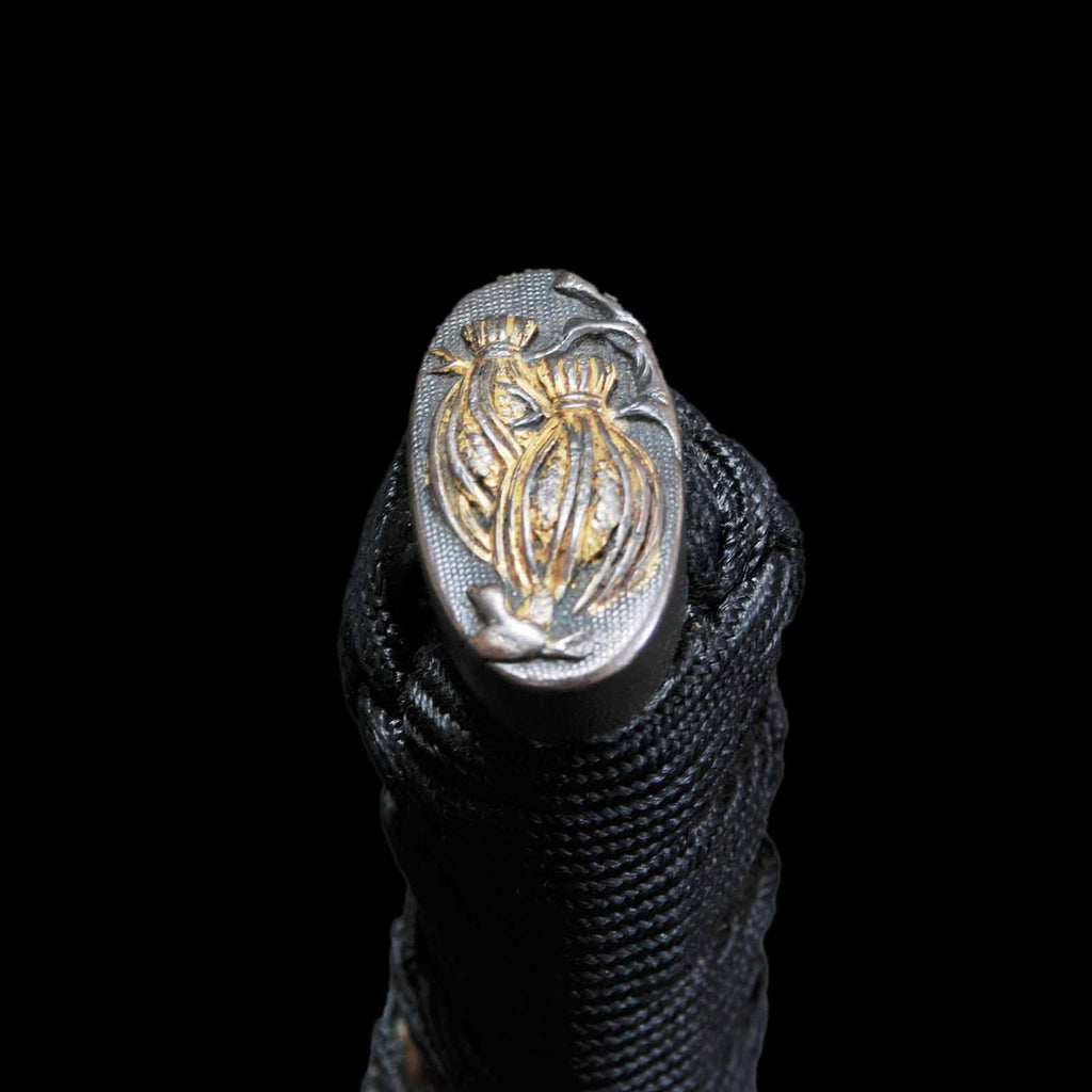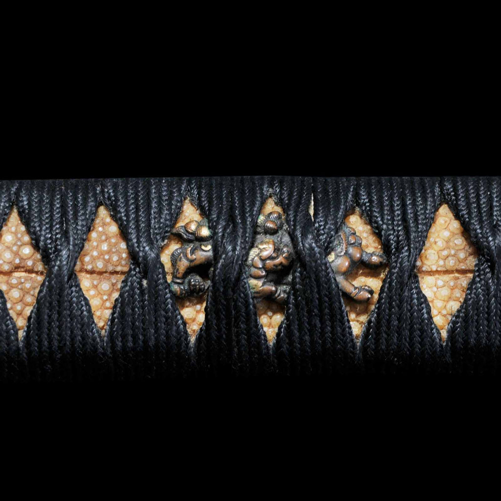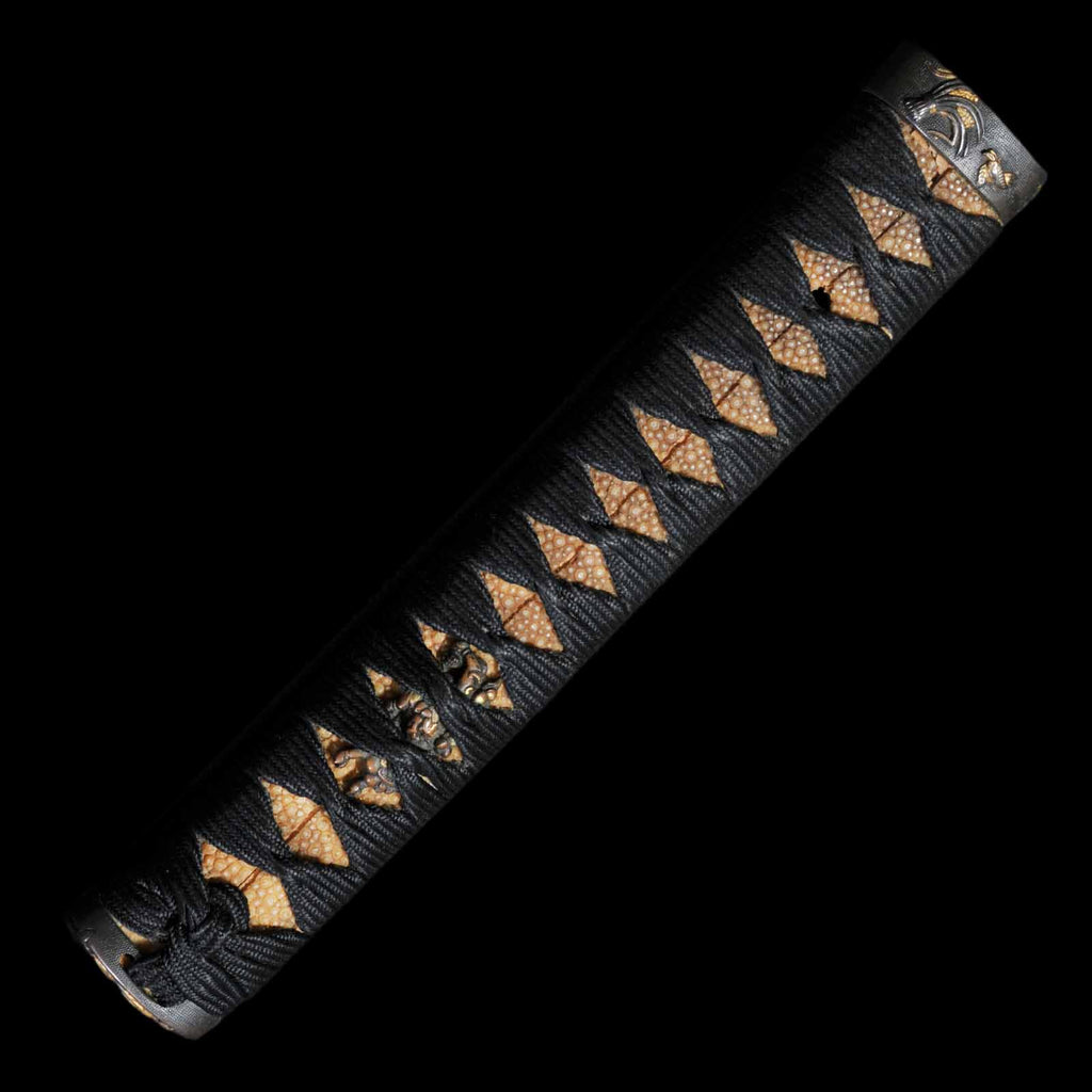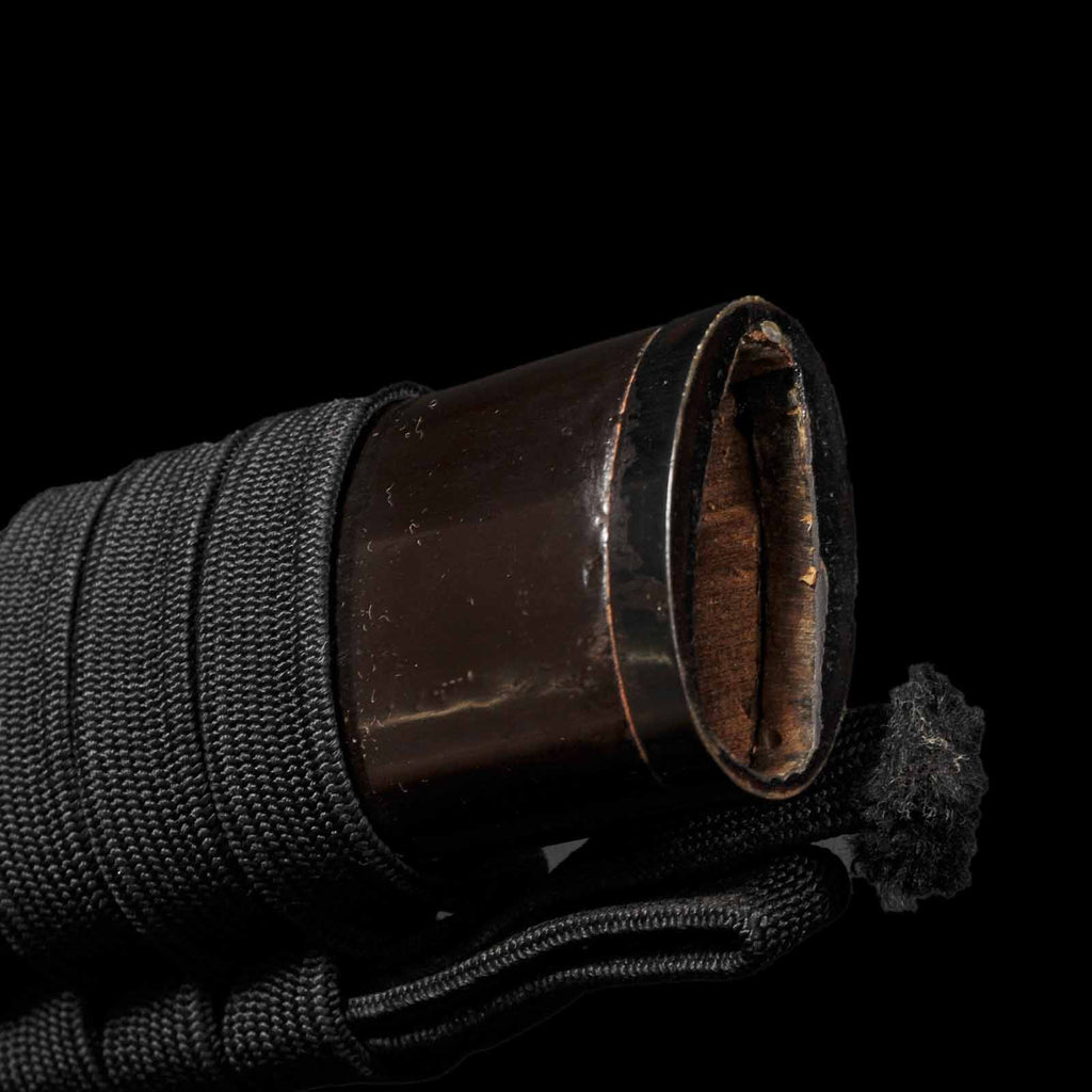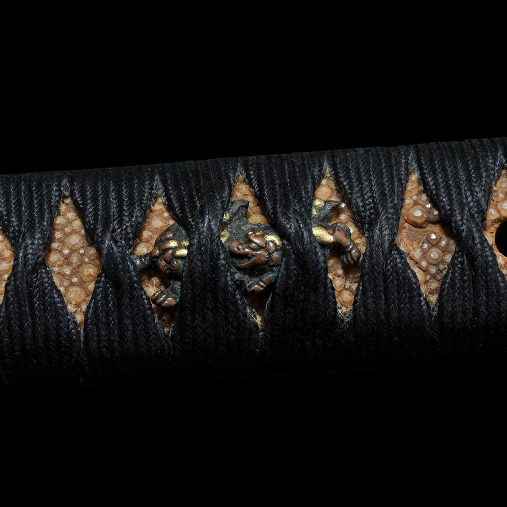- Koshirae: Uchigatana Koshirae with silk wrapped Tsuka and dark brown