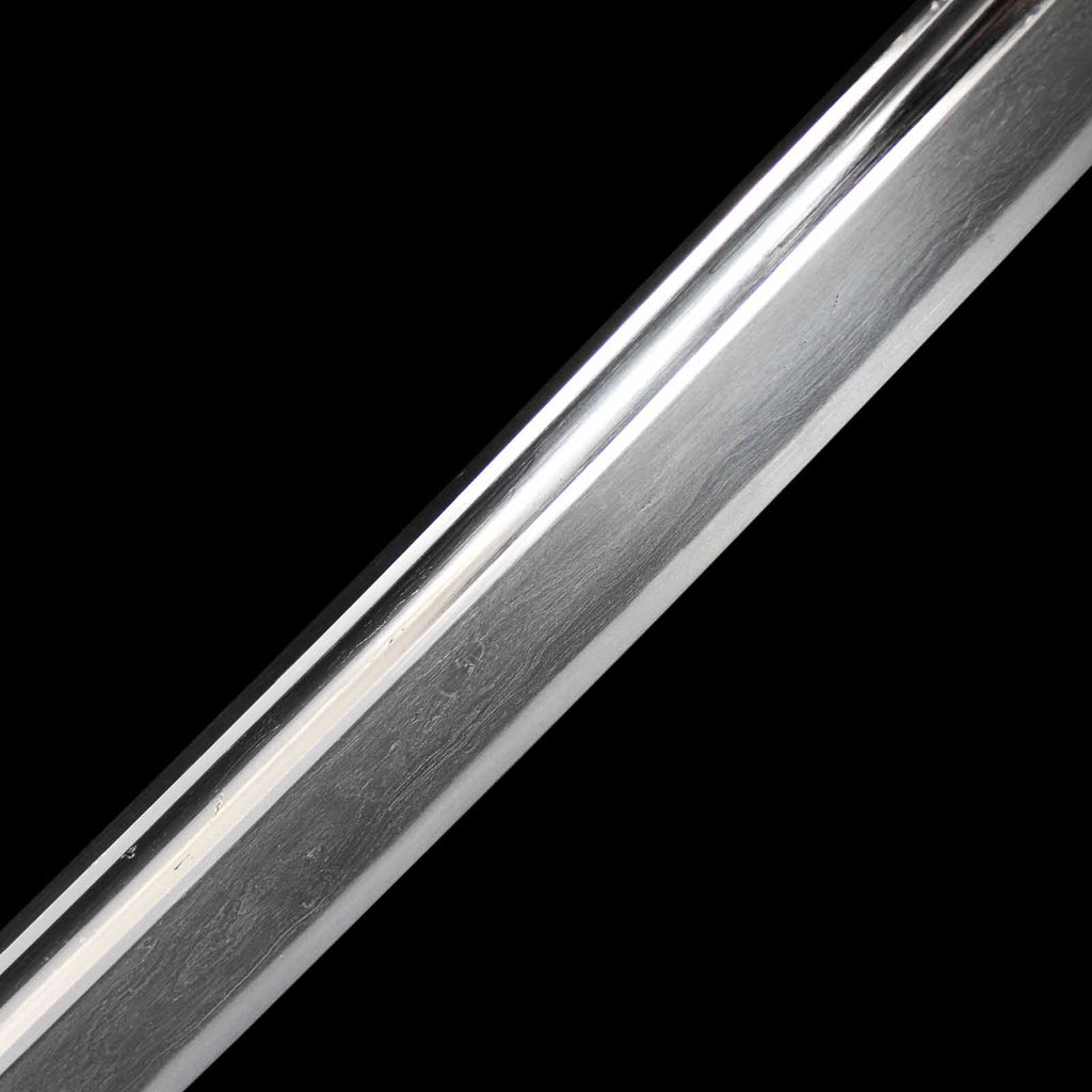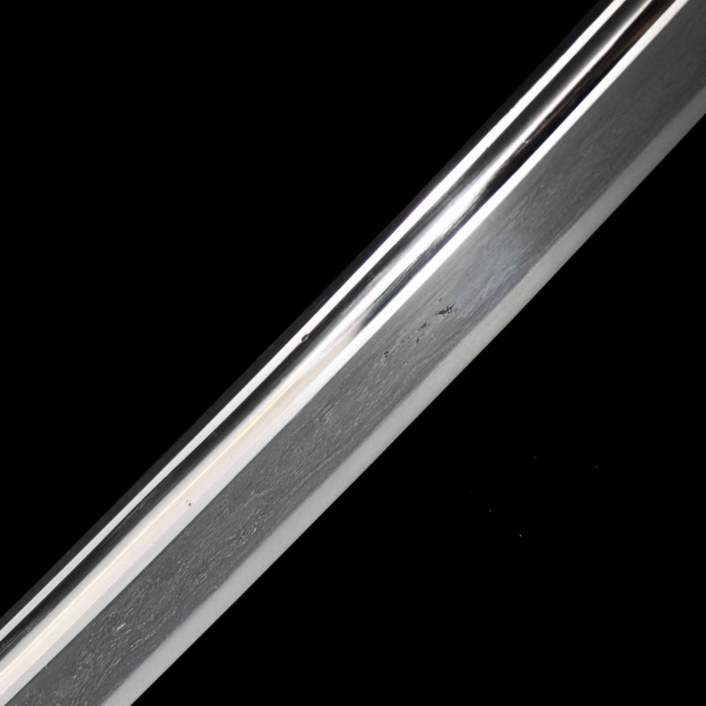 This piece has the unique characteristics of Koto's swords, with a thin suguha hamon on the hada that is partially mixed with itame and mokume as well as masame. The boshi is turned back in the shape of an omaru, creating a very elegant yet practical atmosphere. The blade of the sword is engraved with a ryochiri hi. This sword is a suriage, and it is estimated that the original blade length may have been up to about 2 shaku 7 sun. Since this is a Kot period piece, there are a few spots of black rust, but the overall condition of preservation is very good, and the quality is such that it could become your family heirloom. The shirasaya is also very elaborate, indicating that the sword has been carefully stored for a long time. Please cherish this piece as your family heirloom.