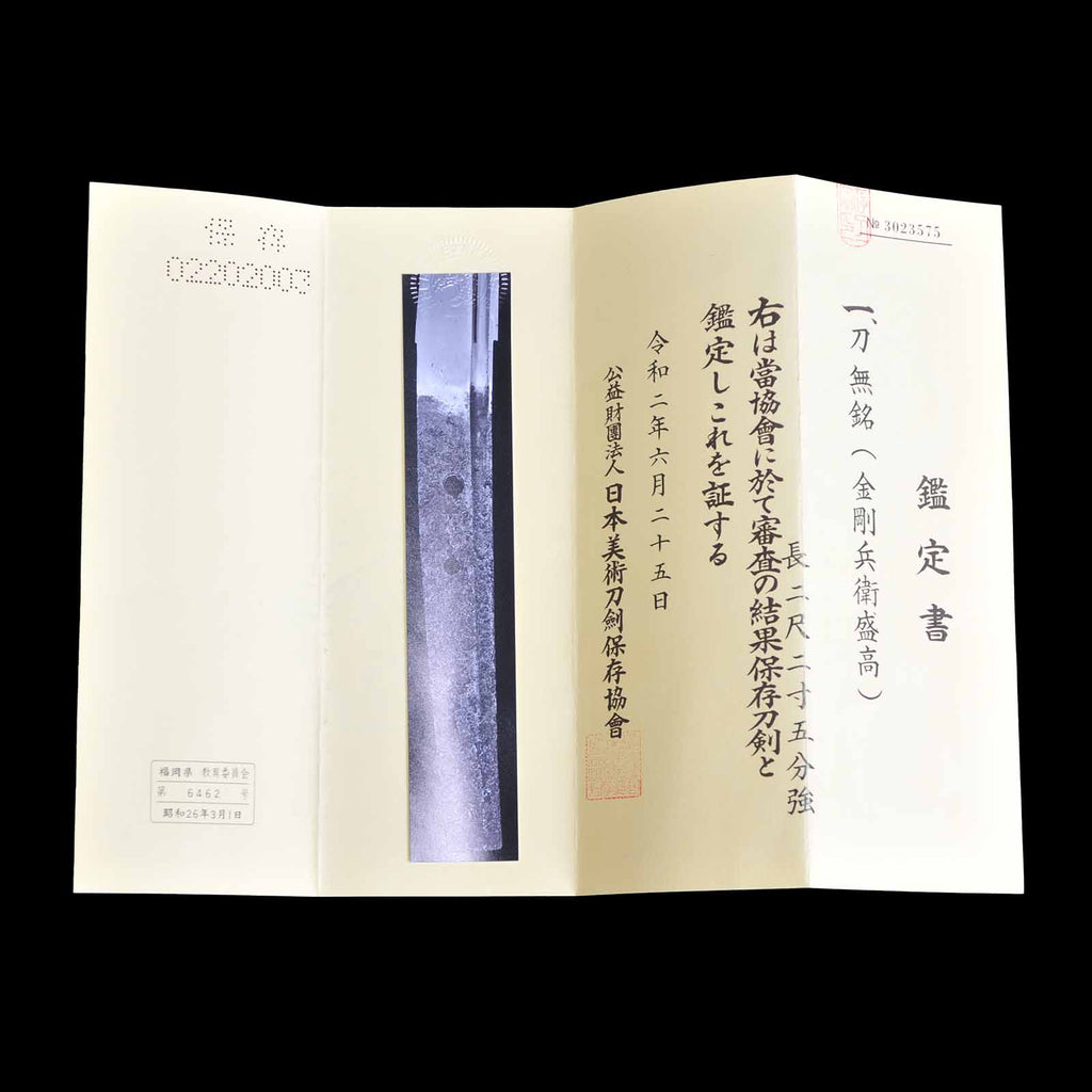 Katana - Mumei(No Signature) - NBTHK Certificate(Kongo Hyo'e Moritaka) - Shirasaya Koshirae - Suriage Nakago - Koto Era - Fukuoka 6462