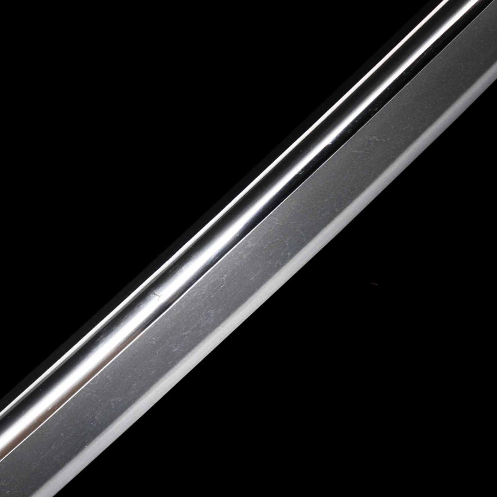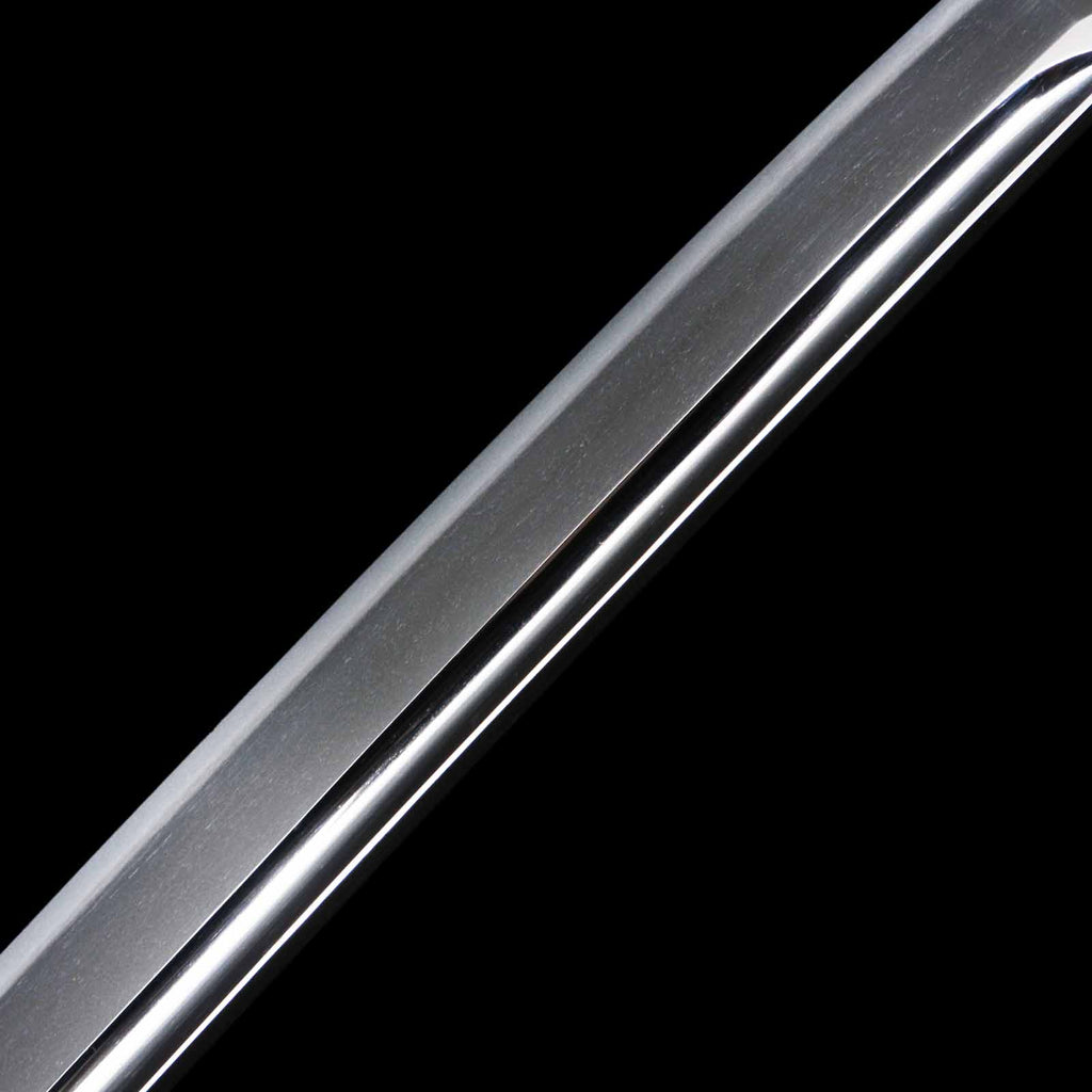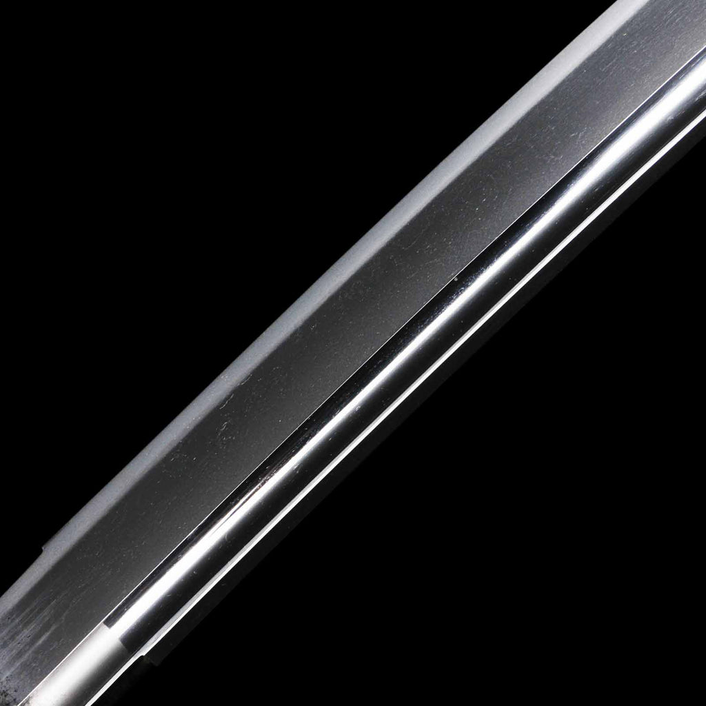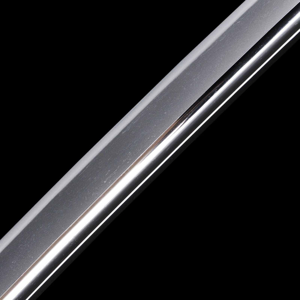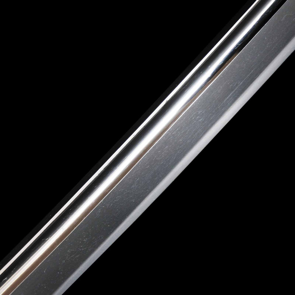 This piece has a wider shinogi, and a hada with some mokume mixed in with masame, with hoso-suguha hamon. The boshi is arced in a shallow komaru. On the scabbard, the Hon'ami, the most prestigious and renowned sword appraiser, has identified this sword as a work of Komihara and has written a detailed description of it.