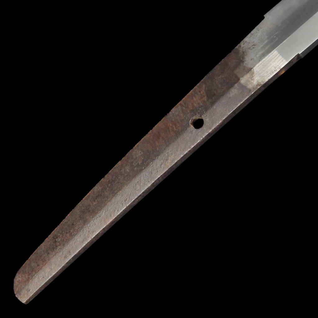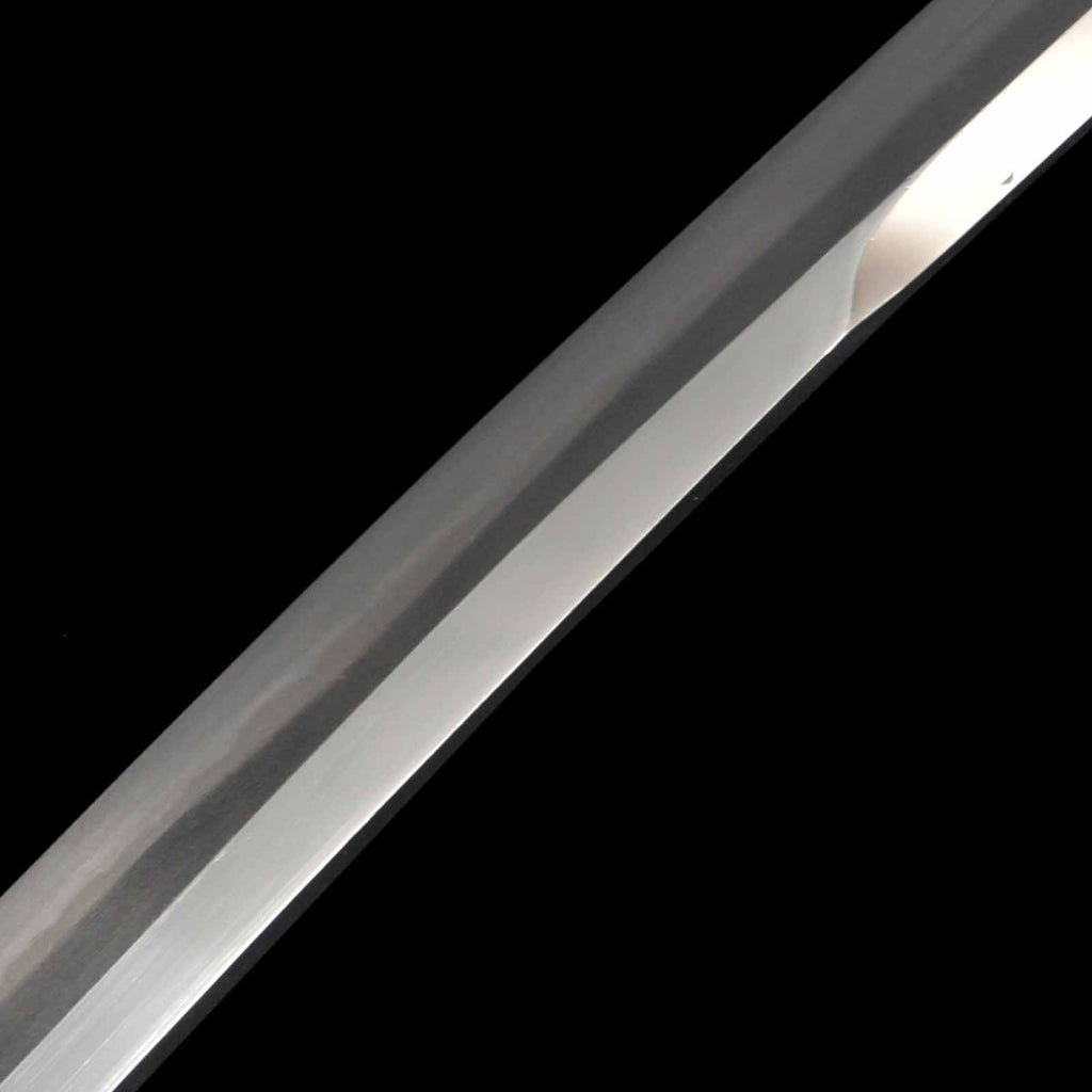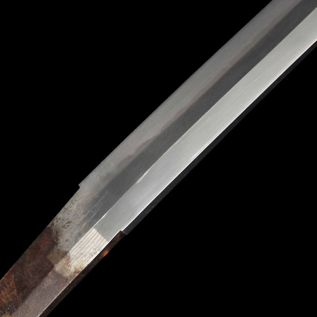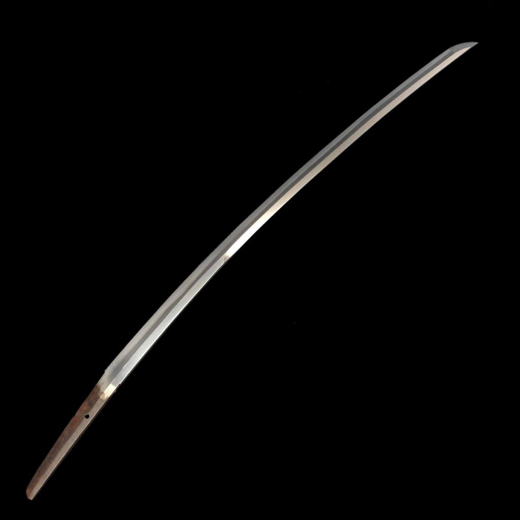 The preservation condition of the sword is very excellent considering its age, and there are no fatal flaws or chips that would lower its evaluation. The unokubi construction, which is a major feature of this katana, is very rare and valuable, as it is sometimes used in older tanto, but not often in the size of a katana. It is shaped as if the shinogi has been largely shaved from a point about 20 cm from the munemachi to the kissaki. The forging line is about 10 cm long from a point about 22 cm from the kissaki on the sashiura side.