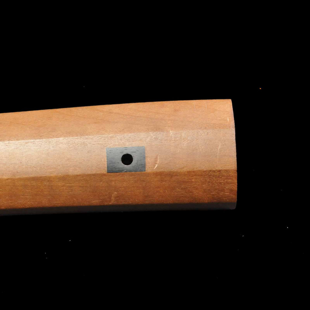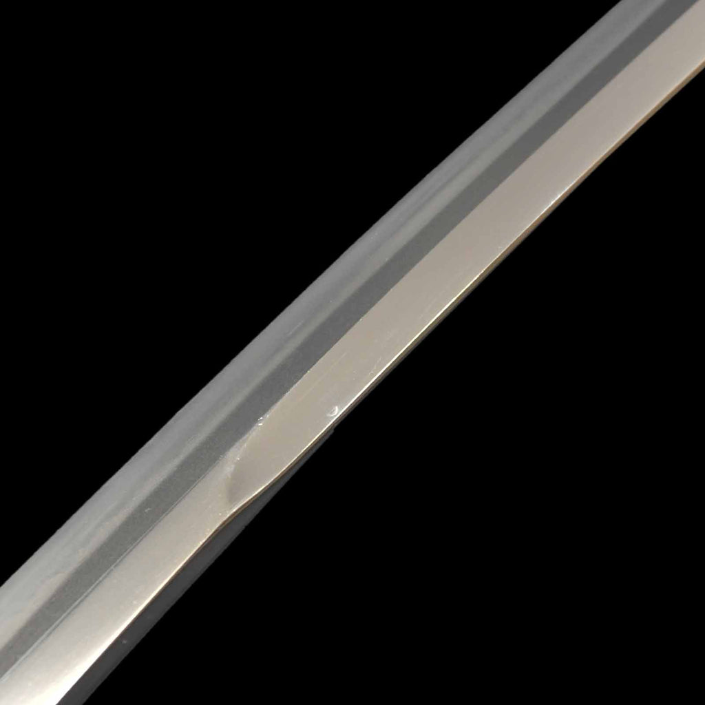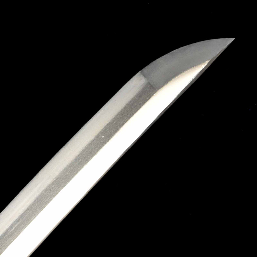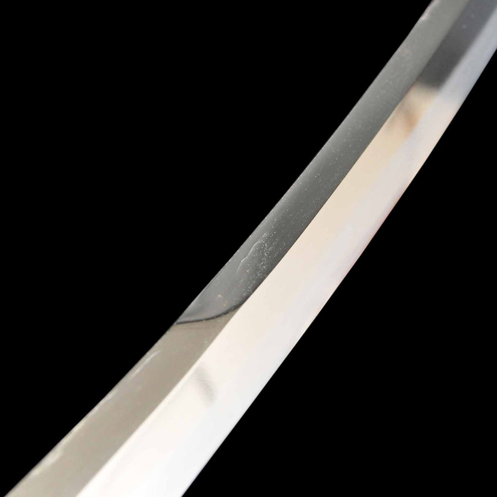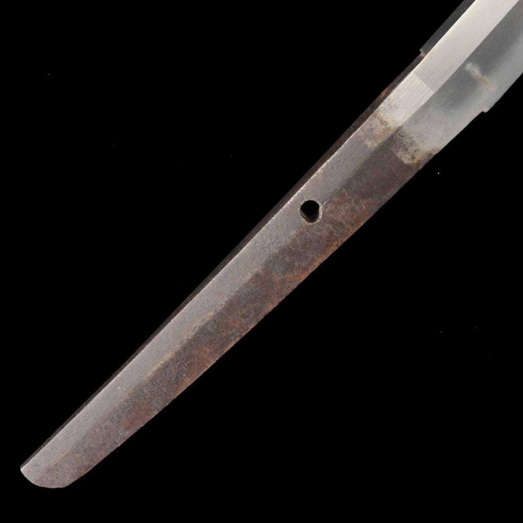 The preservation condition of the sword is very excellent considering its age, and there are no fatal flaws or chips that would lower its evaluation. The unokubi construction, which is a major feature of this katana, is very rare and valuable, as it is sometimes used in older tanto, but not often in the size of a katana. It is shaped as if the shinogi has been largely shaved from a point about 20 cm from the munemachi to the kissaki. The forging line is about 10 cm long from a point about 22 cm from the kissaki on the sashiura side.