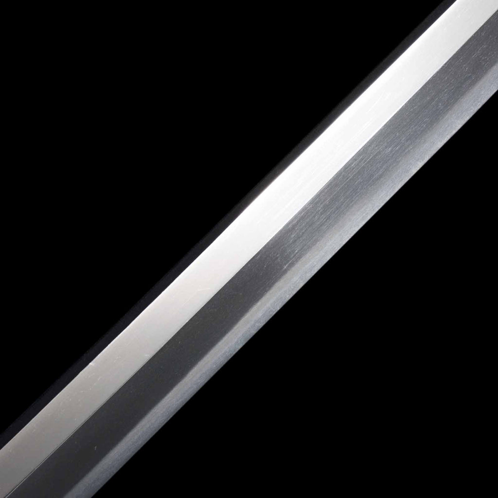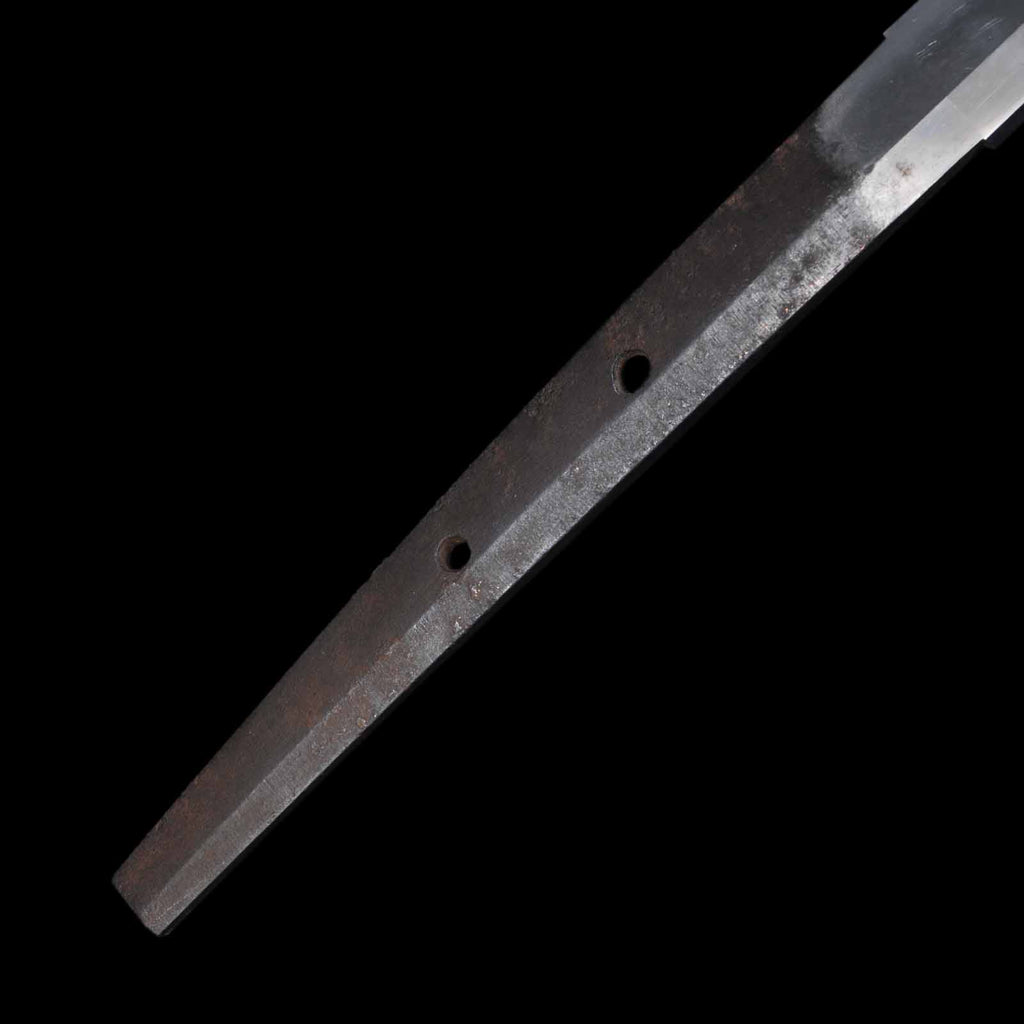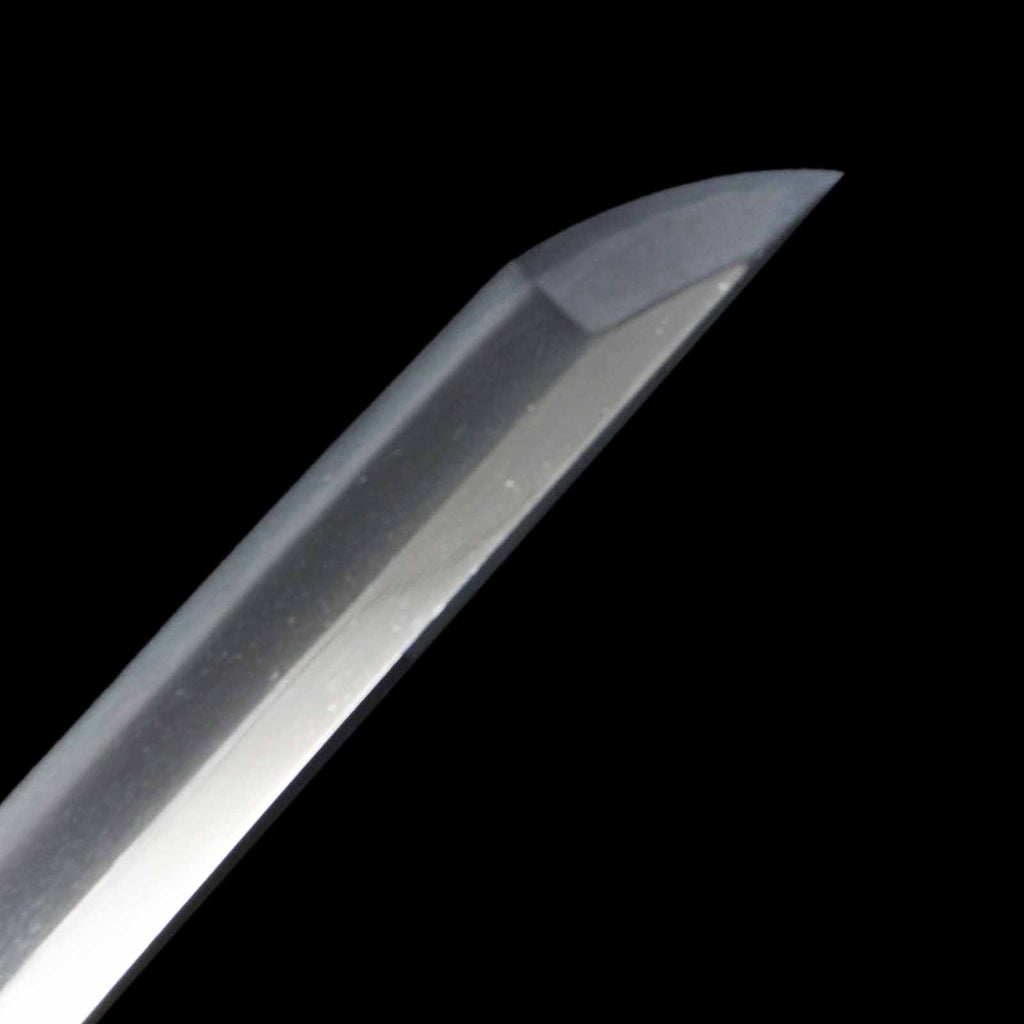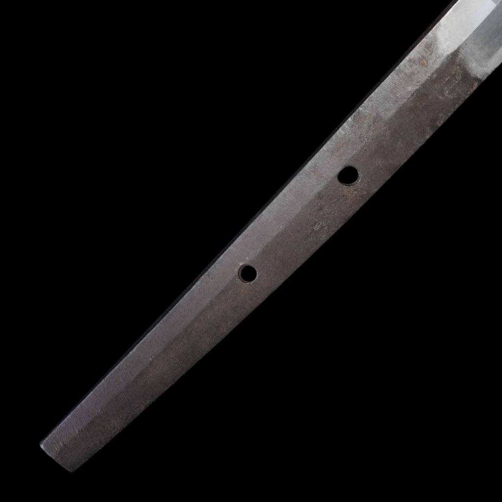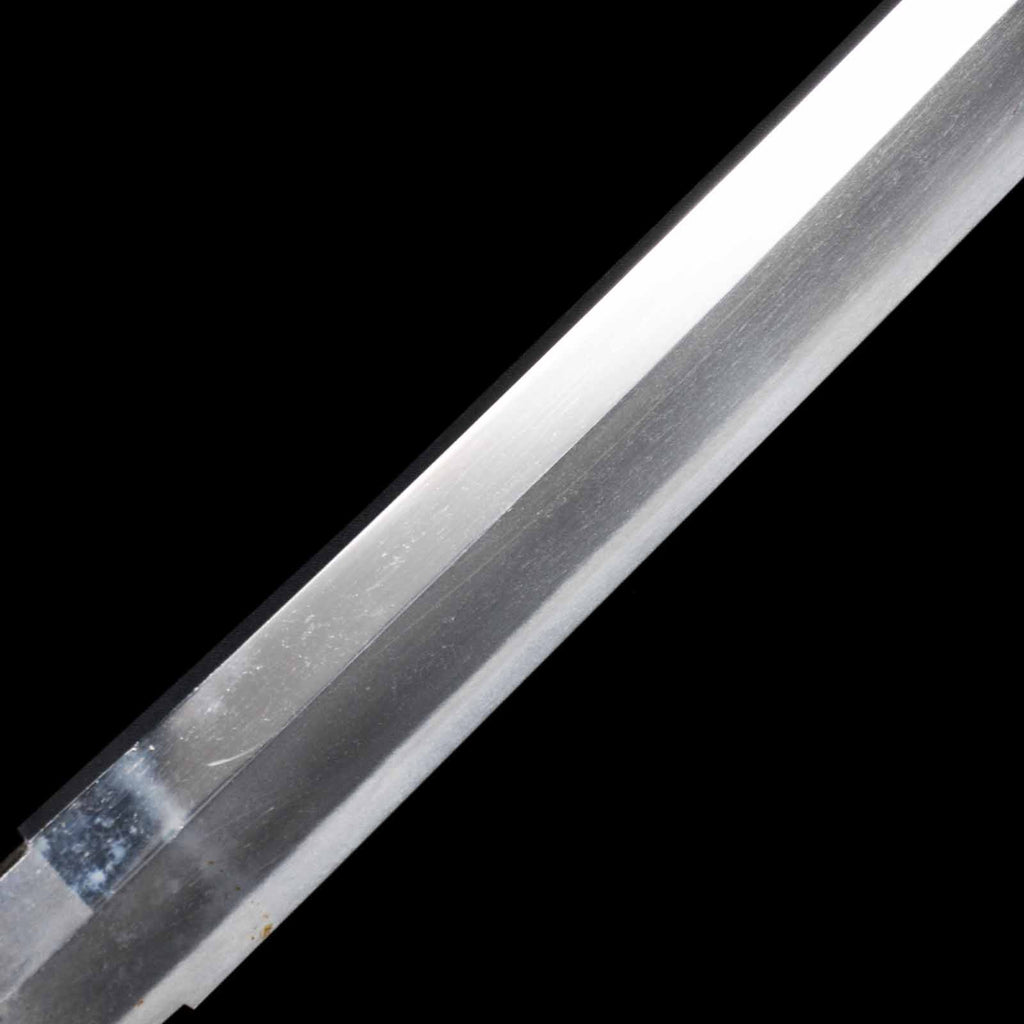 The sword is in excellent condition and the polishing is excellent, making it a pleasure to appreciate. Unfortunately, there is a tiny chip in the blade about 25 cm from the cutting edge, but otherwise it is in excellent condition. Itame mixed with mokume shows active hataraki such as yubashiri and chikei. The thin suguha hamon, unique to the koto period, is nioi tight.
