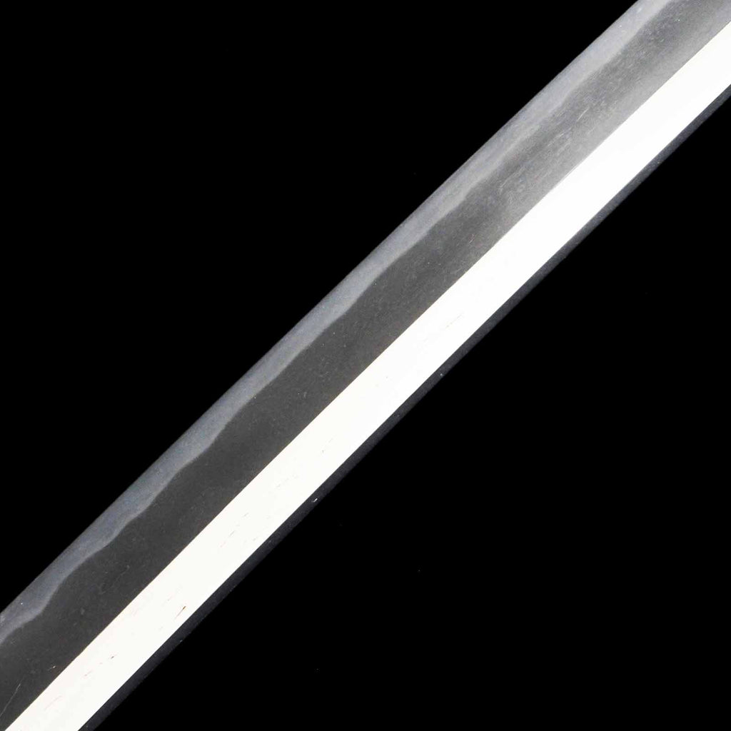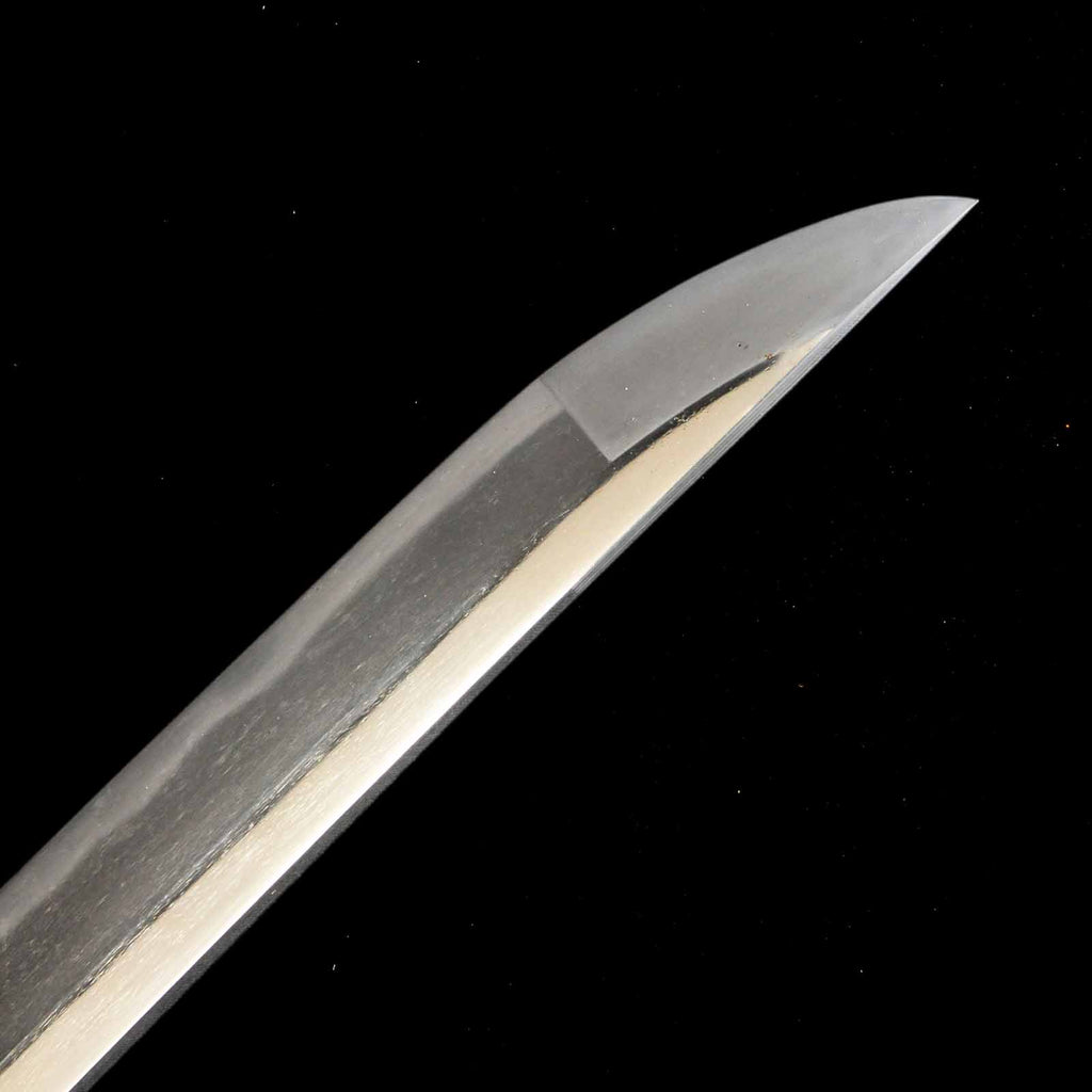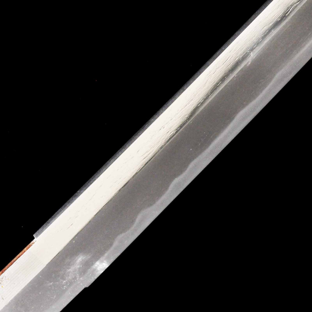 A magnificent katana with a large kissaki has arrived in very good condition. Although this piece is unsigned, the Society for Preservation of Japanese Swords recognized it as the work of Kashu Ietsugu and issued a certificate of authenticity in July 2020. Despite being made in the Koto period, this piece is in excellent condition and is very beautiful. The hada is typical of Koto period pieces, with mokume clearly visible on itame, and the yubashiri and chikei can be seen very clearly. Hamon is a very lively pattern of midare hamon mixed with nioideki gunome choji with konie. The curvature is small and the kissaki is large. Overall, this piece reminds one of the tachi swords of the Nanbokucho period of Ko-bizen.