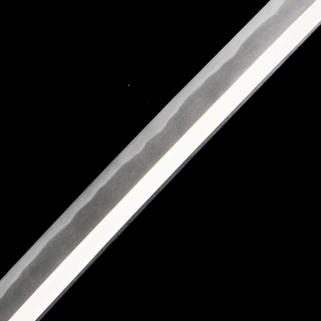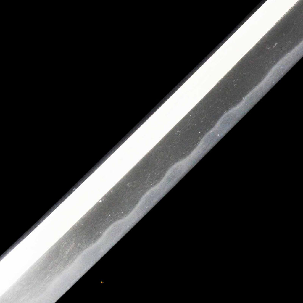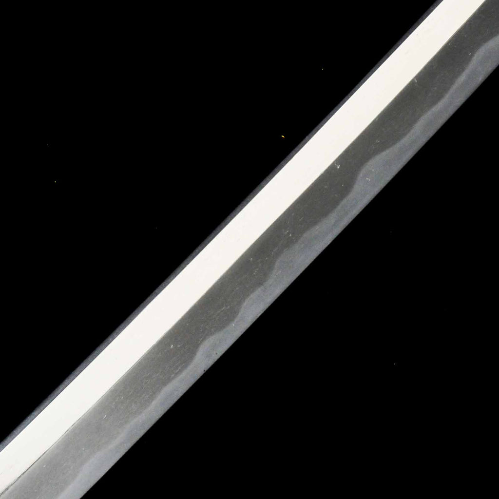 A magnificent katana with a large kissaki has arrived in very good condition. Although this piece is unsigned, the Society for Preservation of Japanese Swords recognized it as the work of Kashu Ietsugu and issued a certificate of authenticity in July 2020. Despite being made in the Koto period, this piece is in excellent condition and is very beautiful. The hada is typical of Koto period pieces, with mokume clearly visible on itame, and the yubashiri and chikei can be seen very clearly. Hamon is a very lively pattern of midare hamon mixed with nioideki gunome choji with konie. The curvature is small and the kissaki is large. Overall, this piece reminds one of the tachi swords of the Nanbokucho period of Ko-bizen.