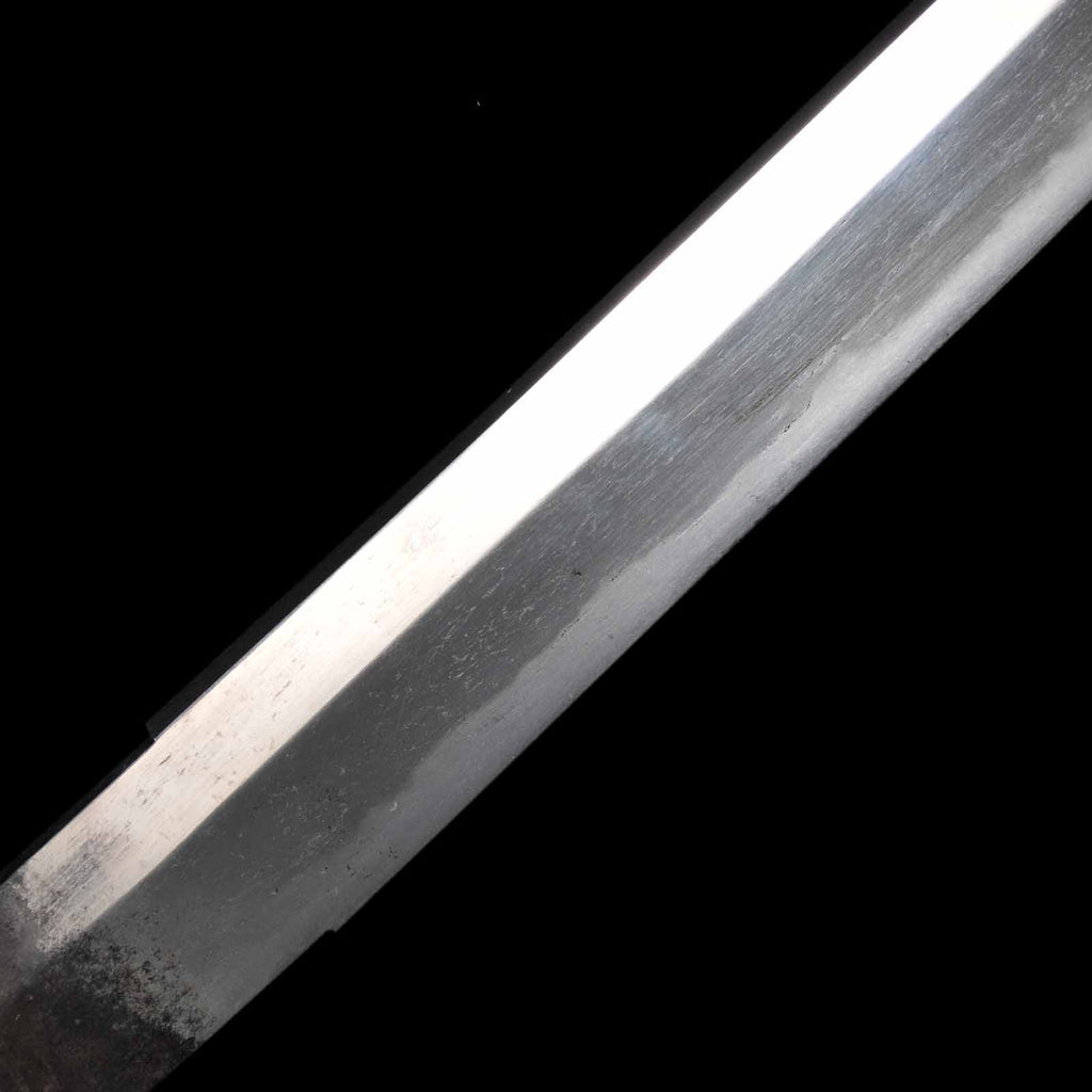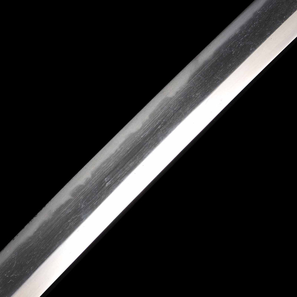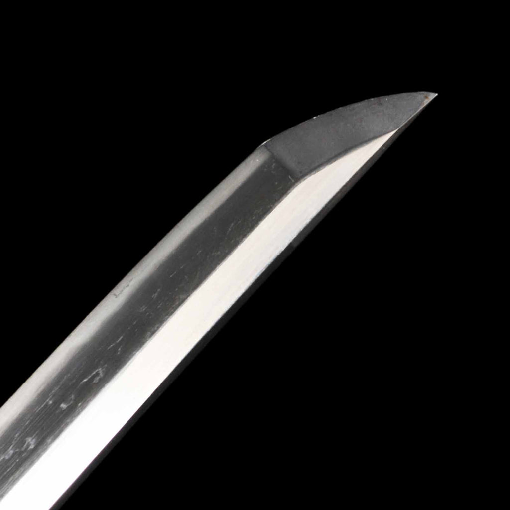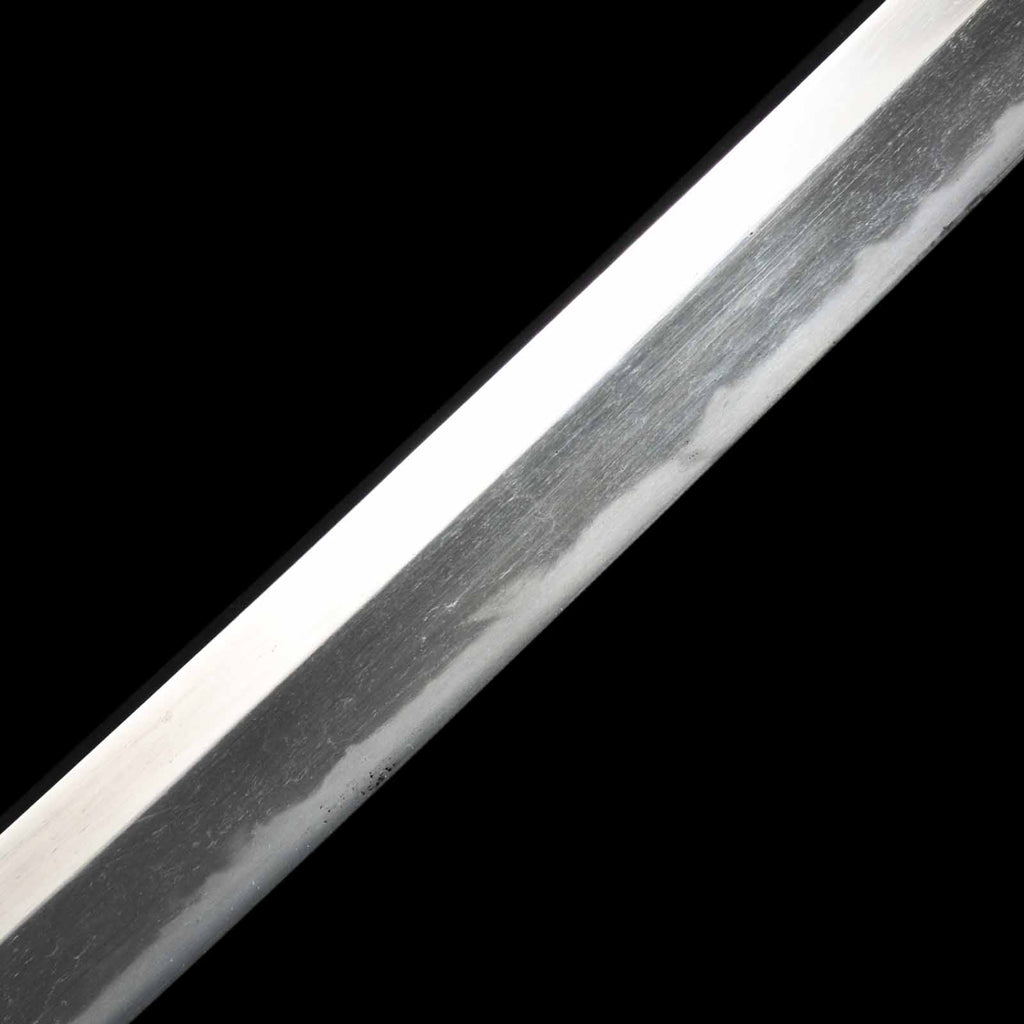There are no chips on the blade. The hada is a mixture of itame and mokume with some chikei visible. Hamon is well tight with irregular midare with some gunome and togariba mixed in places. There is also hataraki such as ashi and yo. This sword blade was originally longer, but was shortened to its present length by Suriage. It has a weight and balance suitable for batto and iai use, and if you prefer, it can be equipped with an uchigatana koshirae for an additional fee. Please contact us after you have purchased this sword if you wish to have an uchigatana koshirae.